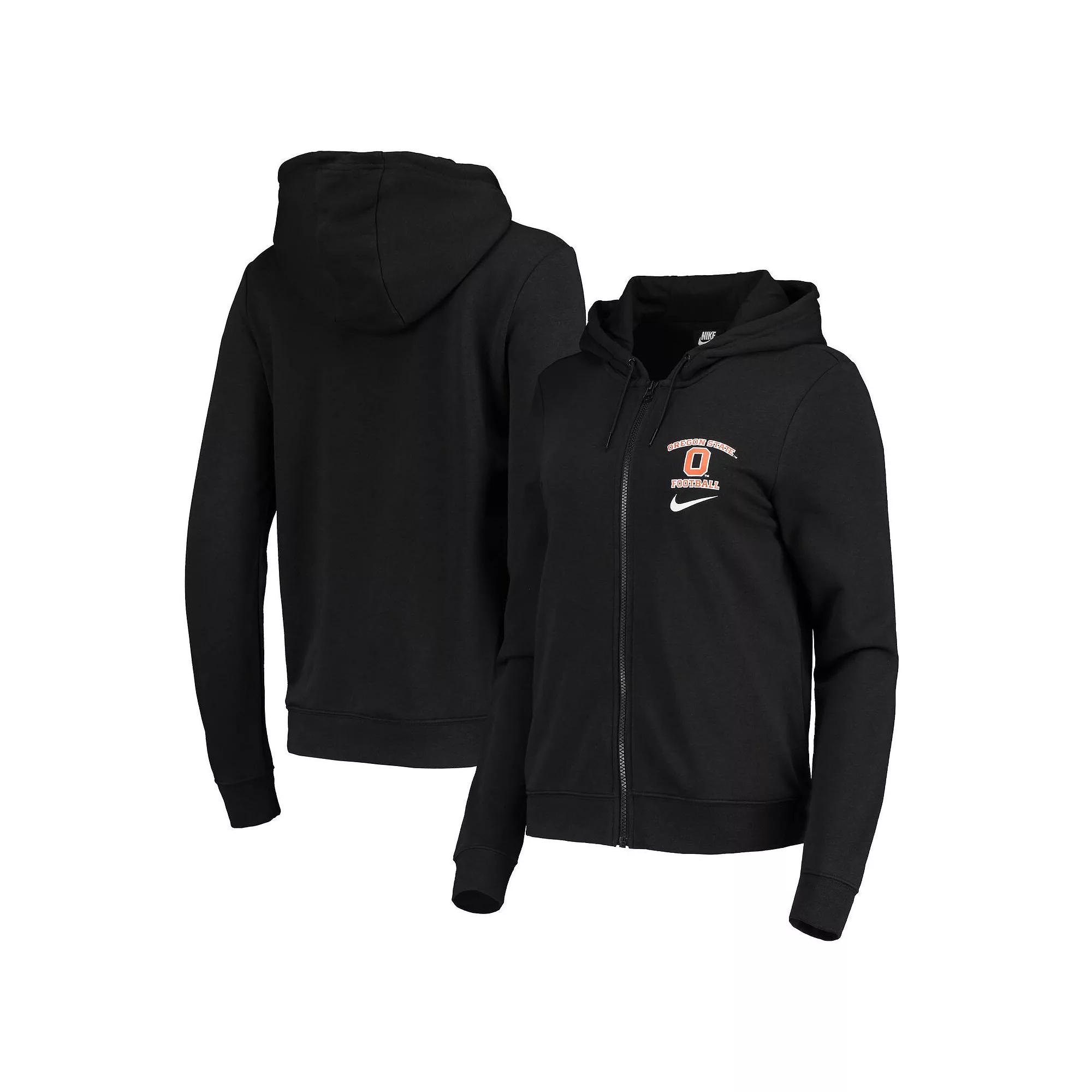 Stay perfectly warm and comfortable in this Oregon State Beavers Varsity Fleece hoodie from Nike. Its full-zip design lets you control how much heat you need throughout the day, while slip pockets keep items within easy reach. Plus, printed Oregon State Beavers graphics ensure everybody knows which college team you support.Stay perfectly warm and comfortable in this Oregon State Beavers Varsity Fleece hoodie from Nike. Its full-zip design lets you control how much heat you need throughout the day, while slip pockets keep items within easy reach. Plus, printed Oregon State Beavers graphics ensure everybody knows which college team you support.PRODUCT FEATURESHoodedMachine wash, tumble dry lowBrand: NikeOfficially licensedScreen print graphicsTwo front slip pocketsLong sleeveFull ZipImportedFleece liningFabric-lined hood with drawstringMaterial: 51% Cotton/31% Rayon/18% Polyester - Body; 50% Rayon/50% Cotton - Pocket Bags and Hood LiningFull-zipMidweight hoodie suitable for moderate temperatures Color: Black. Gender: female. Age Group: adult.