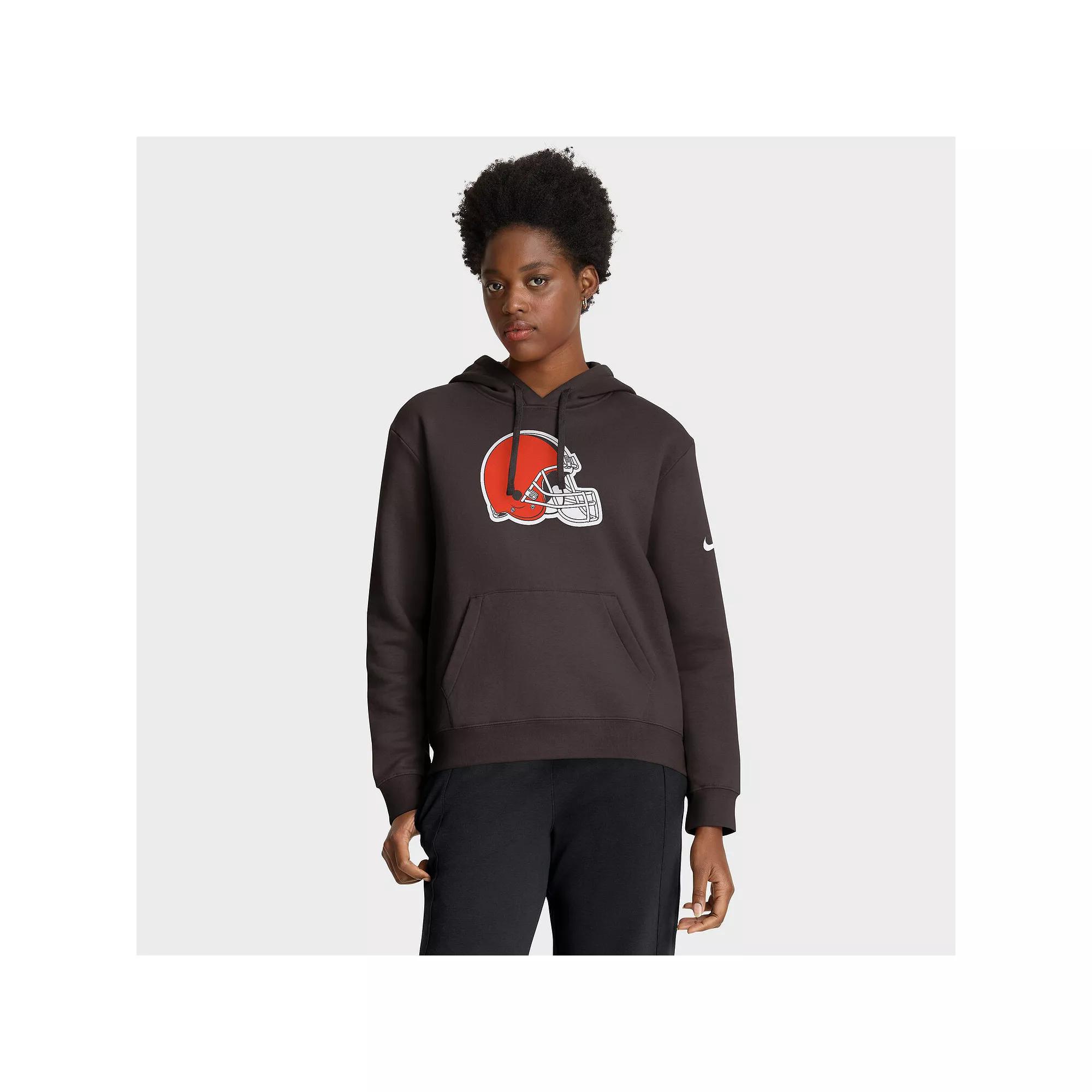 Stay cozy and showcase your Cleveland Browns pride with this Club Fleece Pullover Hoodie from Nike. The brushed-back fleece fabric provides a soft and cozy feel, perfect for staying warm on chilly game days. The dropped shoulder seams offer ease of movement, making it the perfect choice for cheering on the Cleveland Browns from the stands or lounging at home. Team logo screen printed at center front. Pullover. Brushed back fleece fabric has a midweight feel (280gsm). Material: 82% Cotton/18% Polyester - Body; 98% Cotton/2% Elastane - Rib; 100% Cotton - Hood Lining. Imported. Suitable for moderate temperatures. Dropped shoulder seams provide ease of movement. Brand: Nike. Long sleeve. Standard Fit: Easy and traditional. Sizing Tip: Fans say this hoodie runs small. If you are in between sizes, consider sizing up. Front pouch pocket. Model is wearing size M and is 5'9. Hooded. Machine wash, tumble dry low. Officially licensed. Gender: female. Age Group: adult.