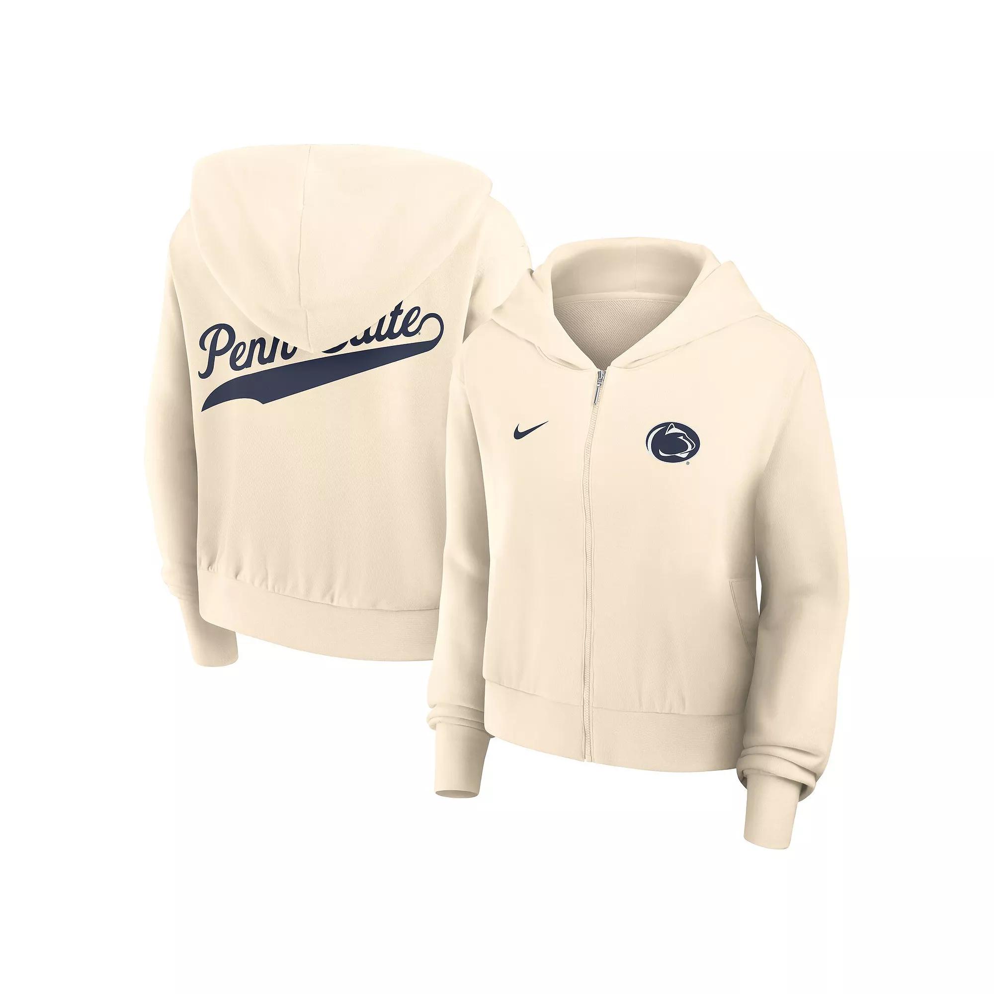 Stay cozy while repping your Penn State Nittany Lions in this Chill Midi Full-Zip Hoodie by Nike. Its loose fit creates a roomy, relaxed feel, while trendy dropped shoulders allow for ease of movement. French terry lining provides an extra layer of breathable warmth, making this Penn State Nittany Lions hoodie ideal for cooler weather.Stay cozy while repping your Penn State Nittany Lions in this Chill Midi Full-Zip Hoodie by Nike. Its loose fit creates a roomy, relaxed feel, while trendy dropped shoulders allow for ease of movement. French terry lining provides an extra layer of breathable warmth, making this Penn State Nittany Lions hoodie ideal for cooler weather.PRODUCT FEATURESLightweight hoodie suitable for mild temperaturesFull ZipTeam wordmark printed across the backFrench terry lining delivers breathable warmthLoose fit provides a spacious feelLong sleeveMachine wash, tumble dry lowScreen printed team logo at left chestOfficially licensedHoodedBrand: NikeImportedDropped shoulder seams create an oversized lookTwo side pocketsMaterial: 70% Cotton/30% Polyester Size: XXL. Color: Beige. Gender: female. Age Group: adult.