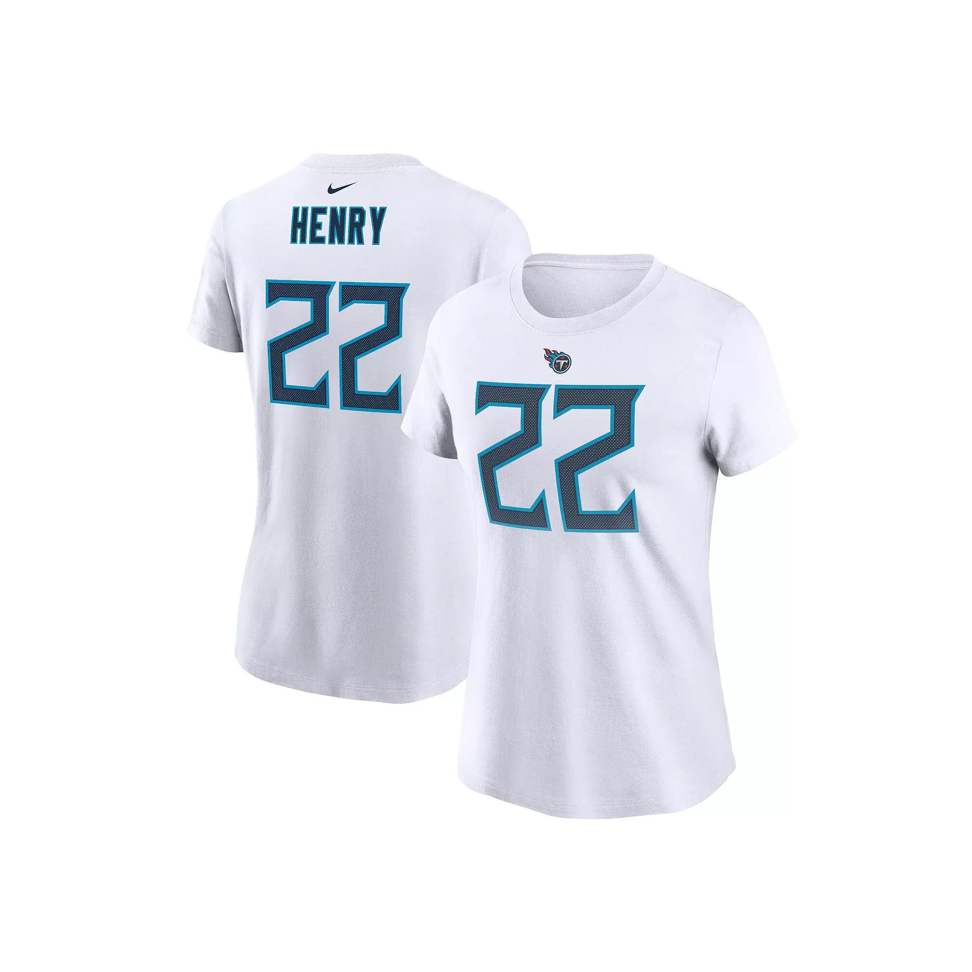 Show off your dedication to the Tennessee Titans by sporting this Derrick Henry Player Name and Number T-shirt from Nike. The team graphic on the front and your favorite players name and number on the back help you showcase that, not only are you a die-hard fan, but you also cant wait to watch Derrick Henry make some highlight-reel plays.Show off your dedication to the Tennessee Titans by sporting this Derrick Henry Player Name and Number T-shirt from Nike. The team graphic on the front and your favorite players name and number on the back help you showcase that, not only are you a die-hard fan, but you also cant wait to watch Derrick Henry make some highlight-reel plays.PRODUCT FEATURESBrand: NikeCrew neckImportedMachine wash, tumble dry lowMaterial: 100% CottonOfficially licensedScreen print graphicsShort sleeveTagless Collar Size: XL. Color: White. Gender: female. Age Group: adult.