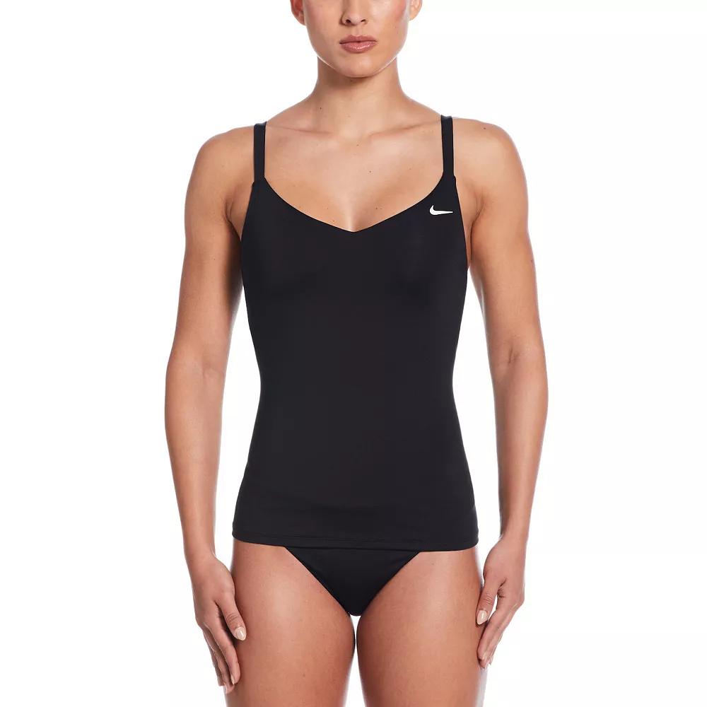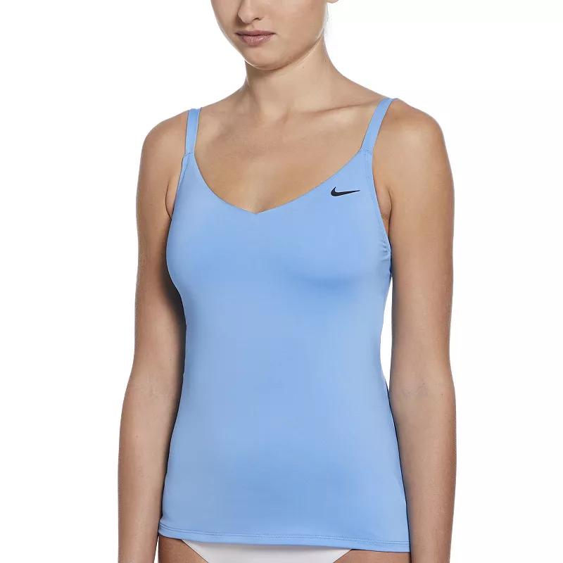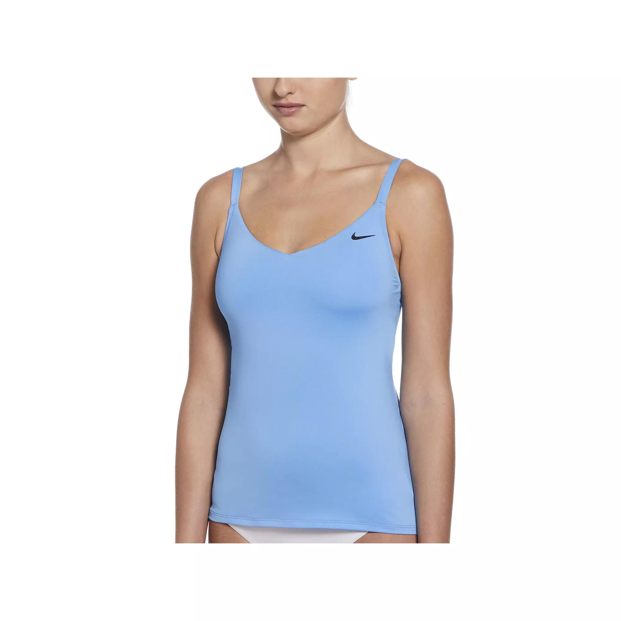 Dive into comfort and style with this sleek Nike tankini swim top, designed for active days by the water. The modern v-neck and adjustable straps offer a flattering fit and medium support, making it perfect for everything from swimming lessons to lounging poolside, all while ensuring you look great and feel secure. Click on this WOMEN'S GUIDE to find the perfect fit and more! - https://www.kohls.com/feature/womens-fit-guide.jsp. FEATURES: Women's Reg, Sleek, slim straps won't dig into your skin., Medium support and an adjustable fit to keep you comfortable no matter what, Chlorine-resistant fabric helps you hang onto your favorite swim staple season after season., Moderate coverage, Hook-and-eye back, Sleeveless, Front lined, Wireless, V-neck. FIT & SIZING: Adjustable back and shoulder straps let you find the perfect fit., 1 hook row. FABRIC & CARE: Removable bra cups provide comfortable coverage., Lined for better fit and security., Body: 83% Recycled Polyester 17% Spandex, Liner: 100% Recycled Polyester, Machine wash, Imported. RESPONSIBLE Contains recycled polyester. Color: University Blue. Gender: female. Age Group: adult. Material: POLY BLEND.