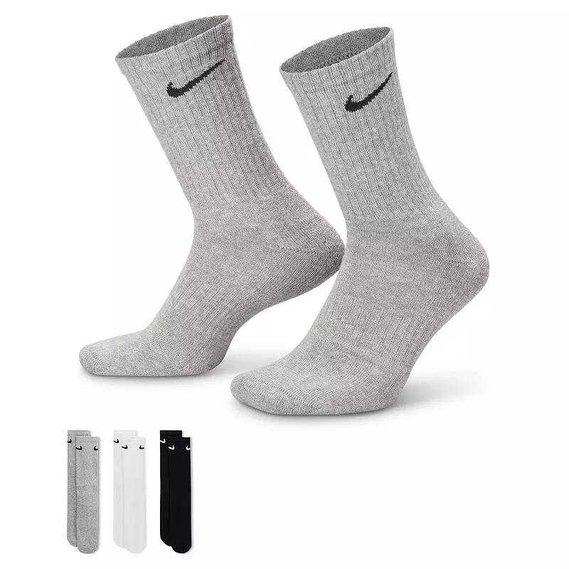 Keep your feet dry and comfortable with these Nike cushioned crew training socks. Click on this MENS GUIDE to find the perfect fit and more! Thick terry sole for comfort and impact absorption Dri-FIT technology wicks away moisture High-friction yarn helps reduce slippage FIT & SIZING Fits shoe sizes: 8-12 FABRIC & CARE Cotton, polyester, spandex, nylon Machine wash Imported Color: Grey. Gender: male. Age Group: adult.