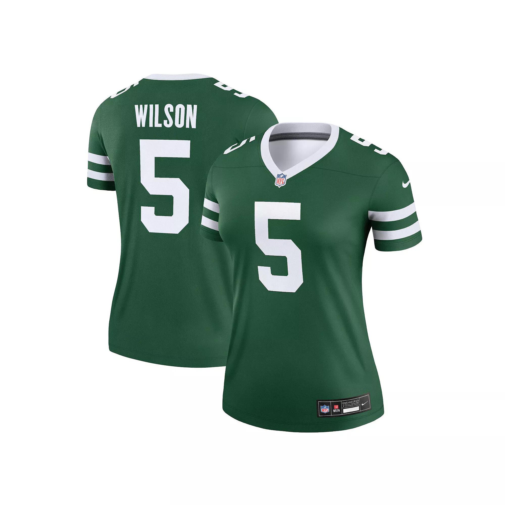 This New York Jets Garrett Wilson Legend jersey from Nike is the perfect piece of gear for every game this season. It features Dri-FIT technology that helps keep you dry and comfortable on game day. Not to mention that its authentic sublimated design makes it easy to support your favorite team and player.This New York Jets Garrett Wilson Legend jersey from Nike is the perfect piece of gear for every game this season. It features Dri-FIT technology that helps keep you dry and comfortable on game day. Not to mention that its authentic sublimated design makes it easy to support your favorite team and player.PRODUCT FEATURESMove To Zero is Nikes journey toward zero carbon and zero waste to help protect the future of sport. Apparel labeled sustainable materials is made with at least 55% recycled content.Officially licensedDri-FIT technology wicks away moistureStandard fitMachine wash, tumble dry lowJersey Color Style: TeamMaterial: 100% Polyester TricotRounded hemShort sleeveFully sublimated name, numbers and team details for lightweight comfortBrand: NikeStitched NFL Shield at front neckSatin woven jock tagBack neck tapingImportedNike Legend Size: XL. Color: Green. Gender: female. Age Group: adult. Material: COTTON.