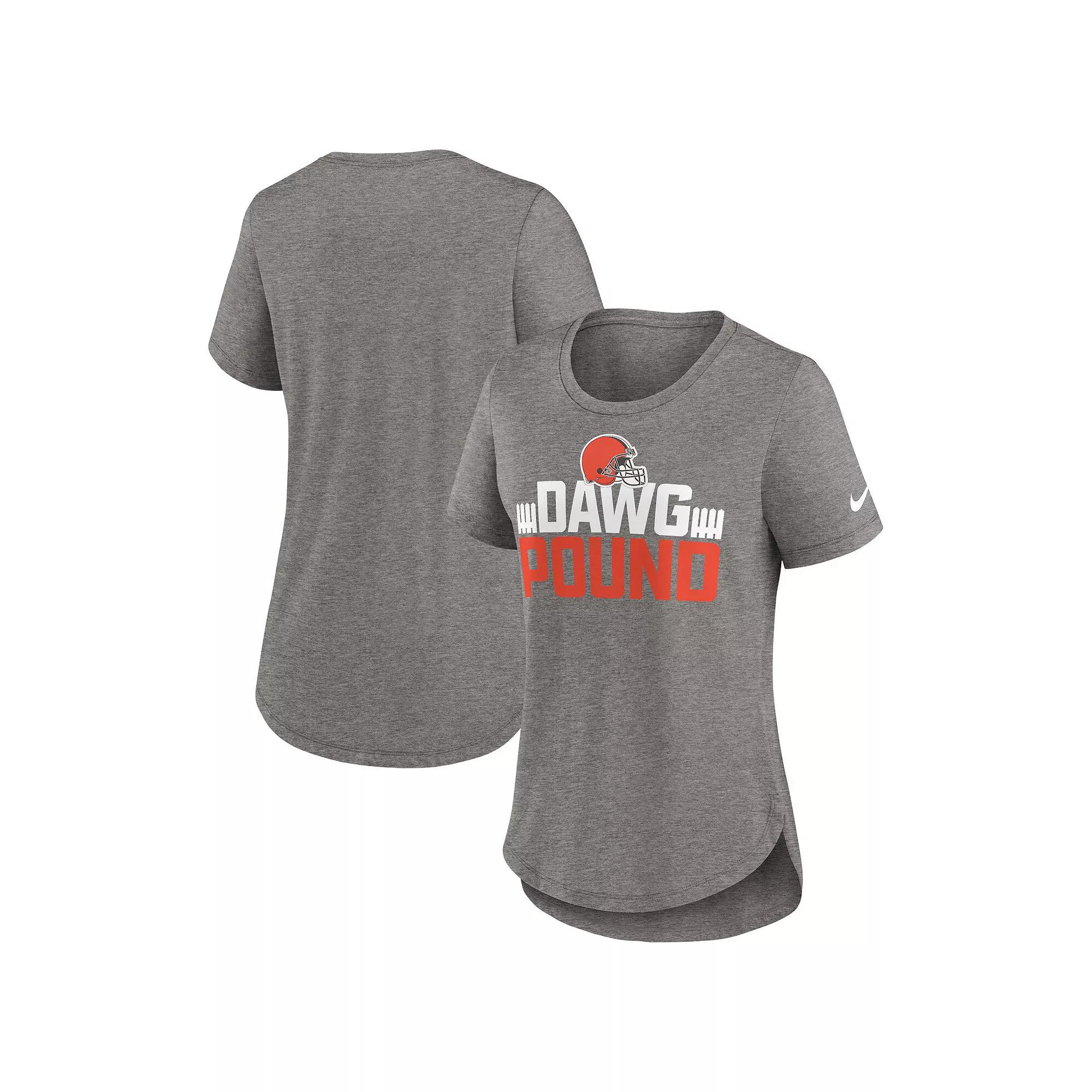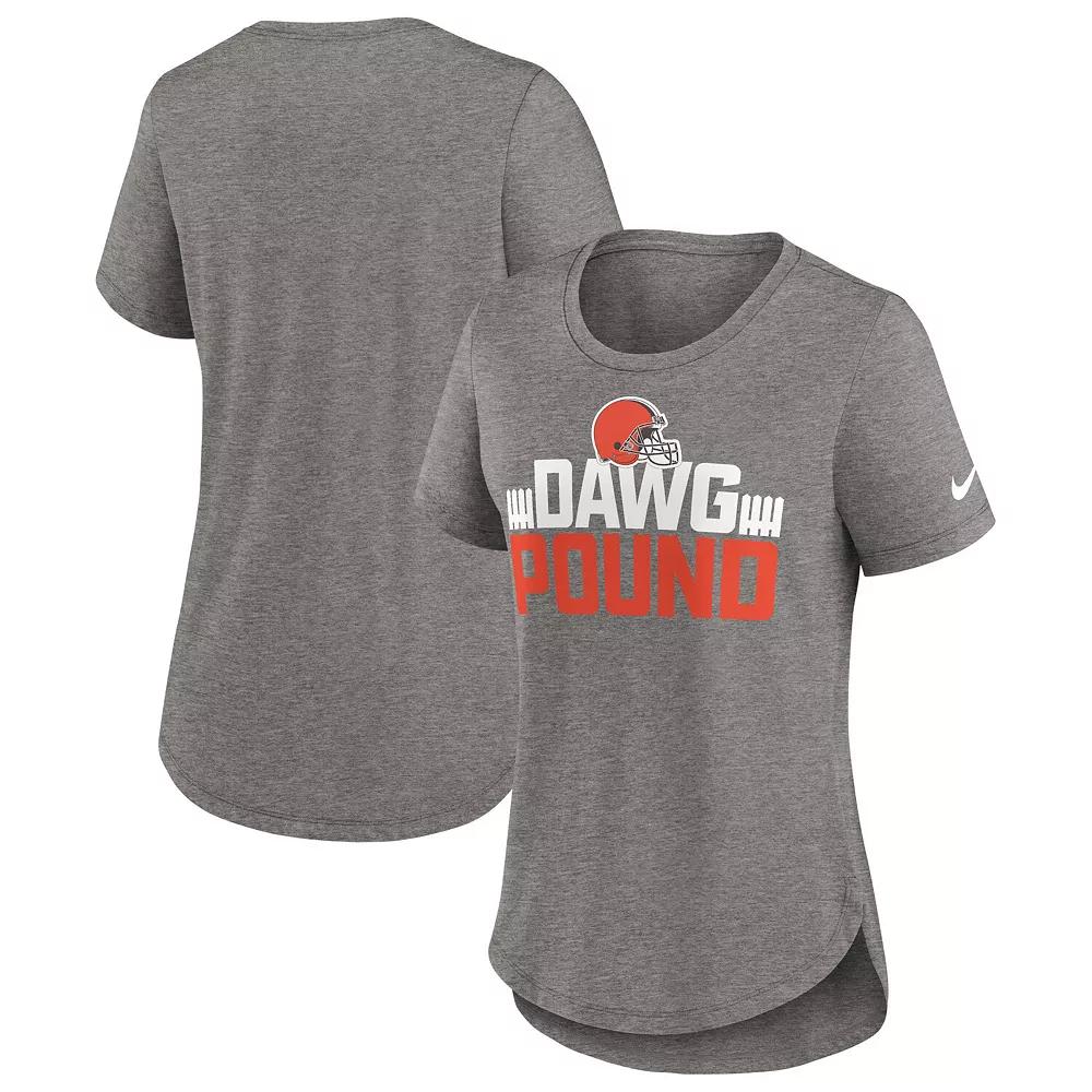 Root for your favorite NFL squad in ultra-soft comfort by adding this Cleveland Browns Local T-shirt to your collection. designed to keep you feeling as fresh as you look, this Nike top offers breathable tri-blend fabric. The striking Cleveland Browns graphics on the chest, bold pattern and flattering droptail hem elevate your spirited style.Root for your favorite NFL squad in ultra-soft comfort by adding this Cleveland Browns Local T-shirt to your collection. designed to keep you feeling as fresh as you look, this Nike top offers breathable tri-blend fabric. The striking Cleveland Browns graphics on the chest, bold pattern and flattering droptail hem elevate your spirited style.Screen print graphicsMachine wash, tumble dry lowShort sleeveRounded droptail hemBrand: NikeCrew neckImportedMaterial: 50% Polyester/25% Cotton/25%RayonOfficially licensed Color: Charcoal. Gender: female. Age Group: adult.