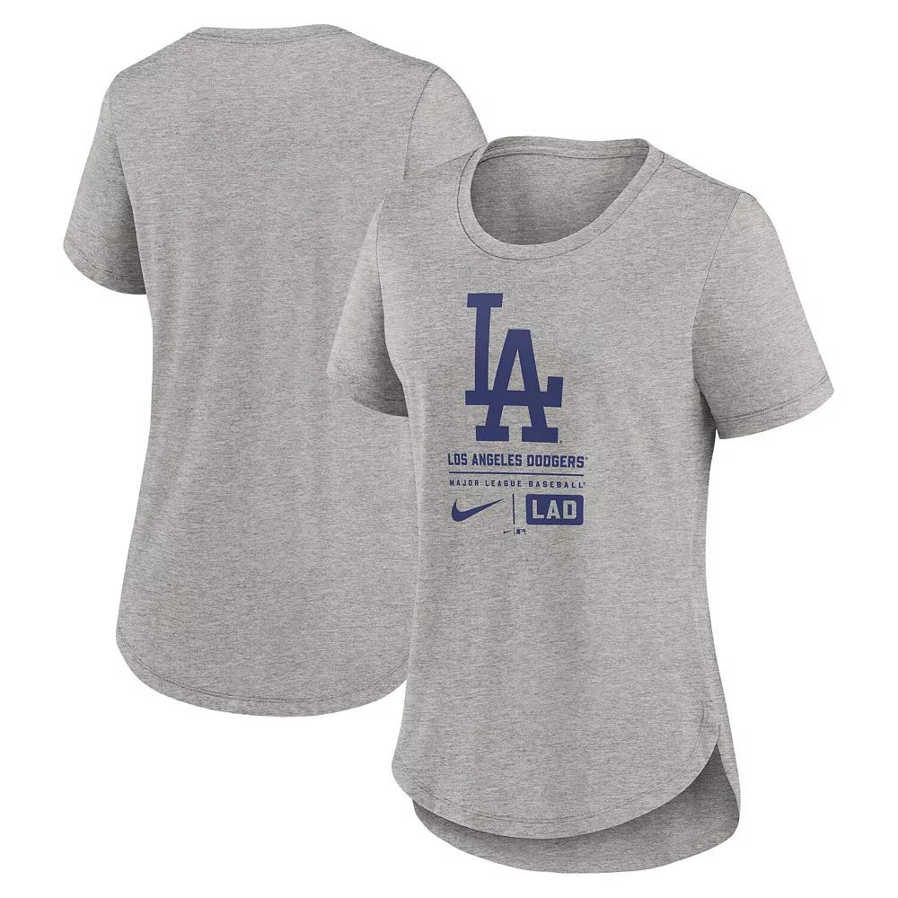 Show your Los Angeles Dodgers pride with this stylish and comfortable Large Logo Stacked T-Shirt from Nike. The tri-blend fabric combines the comfort of cotton with the durability of polyester and the drape of rayon for a feel-good fit that lasts. Its stacked team graphic printed across the chest lets you rep your Los Angeles Dodgers pride in style.Show your Los Angeles Dodgers pride with this stylish and comfortable Large Logo Stacked T-Shirt from Nike. The tri-blend fabric combines the comfort of cotton with the durability of polyester and the drape of rayon for a feel-good fit that lasts. Its stacked team graphic printed across the chest lets you rep your Los Angeles Dodgers pride in style.PRODUCT FEATURESShort sleeveMachine wash, tumble dry lowCrew neckBlended fabric provides a soft feel and added durabilityImportedRounded hemOfficially licensedScreen print graphicsMaterial: 50% Cotton/25% Polyester/25% RayonBrand: NikeStacked team graphic printed across the chest Size: XL. Color: Charco. Gender: female. Age Group: adult.