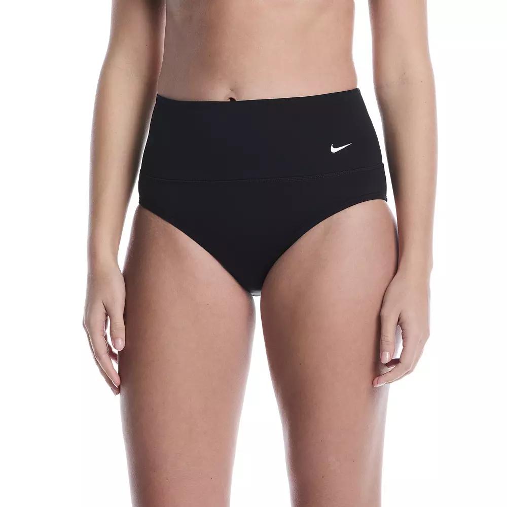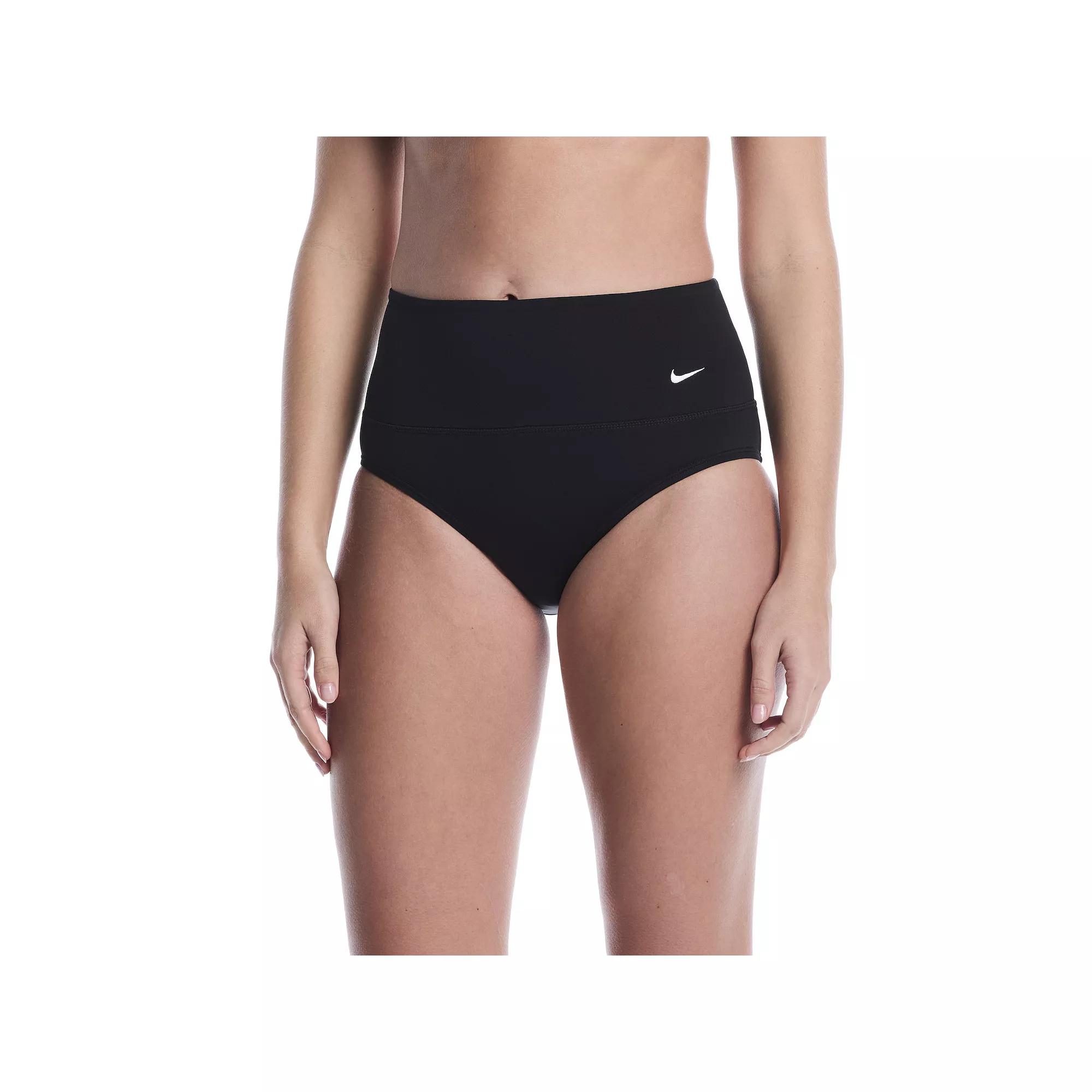 Get ready to make a splash with these Nike high waist swim bottoms that combine comfort and style beautifully. With a full-bottom coverage and an interior powernet waistband, you'll feel supported and confident whether you're lounging poolside or diving into the waves. Click on this WOMEN'S GUIDE to find the perfect fit and more! - https://www.kohls.com/feature/womens-fit-guide.jsp. FEATURES: Durable, chlorine-resistant fabric construction, High-rise waistband designed to sit at natural waist, Full-bottom coverage for enhanced support, Interior powernet waistband provides smoothing support. FIT & SIZE: High rise sits below the natural waistline, Covered elastic waistband. MATERIAL & CARE: Body: 83% polyester, 17% spandex (chlorine resistant); Mesh Liner: 84% recycled nylon, 16% spandex; Liner: 50% recycled polyester, 50% polyester, Fully lined, Machine wash. DETAILS: Full coverage, Imported. Size: X Large. Color: Black. Gender: female. Age Group: adult. Material: NYLON SPANDEX.