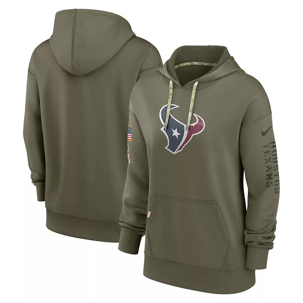 Honor our service members while supporting the Houston Texans with this 2022 Salute To Service Performance Pullover Hoodie. This Nike gear features a military-inspired color scheme, complete with an American flag and Salute To Service ribbon appliqu on the right sleeve. The crisp Houston Texans graphics and camouflage details will add some much-needed spirit to your game day collection. The NFL does not profit from the sale of Salute to Service products. Charitable contributions are awarded by the NFL Foundation to the NFLs military nonprofit partners. For more information, please visit www.NFL.com/causes/salute.