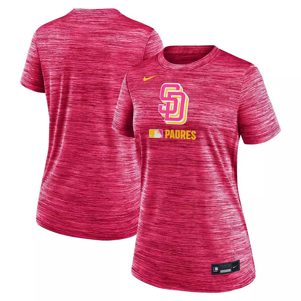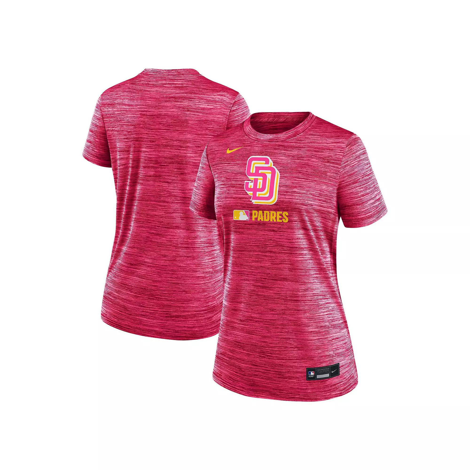 Pay homage to the hometown of your San Diego Padres with this Authentic Collection City Connect Velocity Performance T-Shirt by Nike. The specially designed team logo and cross-dyed pattern make it a unique addition to your wardrobe. Thanks to sweat-wicking Dri-FIT technology, this San Diego Padres shirt keeps you cool and dry as you rep the local fanbase.Pay homage to the hometown of your San Diego Padres with this Authentic Collection City Connect Velocity Performance T-Shirt by Nike. The specially designed team logo and cross-dyed pattern make it a unique addition to your wardrobe. Thanks to sweat-wicking Dri-FIT technology, this San Diego Padres shirt keeps you cool and dry as you rep the local fanbase.PRODUCT FEATURESLocation-inspired team logo printed on the frontDri-FIT technology wicks away moistureMachine wash, tumble dry lowImportedShort sleeveSame design worn by the players, coaches and team staffMaterial: 100% PolyesterBrand: NikeCrew neckScreen print graphicsOfficially licensedCross-dyed pattern all over Color: Pink. Gender: female. Age Group: adult.