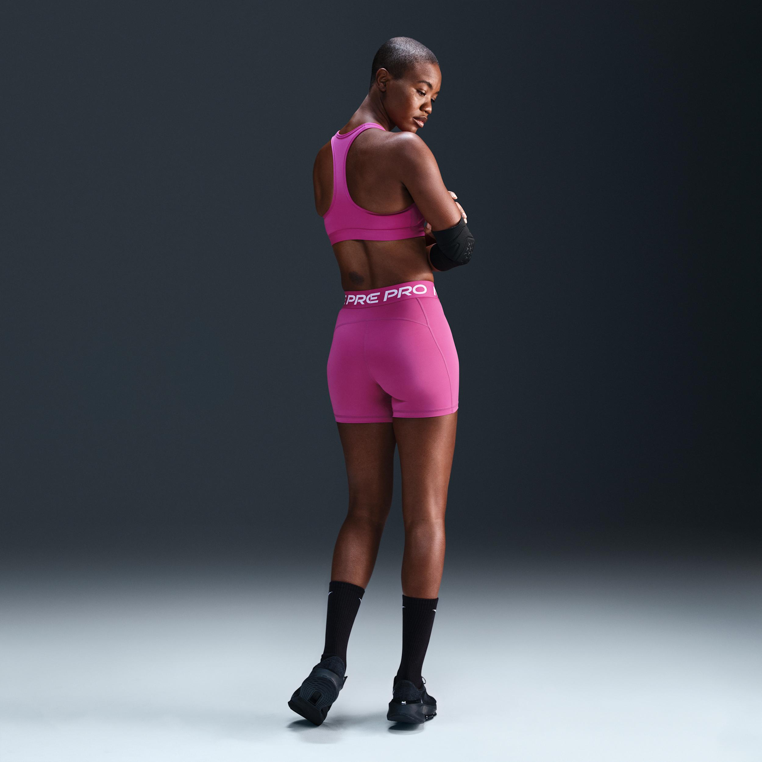 SUPPORTIVE FLEXIBILITY. The Nike Pro 365 Shorts wrap you in stretchy fabric with Dri-FIT technology to keep you feeling supported and dry during intense workouts. This product is made with at least 50% recycled polyester fibers. Sweat-Wicking Support:Stretchy fabric with Dri-FIT technology helps keep you feeling dry, comfortable and supported. Supportive Fit:The mid-rise design has a wide elastic waistband that wraps your core in supportive comfort. Cut for Focus:Curved seams highlight your natural shape while reducing distractions. [] Product Details:Tight fit for a body-hugging feel. Inseam:5. 83% polyester/17% spandex. Machine wash. Imported. Style: CZ9831; Color: Hot Fuchsia/White; Size: L; Gender: Female; Age Group: Adult | Nike Pro 365 Women's 5" Shorts in Purple, Size: Large | CZ9831-518