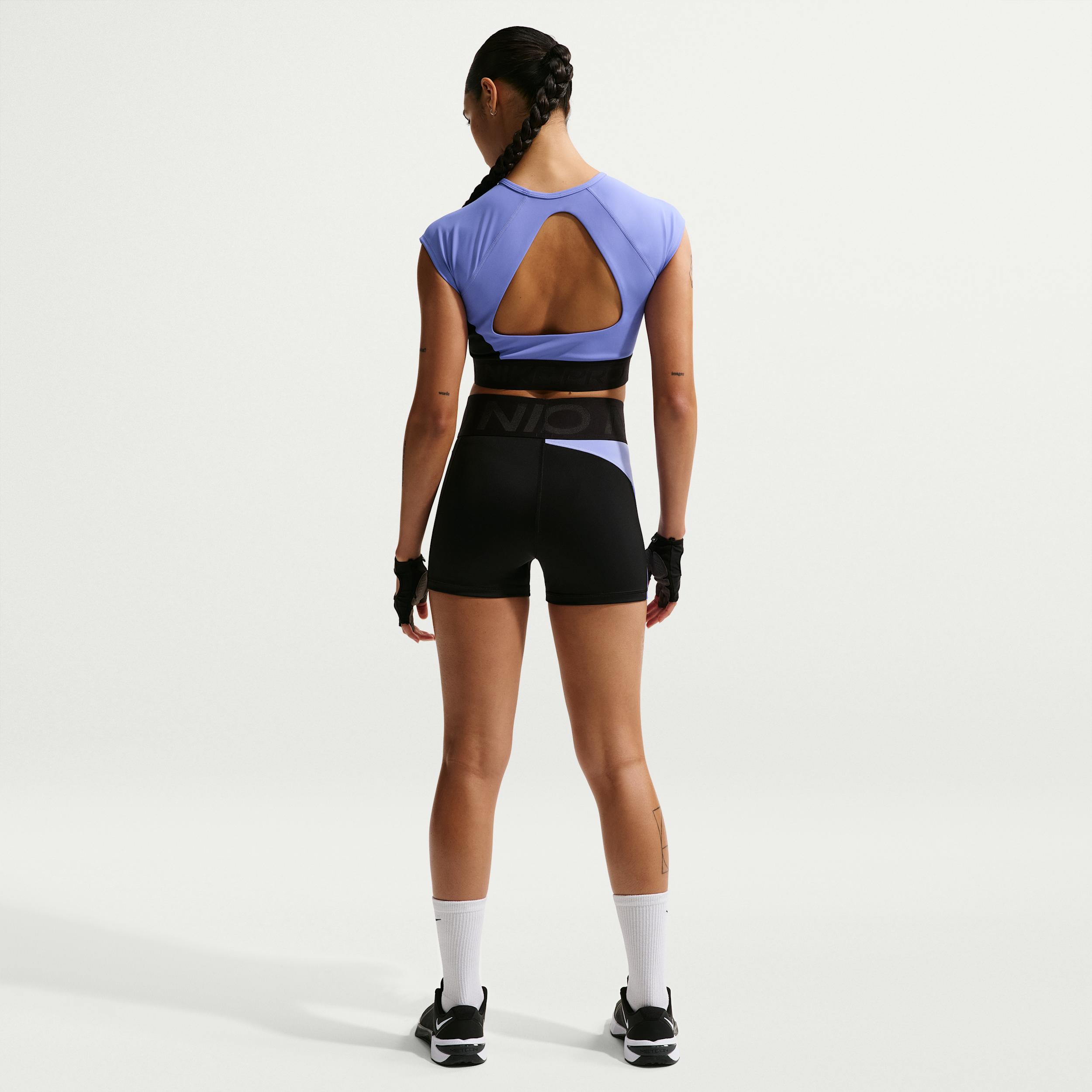Push yourself harder in these Nike Pro Sculpt biker shorts. Thicker and stretchier than our classic Nike Pro material, midweight fabric delivers a smoothing sensation. Plus, a wider elastic waistband adds to a more secure, cool feeling as you go hard and get your sweat on. Like a Pro:Unapologetic, confident style goes with anything. From leggings to tops to more, Nike Pro rounds out your wardrobe with pieces that help you stand out. Work Hard. Stay Dry.:Nike Dri-FIT technology moves sweat away from your skin for quicker evaporation, helping you stay dry and comfortable. [] Product Details:Swoosh logo. Nike Pro branding on waistband. Body:75% polyester/25% spandex. Waistband:84% nylon/16% spandex. Machine Wash. Imported. Style: IQ0363; Color: Black/Light Thistle/Sapphire/White; Size: XL; Gender: Female; Age Group: Adult | Nike Pro Sculpt Women's High-Waisted 3" Biker Shorts in Black, Size: XL | IQ0363-013