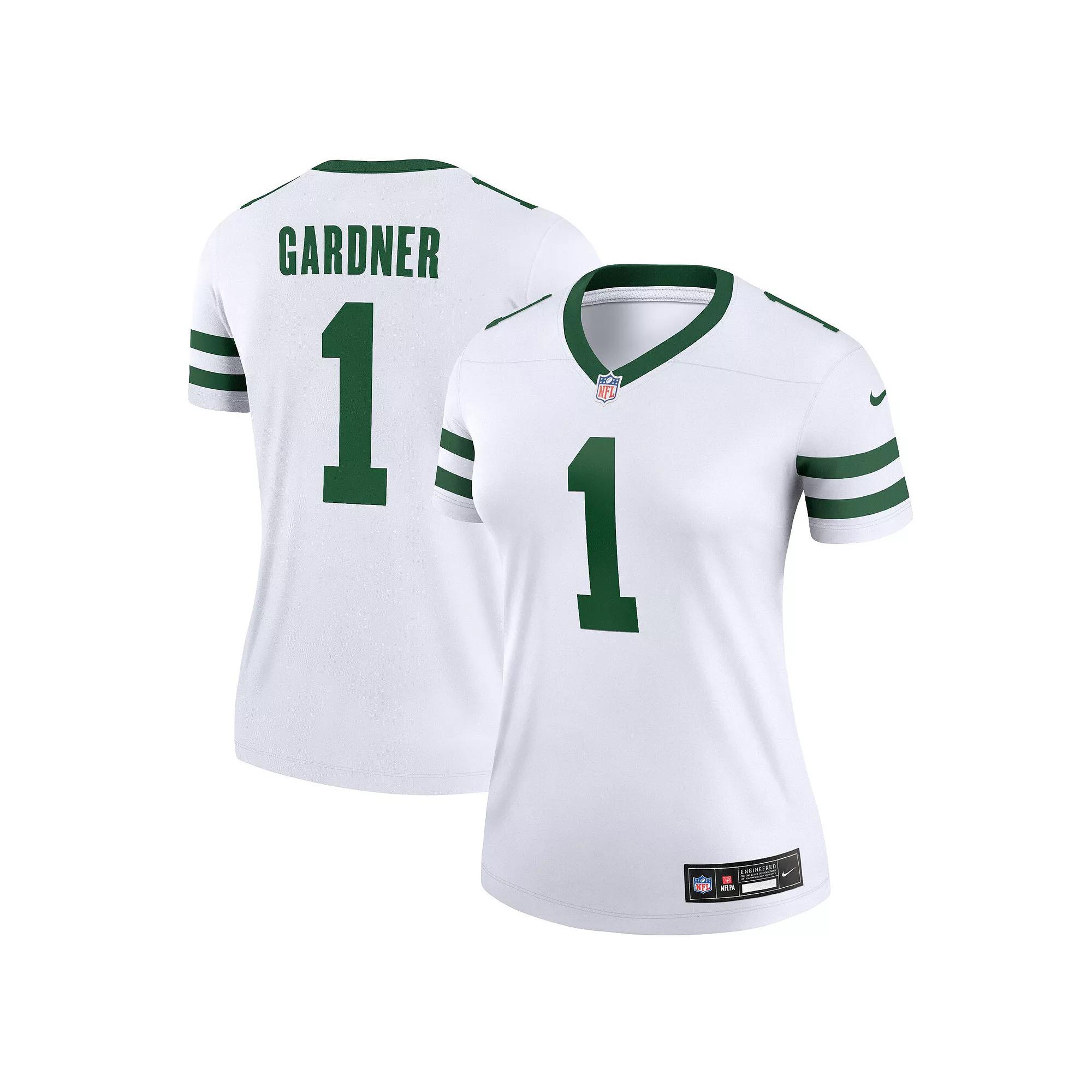 Showcase your dedication to the New York Jets on any given day with this Ahmad Sauce Gardner Legend jersey from Nike. It keeps you dry and cool using sweat-wicking Dri-FIT technology and offers a perfect fit for a comfortable wear. The authentic sublimated design of this Ahmad Sauce Gardner jersey makes it easy to show off your New York Jets pride.Showcase your dedication to the New York Jets on any given day with this Ahmad Sauce Gardner Legend jersey from Nike. It keeps you dry and cool using sweat-wicking Dri-FIT technology and offers a perfect fit for a comfortable wear. The authentic sublimated design of this Ahmad Sauce Gardner jersey makes it easy to show off your New York Jets pride.PRODUCT FEATURESMove To Zero is Nikes journey toward zero carbon and zero waste to help protect the future of sport. Apparel labeled sustainable materials is made with at least 55% recycled content.Officially licensedNike LegendJersey Color Style: AlternateMachine wash, tumble dry lowMaterial: 100% Polyester TricotWomens Nike Legend Jerseys have a Standard Fit thats not too tight and not too loose. Designed with a relaxed fit through shoulders, chest and waist.Dri-FIT technology wicks away moistureBrand: NikeImportedRounded hemSatin woven jock tagFully sublimated name, numbers and team details for lightweight comfortStitched NFL Shield at front neckStandard fitShort sleeveBack neck taping Color: White. Gender: female. Age Group: adult.