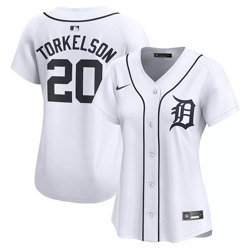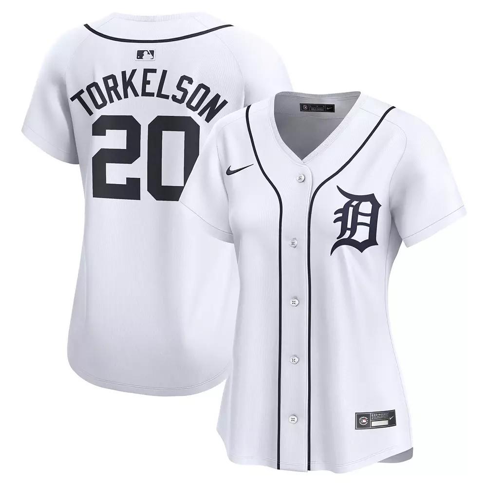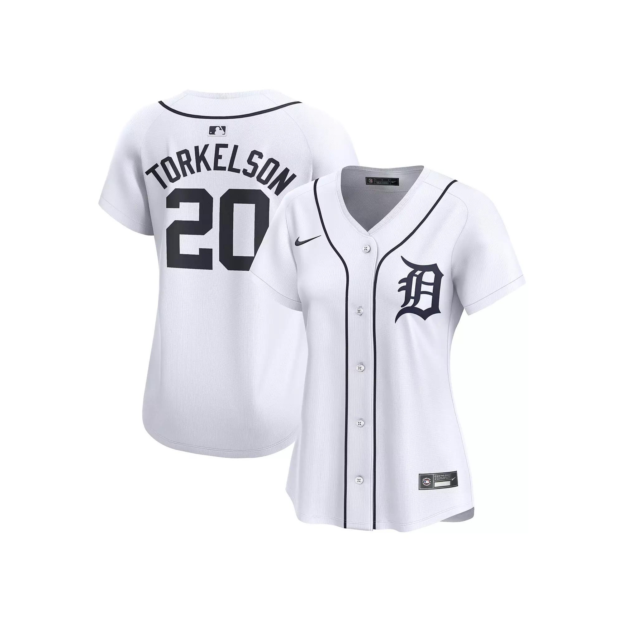 Inspired by the on-field uniforms of the Detroit Tigers, this Spencer Torkelson Limited jersey delivers an authentic look with twill details, so you can feel like the real deal next time youre at the ballpark. Its breathable, sweat-wicking fabric keeps you cool and dry as you sport this Spencer Torkelson jersey, even during the dog days of summer.Inspired by the on-field uniforms of the Detroit Tigers, this Spencer Torkelson Limited jersey delivers an authentic look with twill details, so you can feel like the real deal next time youre at the ballpark. Its breathable, sweat-wicking fabric keeps you cool and dry as you sport this Spencer Torkelson jersey, even during the dog days of summer.PRODUCT FEATURESRounded hemSublimated sleeve patches and front numbers (where applicable)Machine wash, tumble dry lowHeat-applied woven MLB Batterman and jock tagNike LimitedEmbroidered Swoosh logoHeat-sealed twill front logo or wordmark with zigzag stitchingBrand: NikeRecycled trims and twill details help provide a more authentic look and feelJersey Color Style: HomeVapor Premier chassis is made with breathable, high-performance fabric that improves mobility and moisture managementShort sleeveFull-button frontStandard fitNike Limited jersey is inspired by the on-field uniform of your favorite teamMaterial: 100% Recycled Polyester Double-Knit MeshImportedNike Dri-FIT ADV technology combines moisture-wicking fabric with advanced engineering and features to help you stay dry and comfortableOfficially licensedSublimated twill back player name and numbersMove To Zero is Nikes journey toward zero carbon and zero waste to help protect the future of sport. Apparel labeled sustainable materials is made with at least 55% recycled content. Size: XL. Color: White. Gender: female. Age Group: adult.