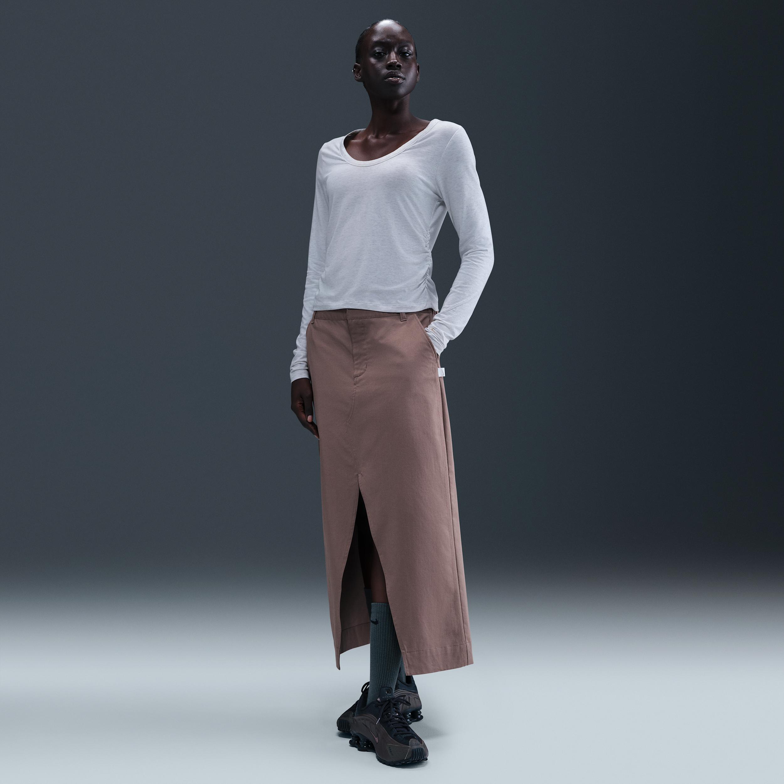 Ruched sides elevate this simple top. It's made with smooth jersey fabric that's stretchy with a slight drape, making it perfect for everyday wear. [] Product Details:48% modal/46% cotton/6% spandex. Swoosh logo at center chest. Machine wash. Imported. Style: HV2399; Color: Birch Heather/Light Orewood Brown; Size: M; Gender: Female; Age Group: Adult | Nike Sportswear Chill Knit Women's Long-Sleeve Top in Brown, Size: Medium | HV2399-051