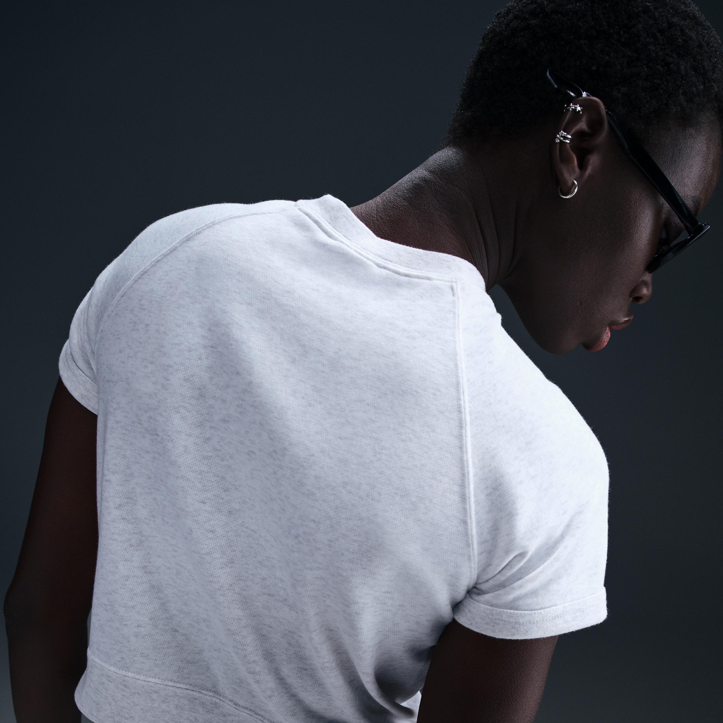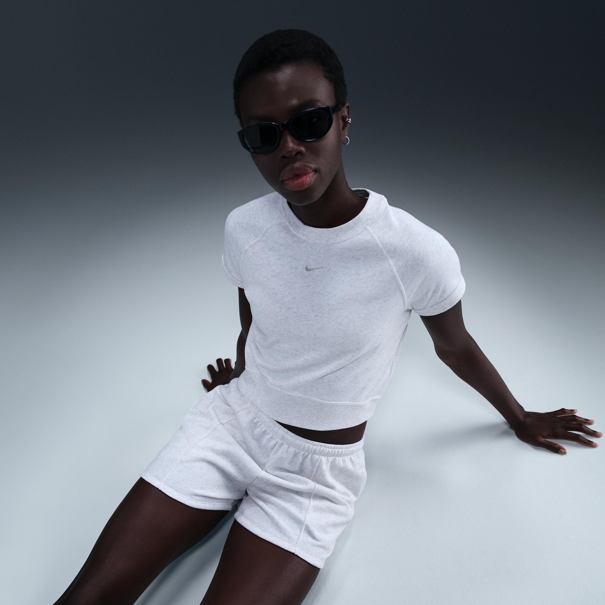 Its hard to beat a classic tee, but this one elevates the wardrobe staple. Its made with lightweight French terry fabric, bridging the gap between fleece and jersey knit for an effortlessly comfortable feel. Product Details:Body: 70% cotton/30% polyester. Rib: 97% cotton/3% spandex. Embroidered Swoosh logo on chest. Raglan sleeves. Machine wash. Imported. Style: HM6970; Color: Birch Heather/Light Orewood Brown; Size: XL; Gender: Female; Age Group: Adult | Nike Sportswear Chill Terry Womens Short-Sleeve French Terry Top in Brown, Size: XL | HM6970-051