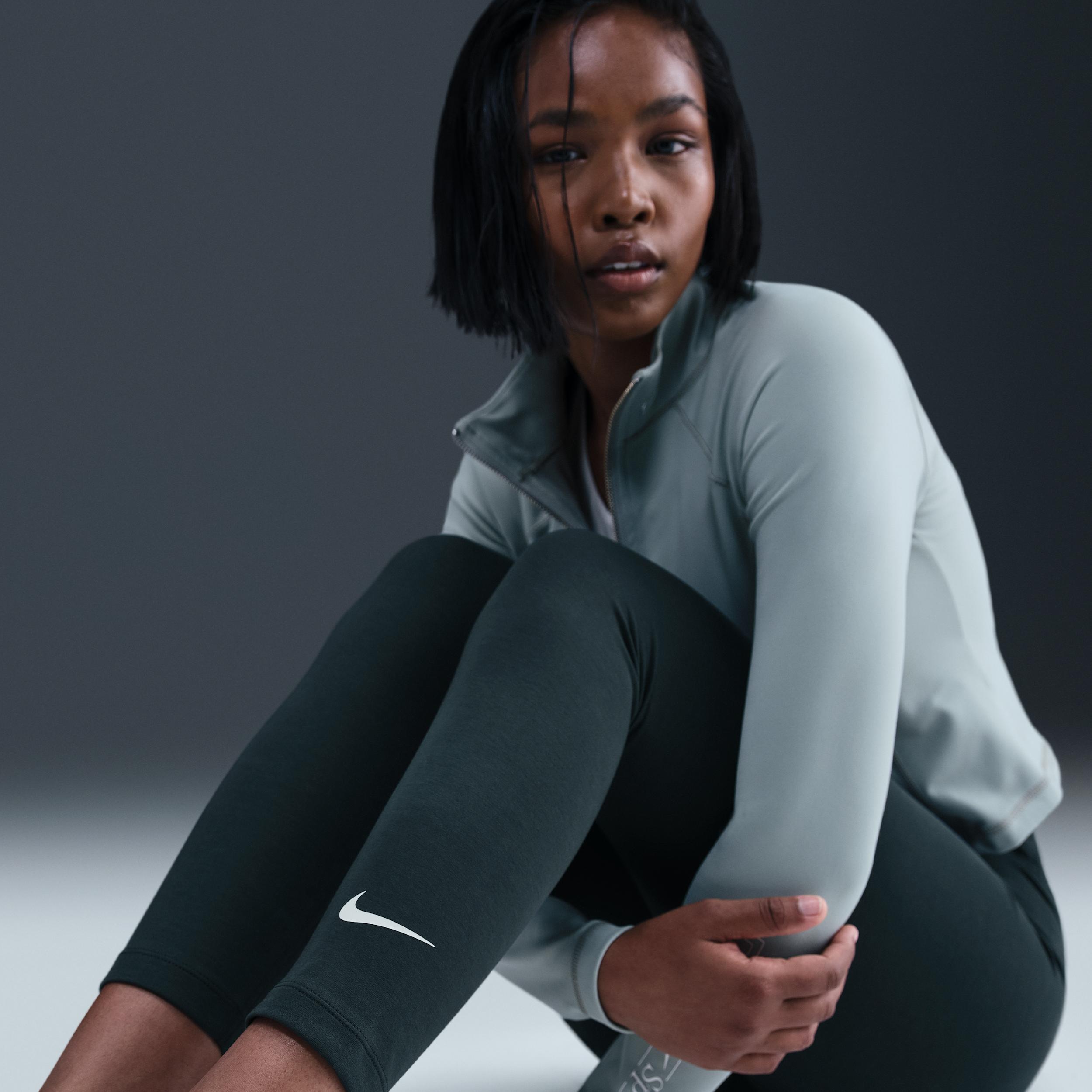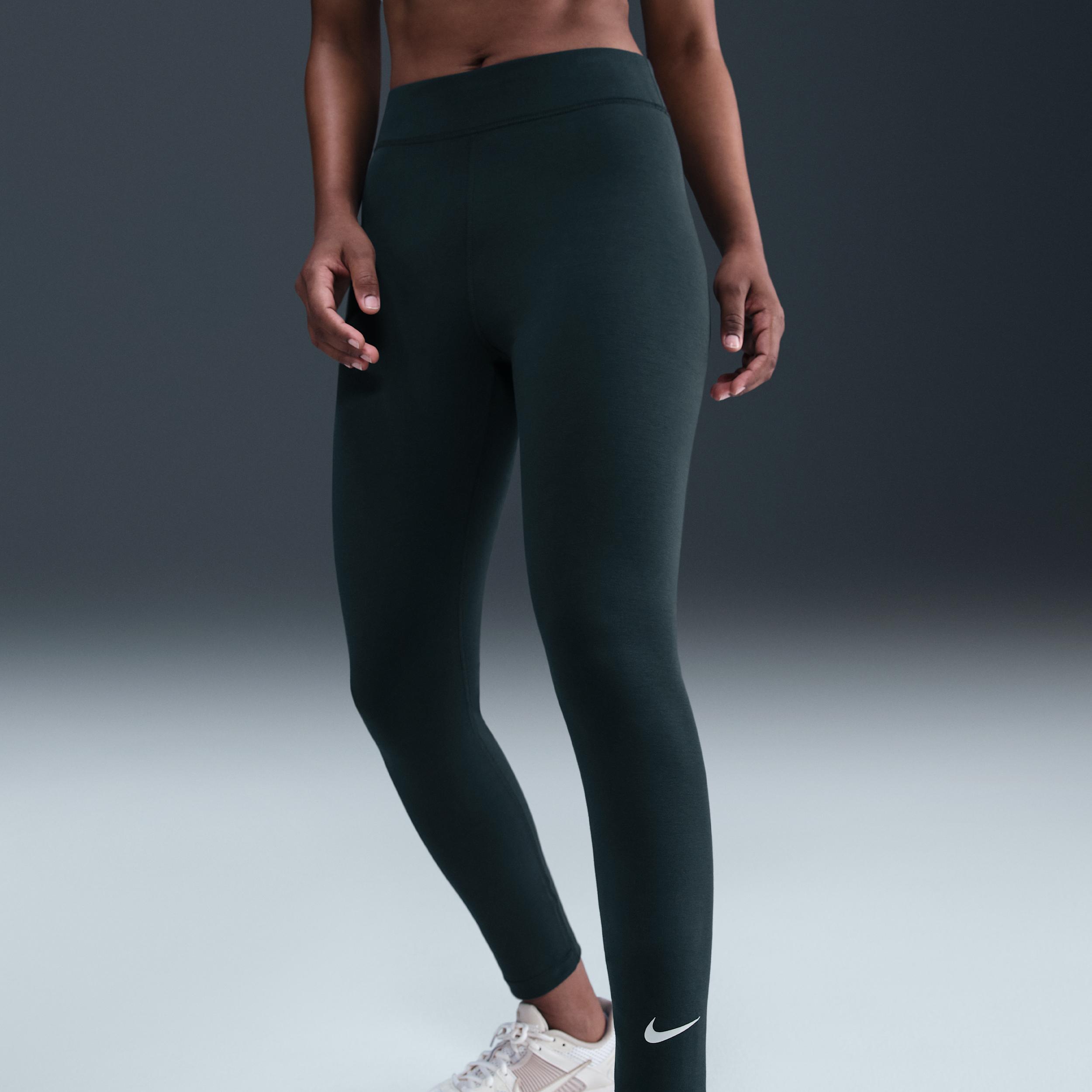 We've revamped this closet staple to be more durable and less sheer than previous versions. Designed to support you from one task to the next, our Classic lifestyle leggings are made from stretchy fabric that feels thick but still lightweight and peachy-soft but still strong. Endlessly comfortable, you'll want to wear these 24/7. Feels Better:Stretchy fabric feels like soft cotton but wicks away moisture like a performance material. Performs Better:Updated design is incredibly durable and opaque. Whether you're standing or sitting, we have your butt coveredâliterally. Looks Better:Not too wide and not too narrow, the just-right elastic waistband checks all the boxes for a smooth, secure fit. No rolling, pinching or gapingâno matter how you move. [] Product Details:47% cotton/41% polyester/12% spandex. High-rise waistband. 7/8 length. Printed Swoosh logo. Machine wash. Imported. Style: DV7789; Color: Seaweed/Sail; Size: S; Gender: Female; Age Group: Adult | Nike Sportswear Classic Women's High-Waisted 7/8 Leggings in Green, Size: Small | DV7789-390