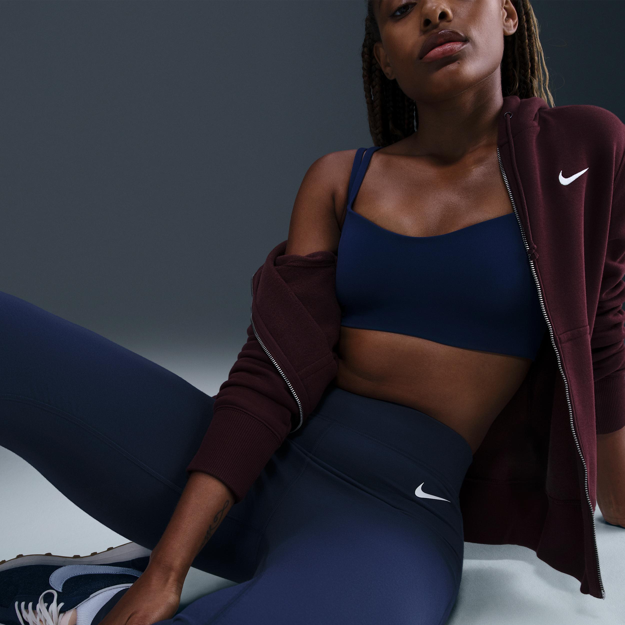 Thick but still lightweight, peachy-soft but still strong, these bootcut pants stretch with your every move for casual comfort. Benefits:Encased elastic waistband feels comfortably snug. Lightweight fabric moves sweat away from your skin for quick evaporation, helping you stay dry and comfortable. [] Product Details:47% cotton/41% polyester/12% spandex. Printed Swoosh logo on left hip. Machine wash. Imported. Style: HJ1011; Color: Midnight Navy/Sail; Size: S; Gender: Female; Age Group: Adult | Nike Sportswear Classic Women's High-Waisted Bootcut Pants in Blue, Size: Small | HJ1011-410