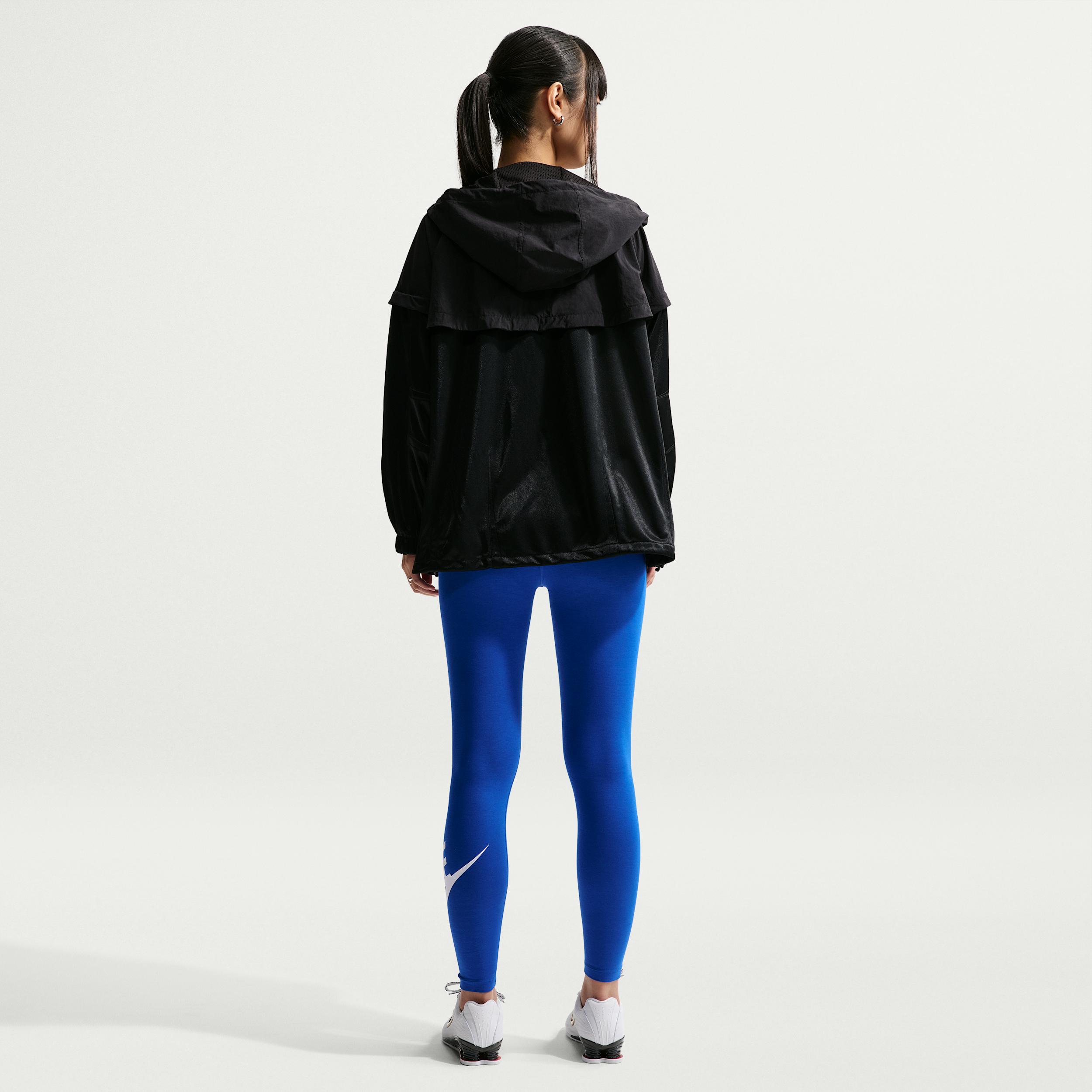 More durable, less sheer and twice as stretchy as our previous Essentials leggings: We've remixed a wardrobe staple. Designed to support you from one task to the next, our Classics lifestyle leggings feel thick but still lightweight, and peachy-soft but still strong. In two words, they're better. Feels Better:The updated fabric feels like cotton but wicks moisture like a performance material. Endlessly comfortable, you'll want to wear these 24/7. Performs Better:Thick, soft and firm, the new fabric is incredibly durable and opaque. Whether you're standing, bending or sitting, we have your butt coveredâliterally. Looks Better:Not too wide, not too narrow, the just-right elastic waistband checks all the boxes for a comfortable fit. No rolling, pinching or gapingâno matter how you move. [] Product Details:47% cotton/41% polyester/12% spandex. High-rise waistband. Full length. Machine wash. Imported. Style: DV7791; Color: Game Royal/White; Size: L; Gender: Female; Age Group: Adult | Nike Sportswear Classics Women's High-Waisted Graphic Leggings in Blue, Size: Large | DV7791-480