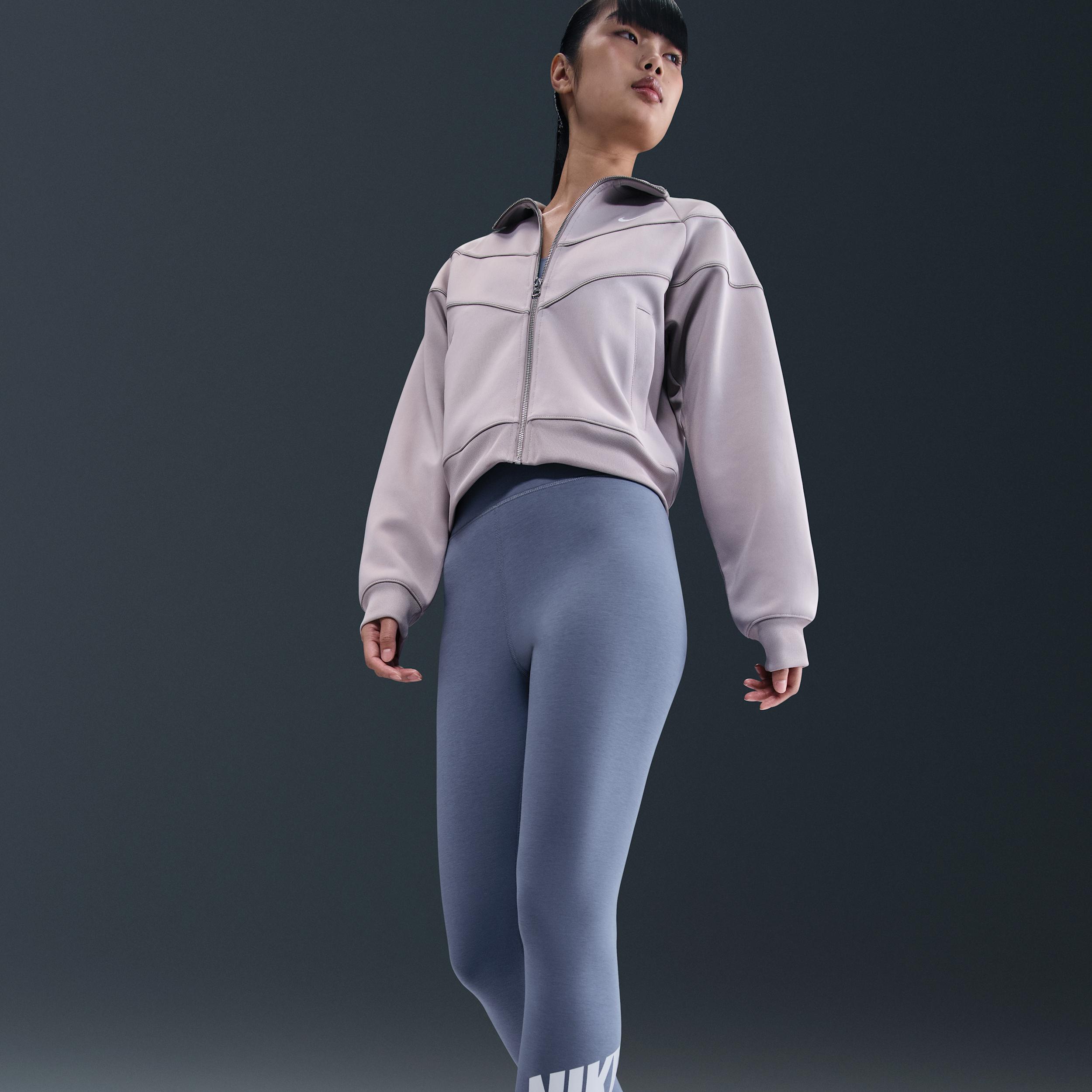 More durable, less sheer and twice as stretchy as our previous Essentials leggings: Weve remixed a wardrobe staple. Designed to support you from one task to the next, our Classics lifestyle leggings feel thick but still lightweight, and peachy-soft but still strong. In two words, theyre better. Feels Better:The updated fabric feels like cotton but wicks moisture like a performance material. Endlessly comfortable, youll want to wear these 24/7. Performs Better:Thick, soft and firm, the new fabric is incredibly durable and opaque. Whether youre standing, bending or sitting, we have your butt coveredliterally. Looks Better:Not too wide, not too narrow, the just-right elastic waistband checks all the boxes for a comfortable fit. No rolling, pinching or gapingno matter how you move. [] Product Details:47% cotton/41% polyester/12% spandex. High-rise waistband. Full length. Machine wash. Imported. Style: DV7791; Color: World Indigo/White; Size: M; Gender: Female; Age Group: Adult | Nike Sportswear Classics Womens High-Waisted Graphic Leggings in Blue, Size: Medium | DV7791-499