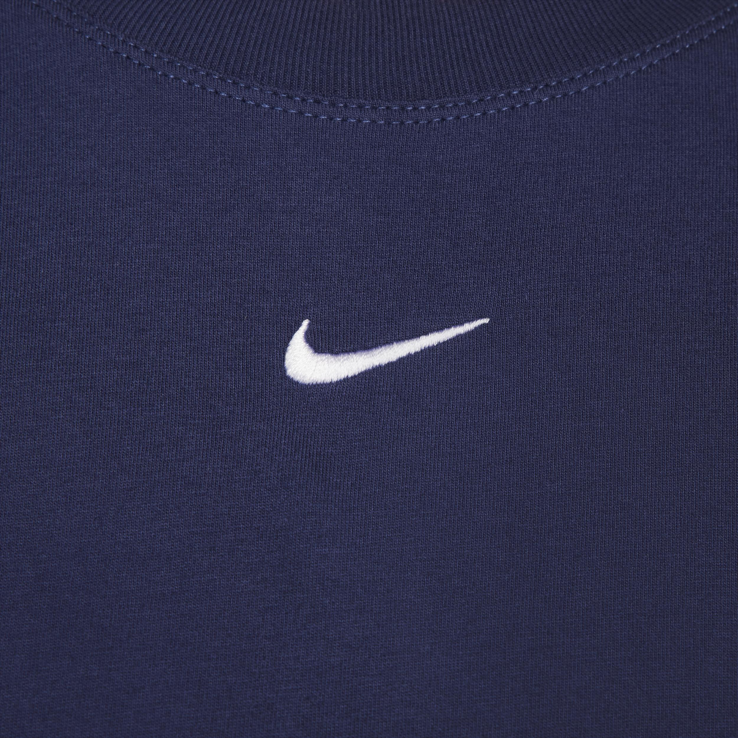 Say hello to your go-to cotton tee. Slightly dropped shoulder seams and a loose fit make it comfortable enough to wear around the house yet elevated enough to wear out in the city. [] Product Details:Embroidered Swoosh logo. 100% organic cotton. Machine wash. Imported. Style: FD4149; Color: Midnight Navy; Size: M; Gender: Female; Age Group: Adult | Nike Sportswear Essential Women's T-Shirt in Blue, Size: Medium | FD4149-410