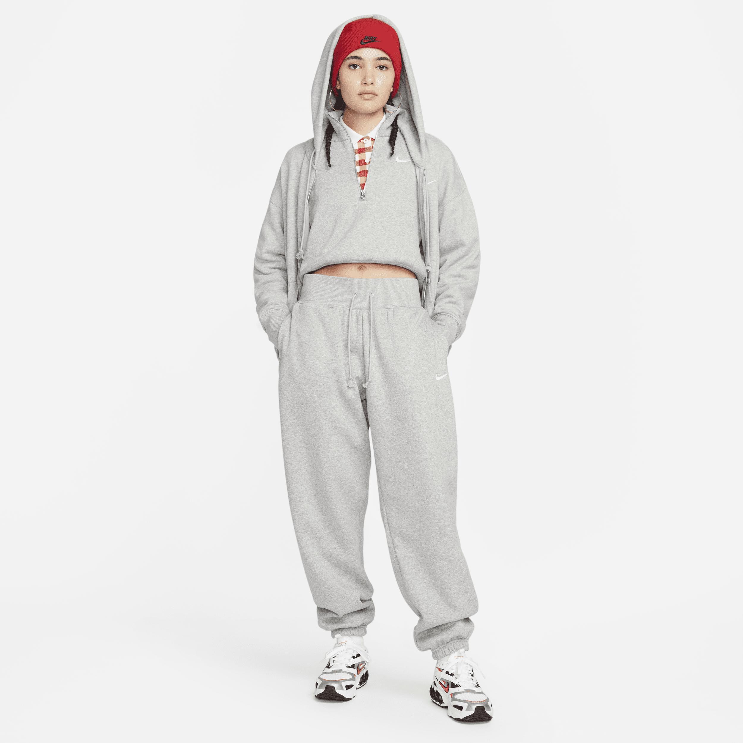 Grounded in style, comfort and versatility, meet our take on luxury loungewear. These high-waisted sweats combine midweight brushed fleece with an oversized fit to ensure your look is anything but basicâwhether you're at home or on the go. Benefits:Our midweight brushed fleece feels extra soft on the inside and smooth on the outside, helping you stay cozy while keeping its structured shape. Oversized fit for a baggy, spacious feel. High-rise waistband with drawcord gives you a snug fit. [] Product Details:Side pockets. Elongated ribbing. Embroidered Swoosh logo. 80% cotton/20% polyester. Machine wash. Imported. Style: DQ5887; Color: Dark Grey Heather/Sail; Size: M; Gender: Female; Age Group: Adult | Nike Sportswear Phoenix Fleece Women's High-Waisted Oversized Sweatpants in Grey, Size: Medium | DQ5887-063