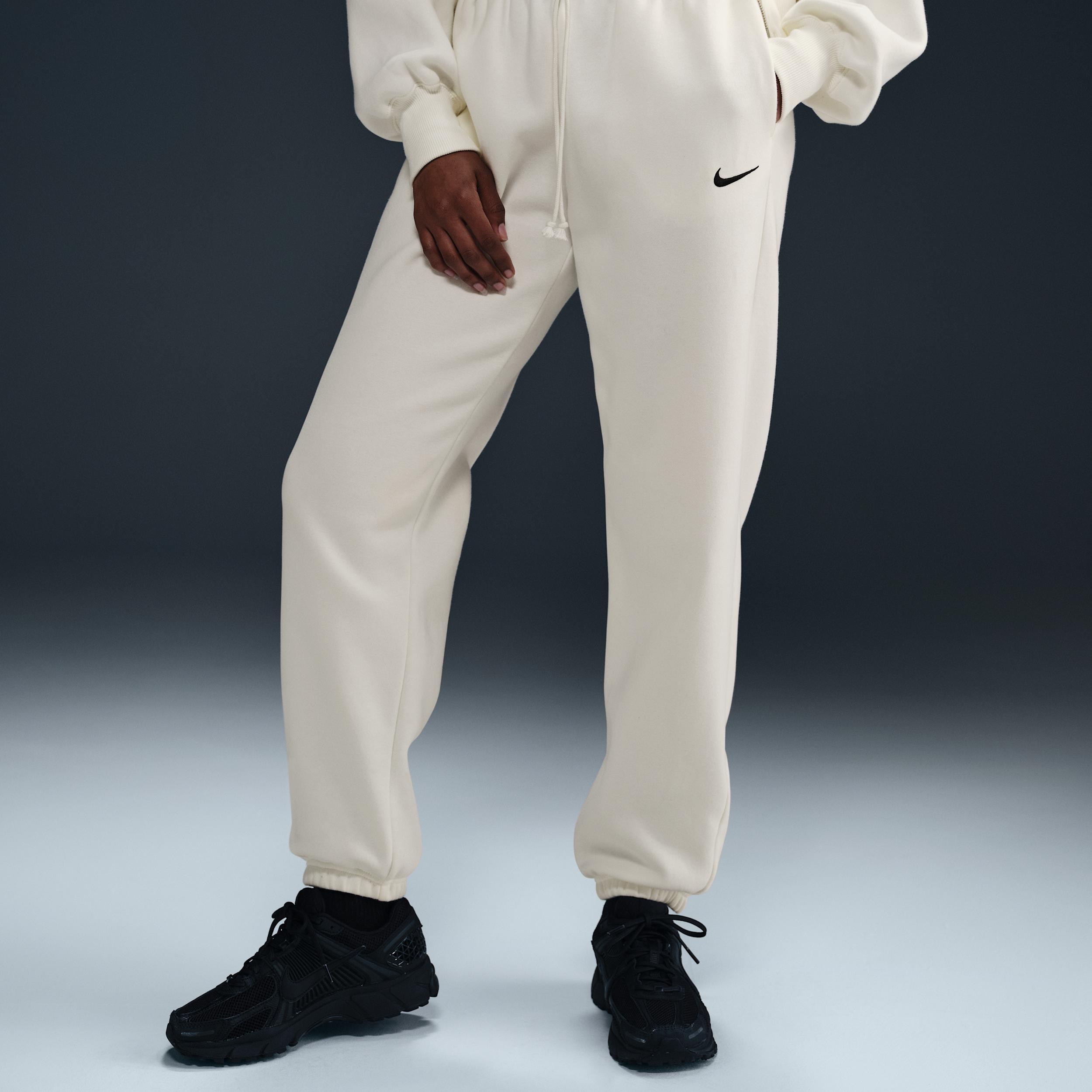 Grounded in style, comfort and versatility, meet our take on luxury loungewear. Whether you're running errands or rewatching your favorite show, these midweight fleece sweats feel extra soft on the inside to help keep you cozy. The oversized fit is intended to sit high on your hips for comfort and a stay-put feel. Benefits:Encased elastic waistband and drawstrings ensure a fit that feels just right. Pockets provide quick storage for keys, phone and cold hands. [] Product Details:80% cotton/20% polyester. Embroidered Swoosh logo on left leg. Machine wash. Imported. Style: FZ5996; Color: Sail/Black; Size: XS; Gender: Female; Age Group: Adult | Nike Sportswear Phoenix Fleece Women's High-Waisted Oversized Sweatpants in White, Size: XS | FZ5996-133