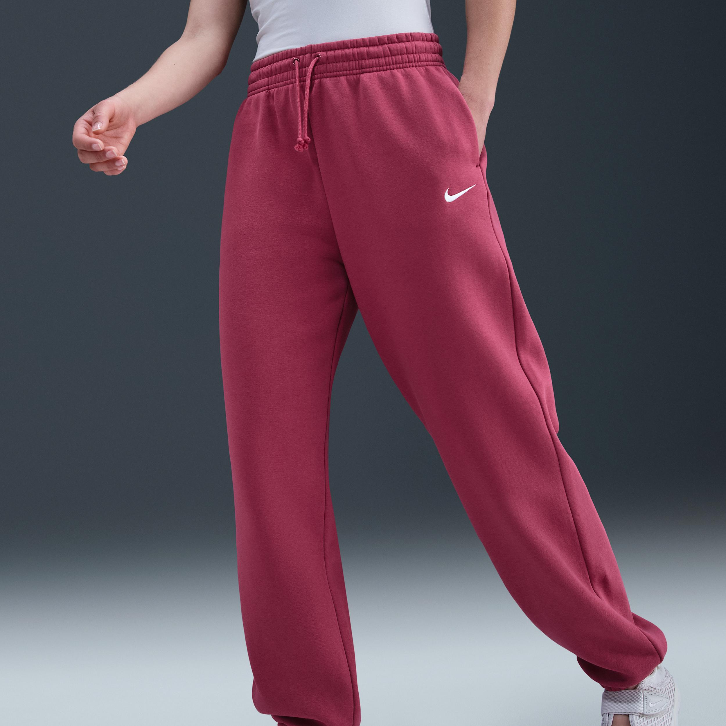 Grounded in style, comfort and versatility, meet our take on luxury loungewear. Whether you're running errands or rewatching your favorite show, these midweight fleece sweats feel extra soft on the inside to help keep you cozy. The oversized fit is intended to sit high on your hips for comfort and a stay-put feel. Benefits:Encased elastic waistband and drawstrings ensure a fit that feels just right. Pockets provide quick storage for keys, phone and cold hands. [] Product Details:80% cotton/20% polyester. Embroidered Swoosh logo on left leg. Machine wash. Imported. Style: FZ5996; Color: Sweet Beet/Sail; Size: 2XS; Gender: Female; Age Group: Adult | Nike Sportswear Phoenix Fleece Women's High-Waisted Oversized Sweatpants in Purple, Size: 2XS | FZ5996-635