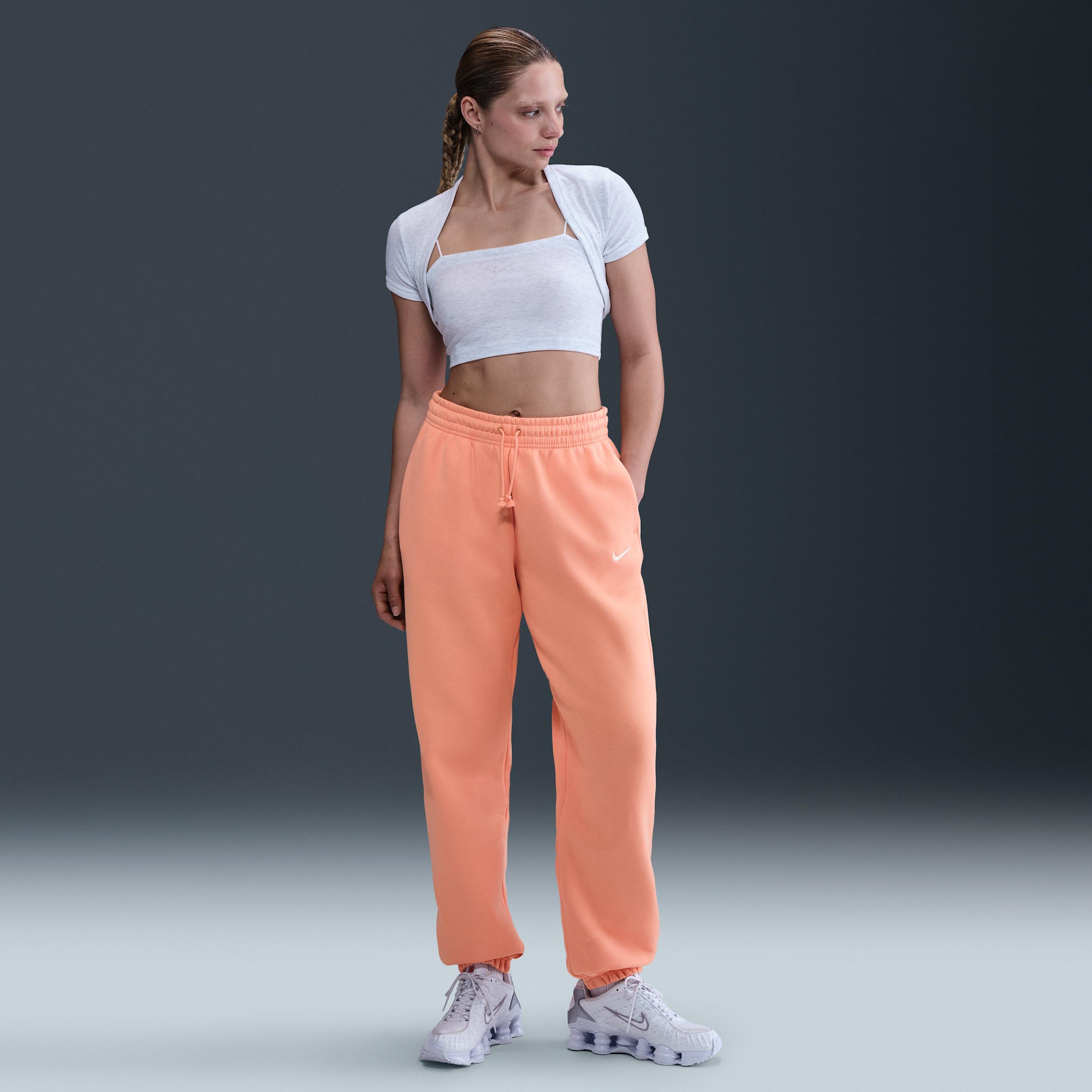 Grounded in style, comfort and versatility, meet our take on luxury loungewear. Whether you're running errands or rewatching your favorite show, these midweight fleece sweats feel extra soft on the inside to help keep you cozy. The oversized fit is intended to sit high on your hips for comfort and a stay-put feel. Benefits:Encased elastic waistband and drawstrings ensure a fit that feels just right. Pockets provide quick storage for keys, phone and cold hands. Product Details:80% cotton/20% polyester. Embroidered Swoosh logo on left leg. Machine wash. Imported. Style: FZ5996; Color: Apricot Agate/Sail; Size: 2XL; Gender: Female; Age Group: Adult | Nike Sportswear Phoenix Fleece Women's High-Waisted Oversized Sweatpants in Orange, Size: 2XL | FZ5996-844
