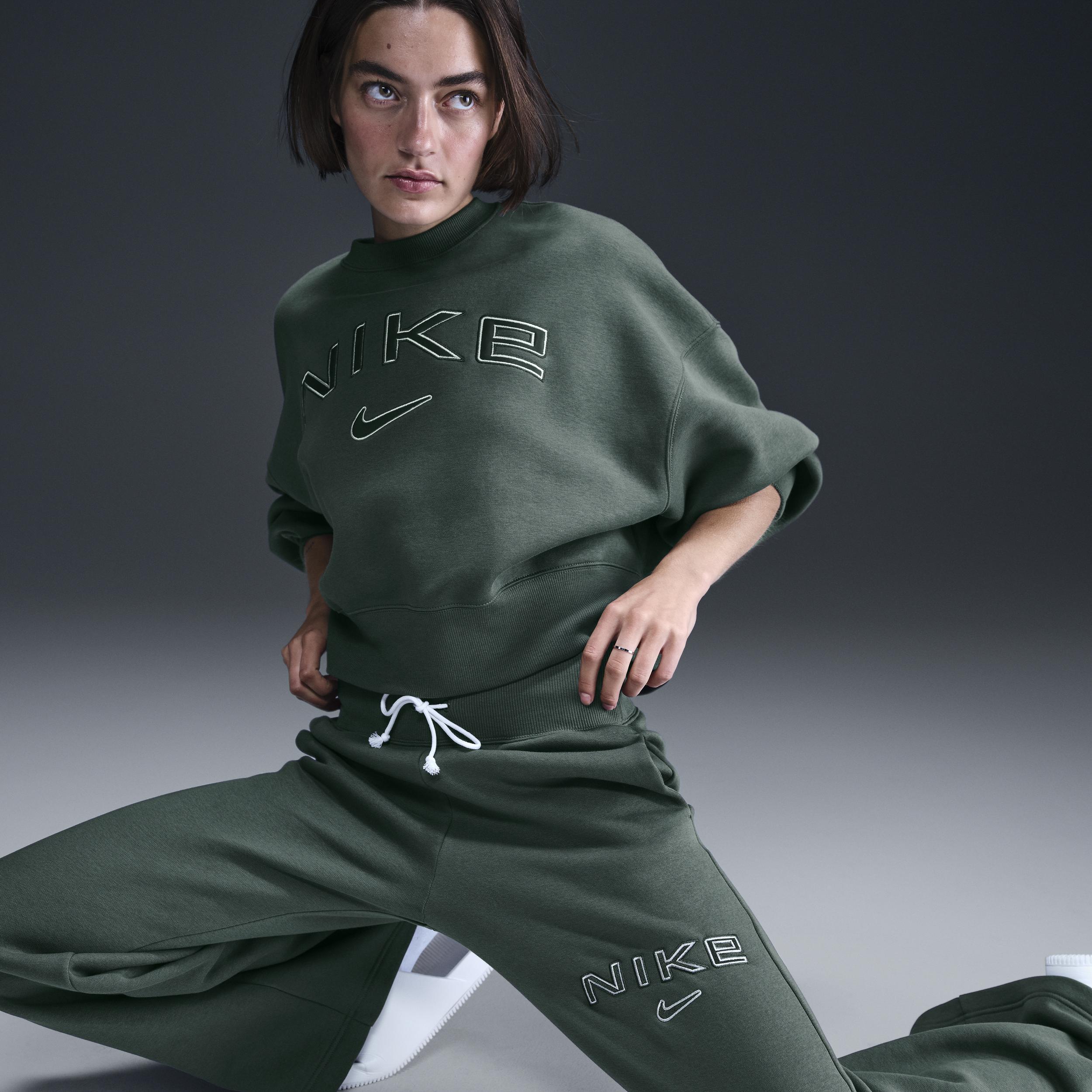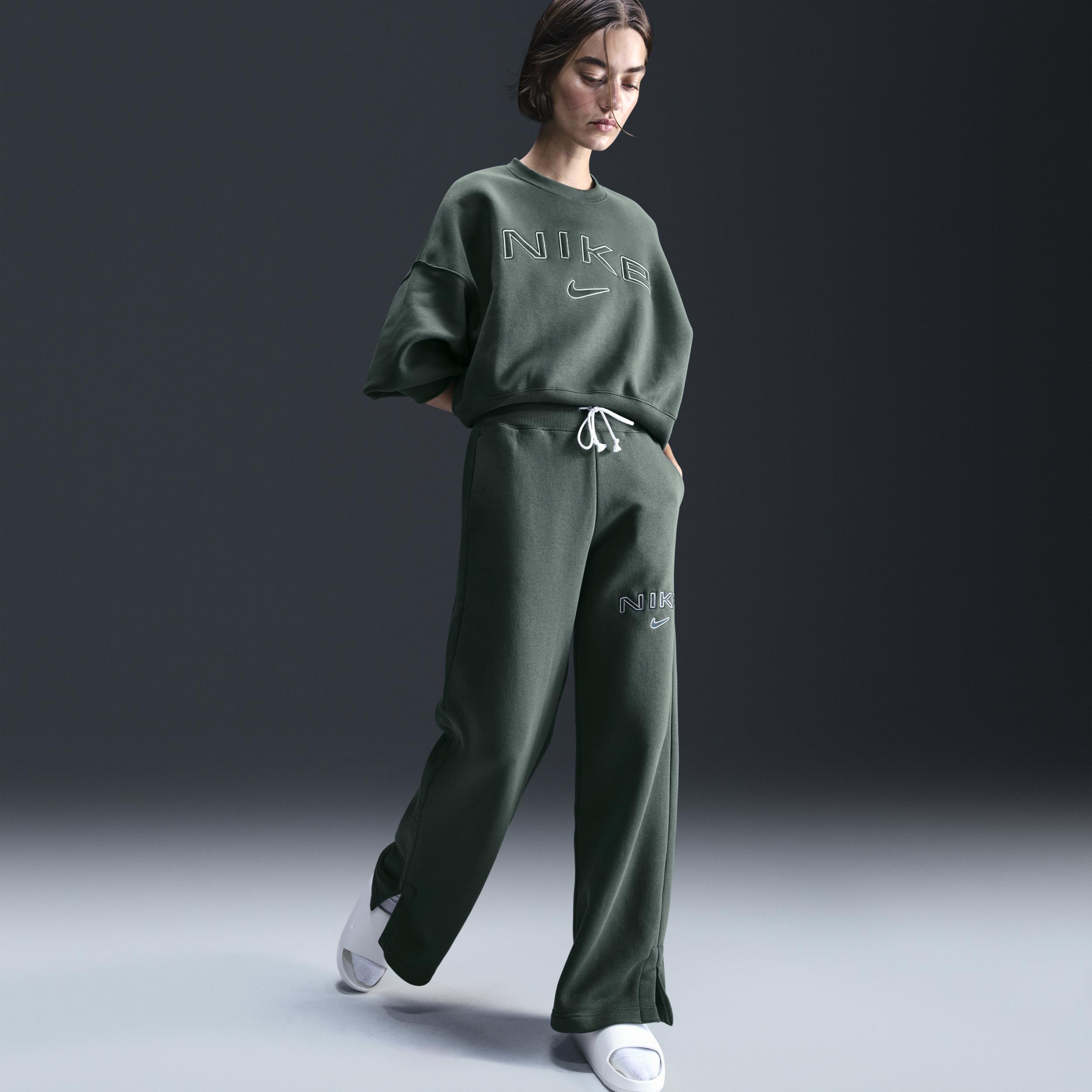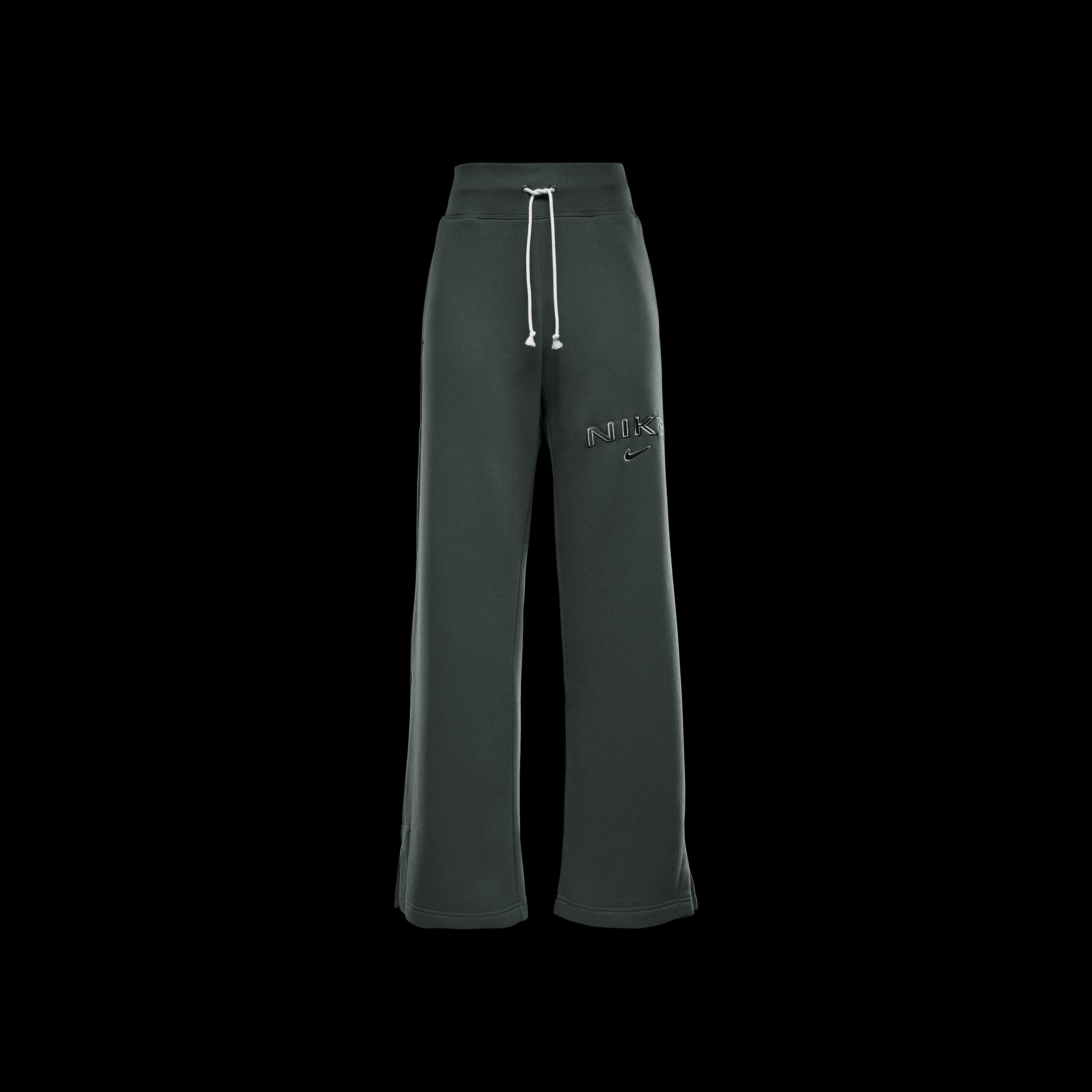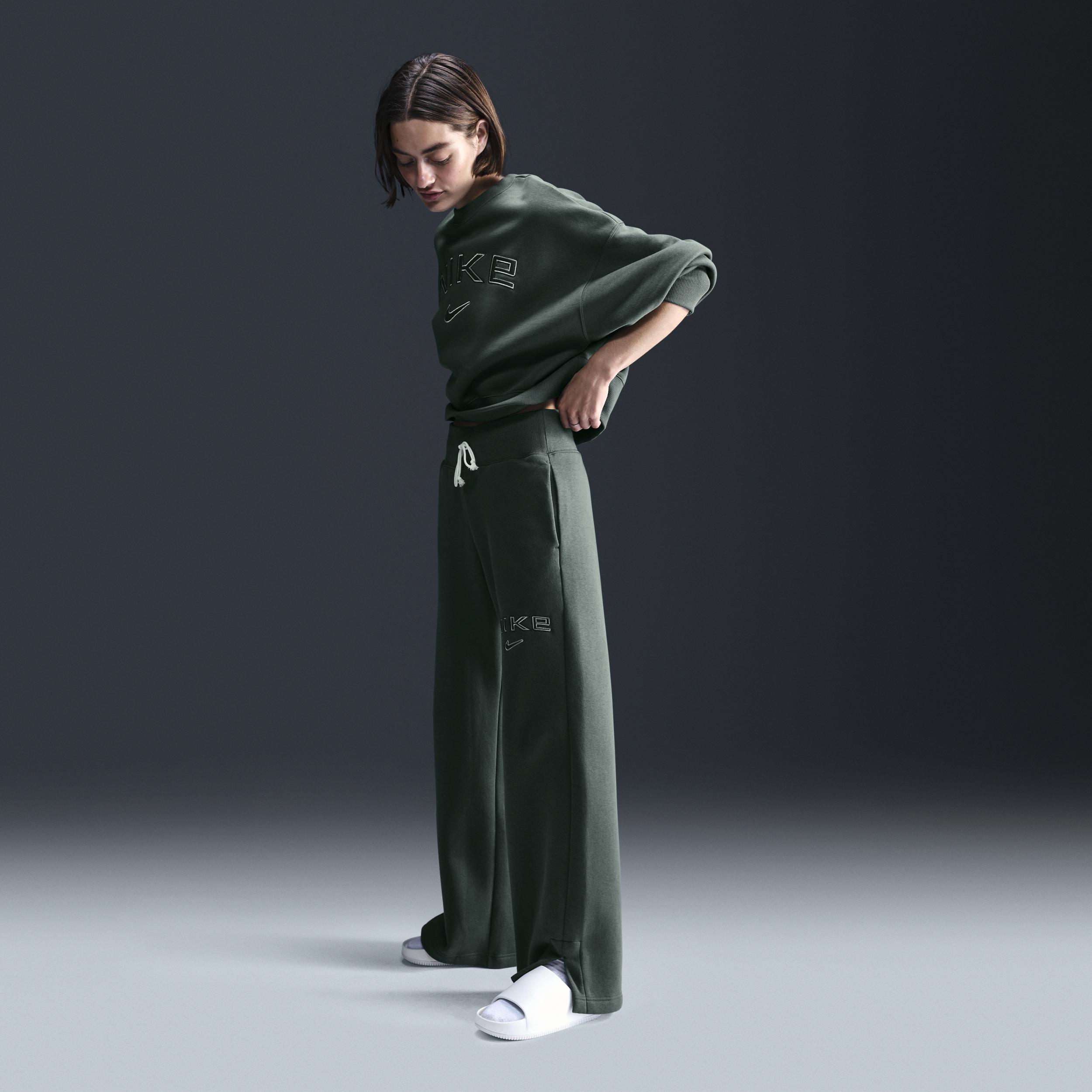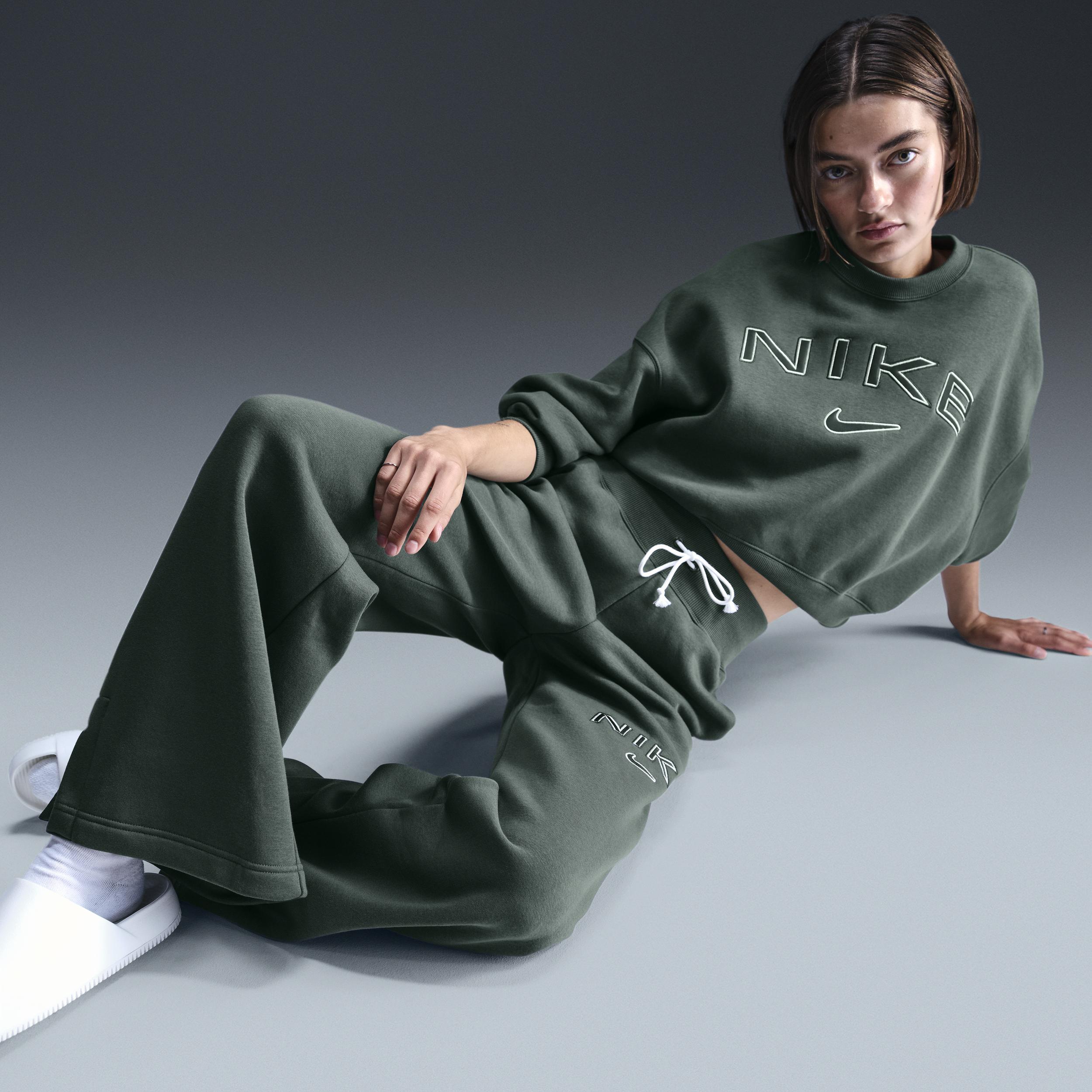 Grounded in style, comfort and versatility, meet our take on luxury loungewear. With a high-waisted fit and hem vents, these pants help keep you looking anything but basic while still feeling ultra cozy. Midweight brushed fleece holds its shape, and a wide ribbed waistband with a drawcord feels comfortably snug. Benefits:Our midweight brushed fleece feels extra soft on the inside and smooth on the outside, helping you stay cozy while keeping its structured shape. Elongated ribbing at the waist provides extra comfort and structure. Pockets provide quick storage for keys, phone and cold hands. [] Product Details:80% cotton/20% polyester. Metal grommets. Machine wash. Imported. Style: FV7684; Color: Vintage Green; Size: S; Gender: Female; Age Group: Adult | Nike Sportswear Phoenix Fleece Women's High-Waisted Wide-Leg Logo Pants in Green, Size: Small | FV7684-338