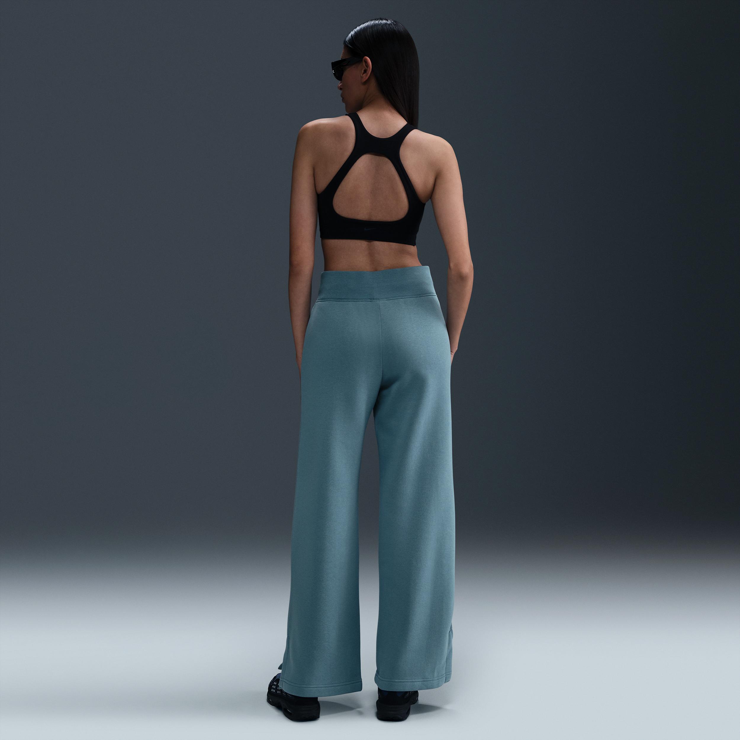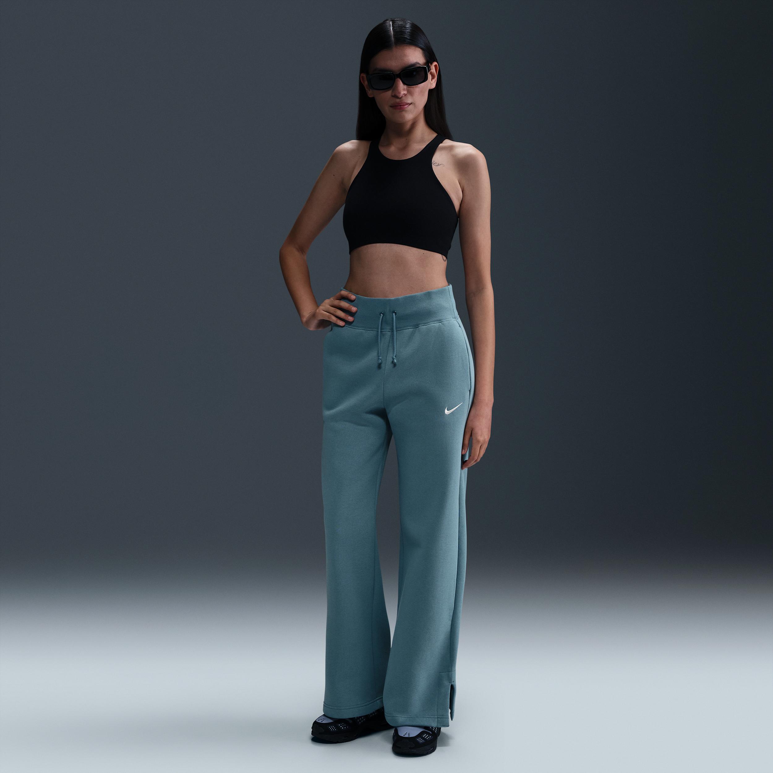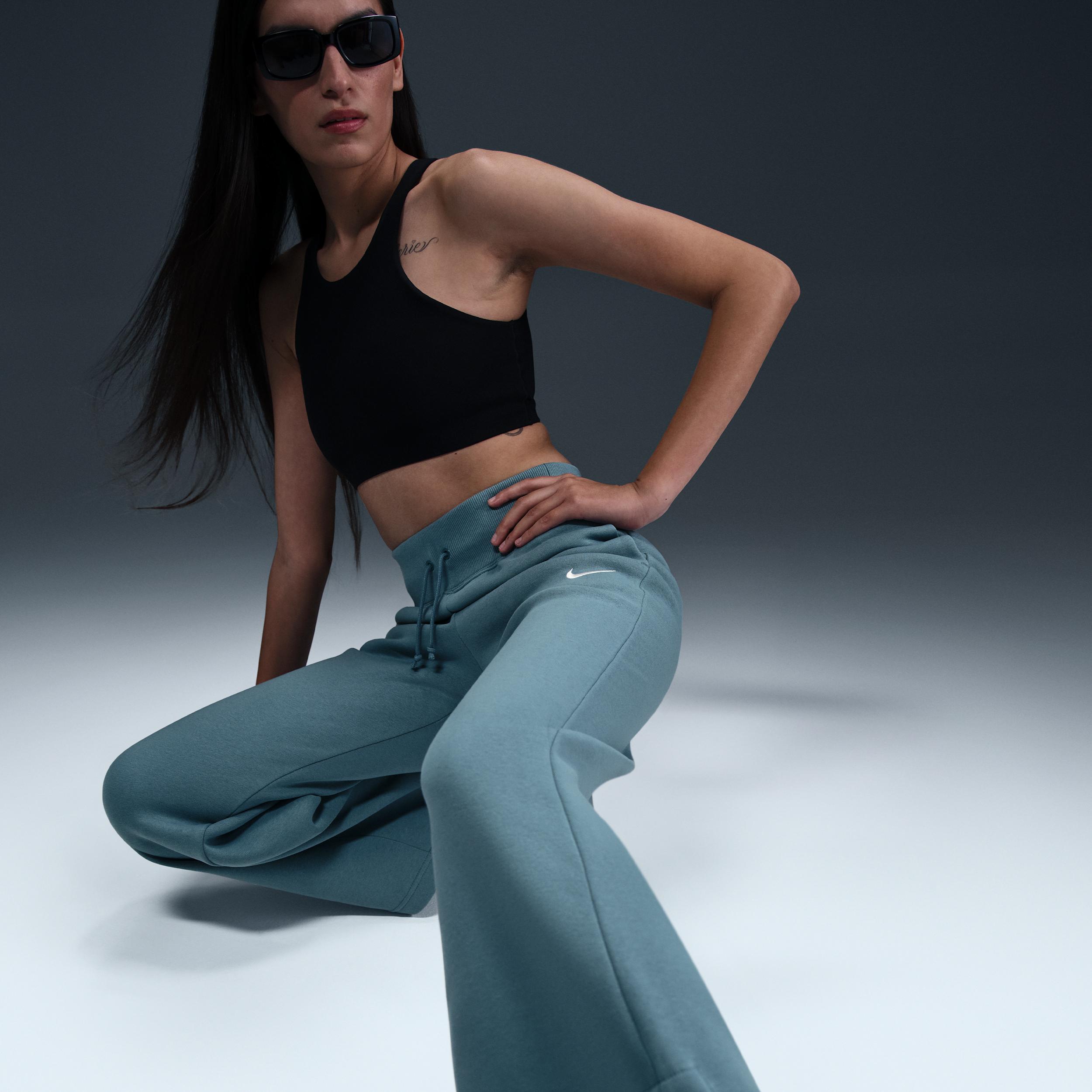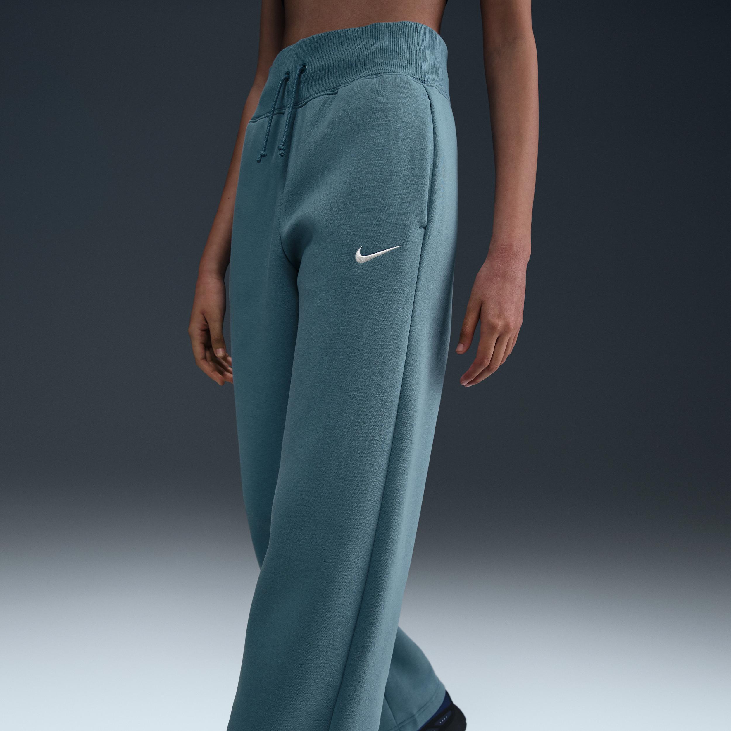 Grounded in style, comfort and versatility, meet our take on luxury loungewear. These high-waisted sweats make a statement with midweight brushed fleece in a full-length, wide-leg design. Soft yet structured, theyre anything but basic. Benefits:Our midweight brushed fleece feels extra soft on the inside and smooth on the outside, helping you stay cozy while keeping its structured shape. High-rise waistband with drawcord gives you a snug fit. Product Details:Side pockets. Elongated ribbing. Embroidered Swoosh logo. Body: 80% cotton/20% polyester. Machine wash. Imported. Style: DQ5615; Color: Smokey Blue/Sail; Size: S; Gender: Female; Age Group: Adult | Nike Sportswear Phoenix Fleece Womens High-Waisted Wide-Leg Sweatpants in Blue, Size: Small | DQ5615-006
