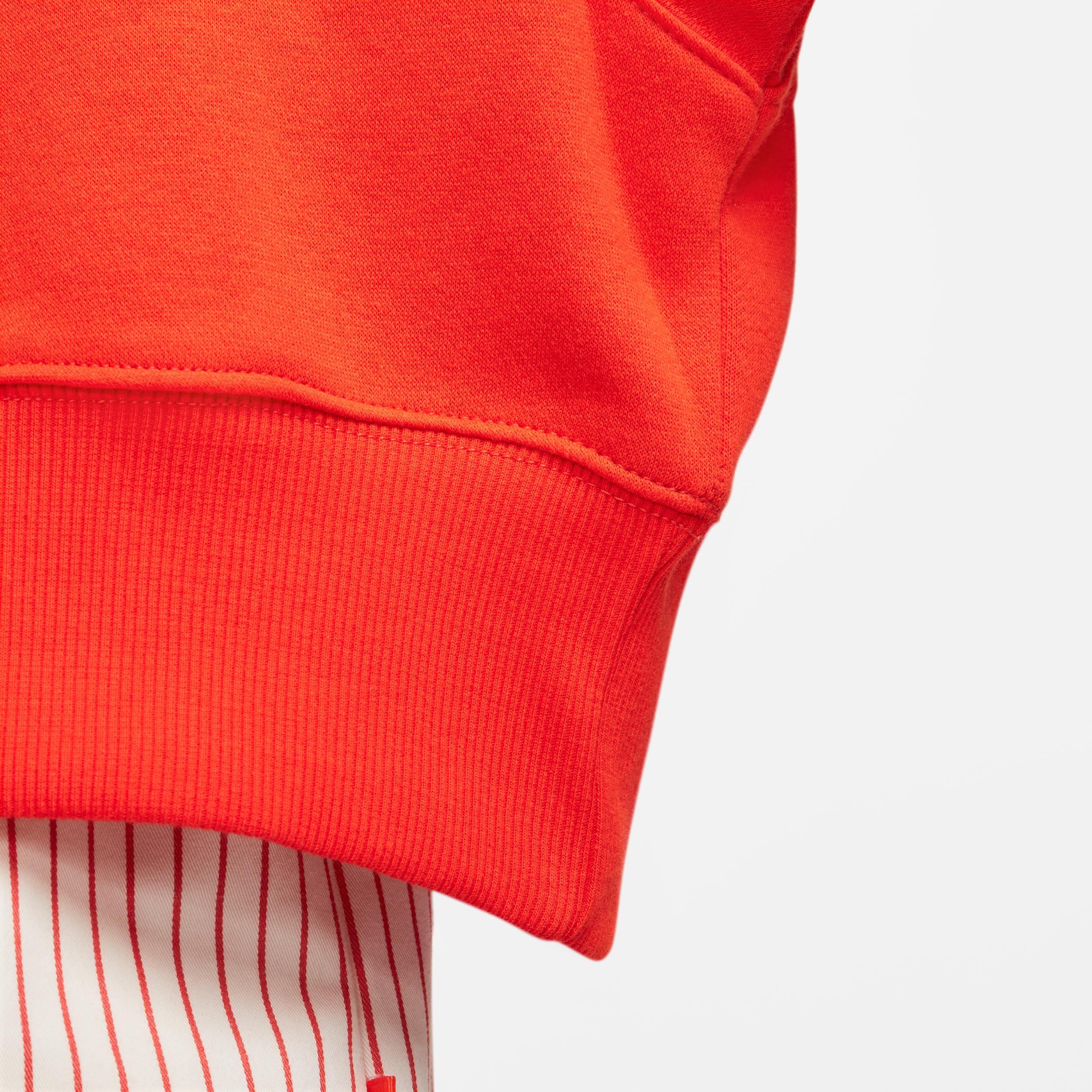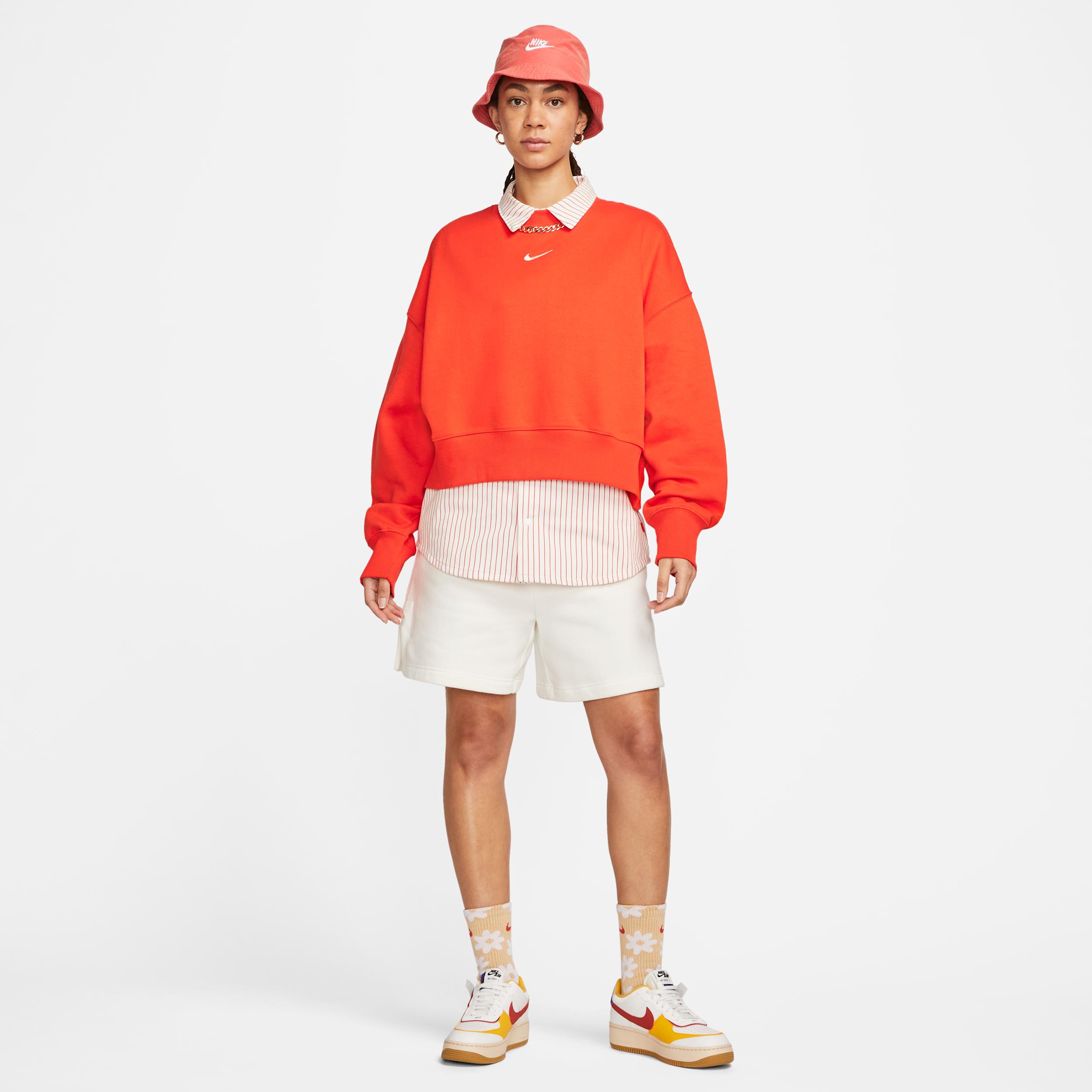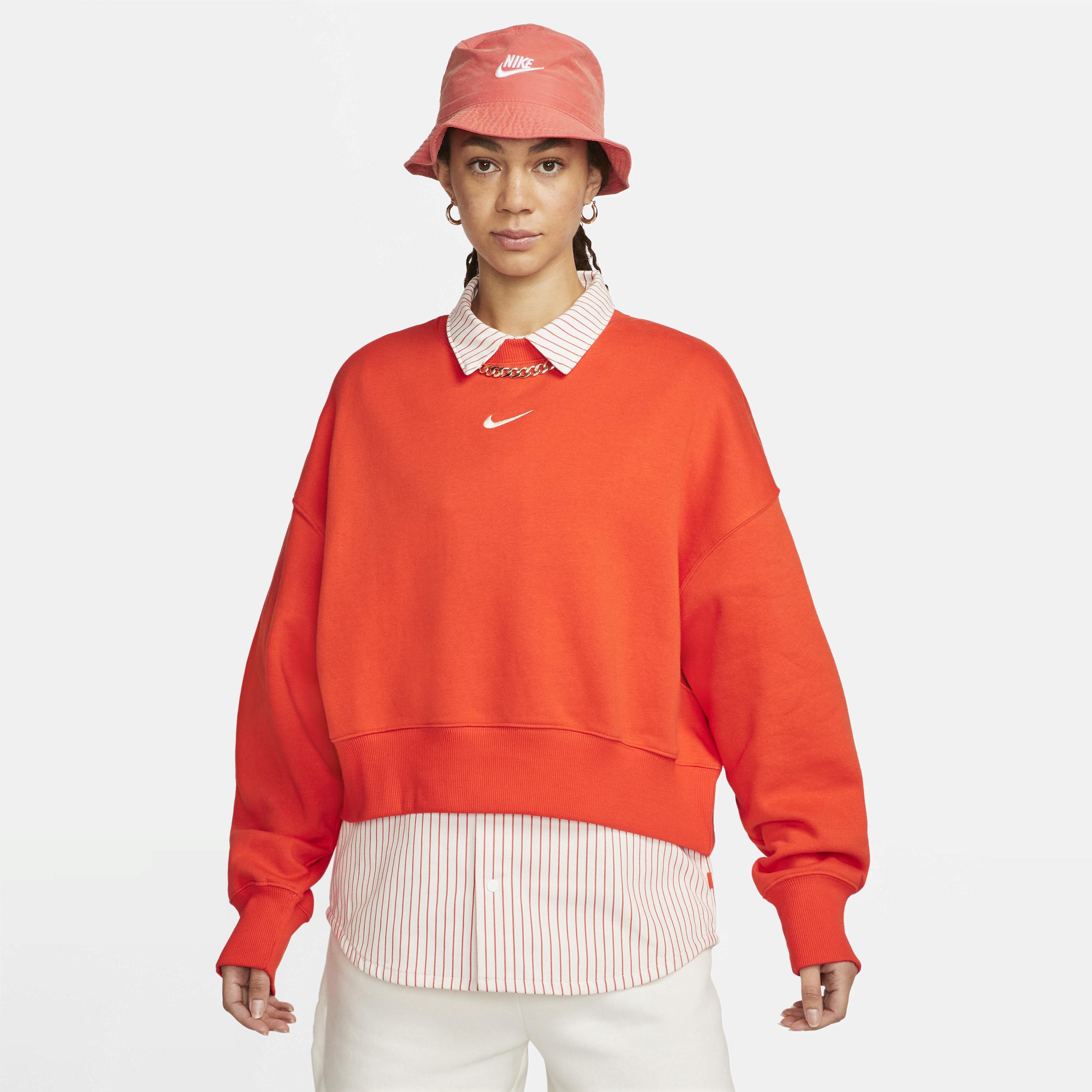 Rise up and transform your fleece wardrobe with strong cozy vibes. With a voluminous fit and exaggerated ribbing, this Phoenix Fleece sweatshirt gives you a look that's anything but basic. Benefits: Smooth on the outside and cozy on the inside, brushed fleece is our go-to sweatshirt material for colder temperatures. Elongated ribbing at the cuffs and hem provides extra comfort and structure. Product Details: 80% cotton/20% polyester. Embroidered Swoosh logo. Machine wash. Imported. Style: DQ5761; Color: Picante Red/Sail; Size: XL; Gender: Female; Age Group: Adult | Nike Sportswear Phoenix Fleece Women's Over-Oversized Crewneck Sweatshirt in Red, Size: XL | DQ5761-633