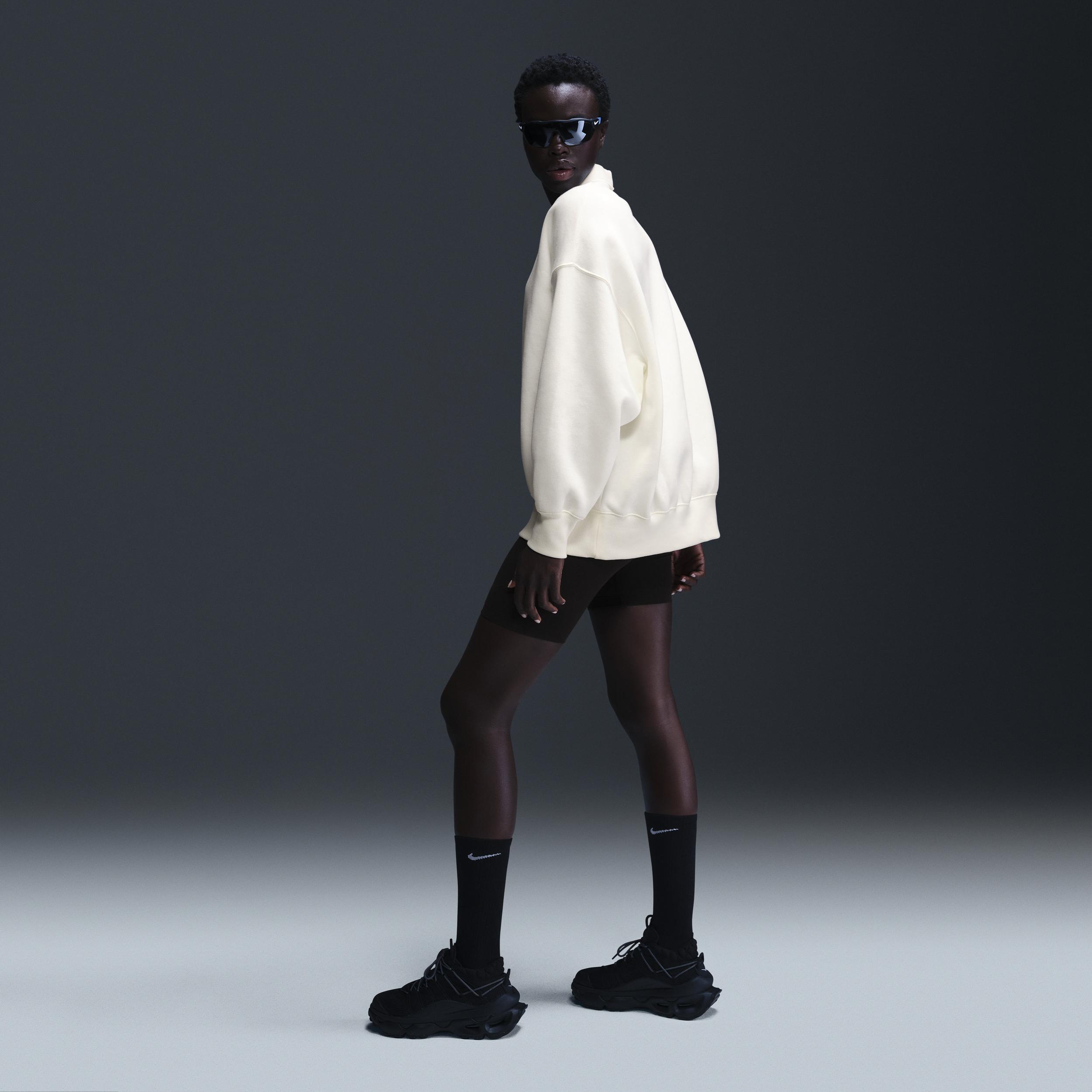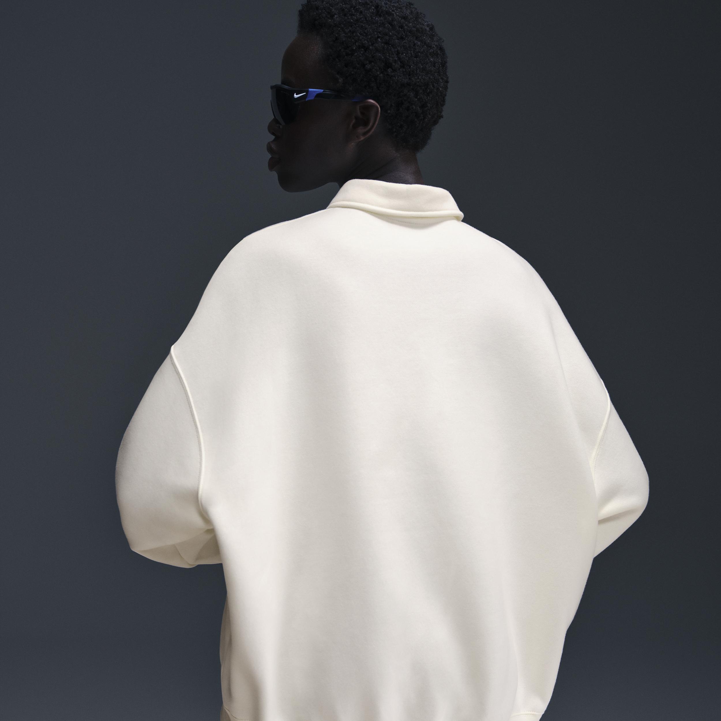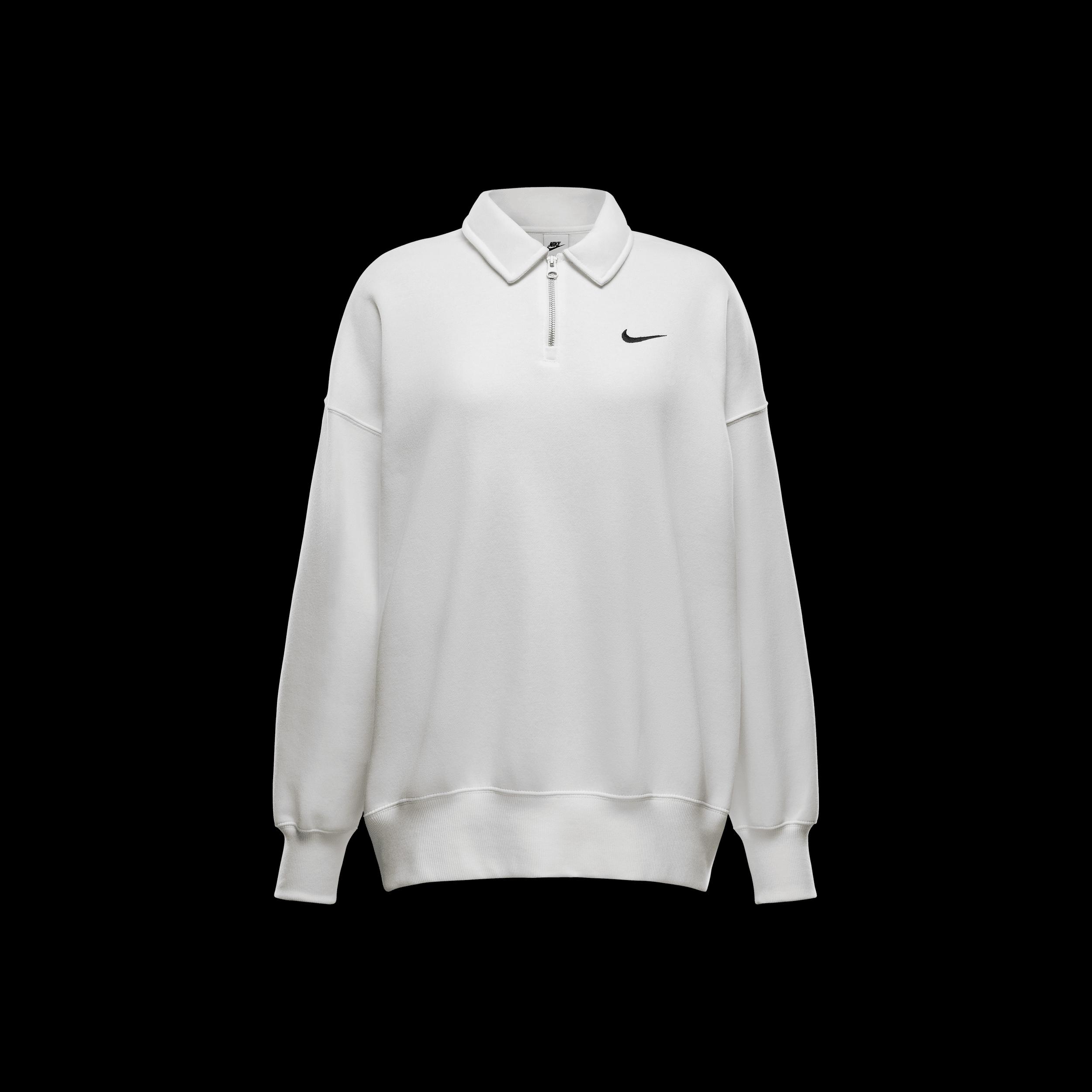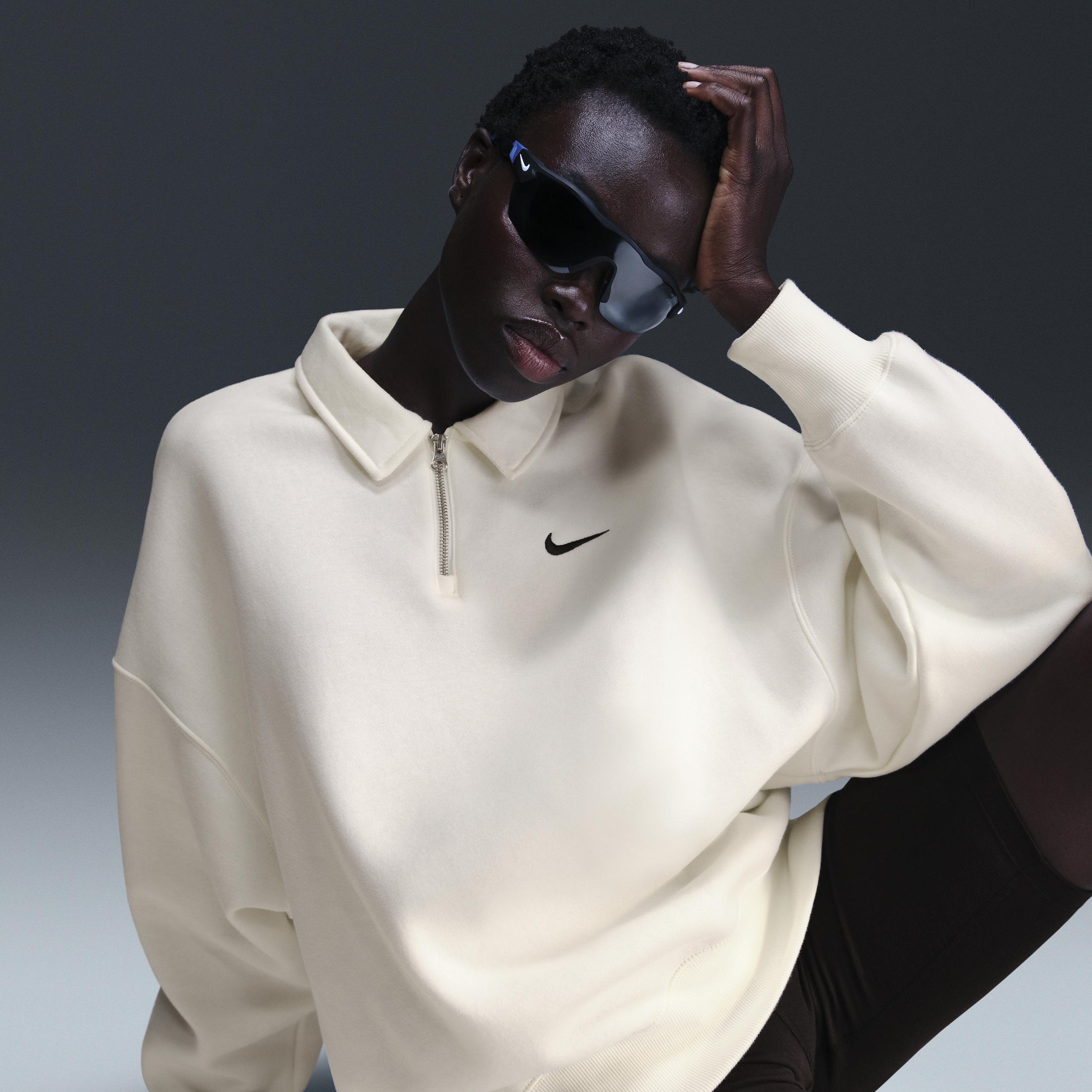 Grounded in style and comfort, meet this elevated take on a classic sweatshirt. Midweight brushed fleece feels soft and cozy while signature wide ribbing and a voluminous fit offer a stand-out look. Product Details:Body: 80% cotton/20% polyester. Rib: 97% cotton/3% spandex. 1/4-length zipper. Ribbed cuffs and hem. Embroidered Swoosh logo on left chest. Machine wash. Imported. Style: FZ3207; Color: Sail/Black; Size: L; Gender: Female; Age Group: Adult | Nike Sportswear Phoenix Fleece Women's Oversized 1/4-Zip Polo in White, Size: Large | FZ3207-133