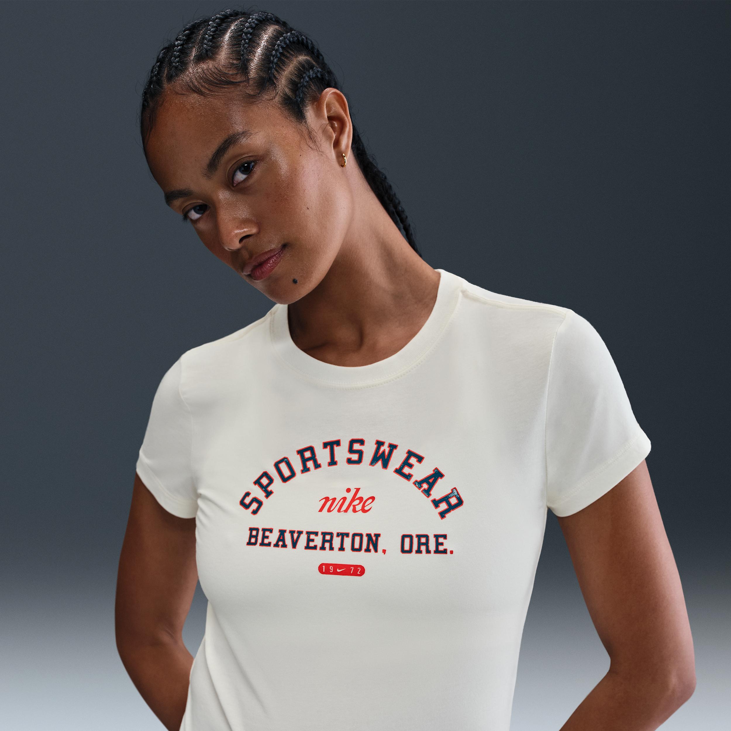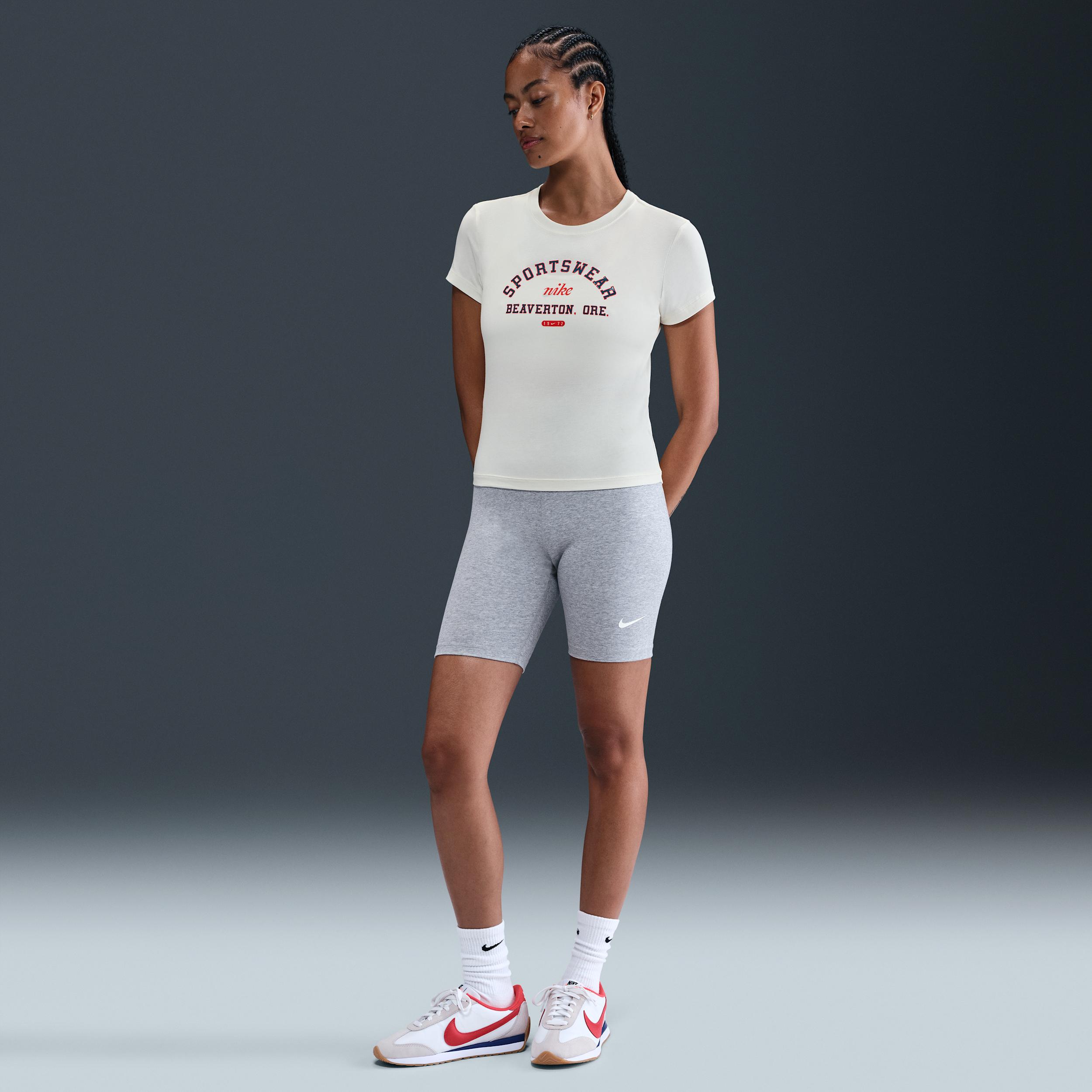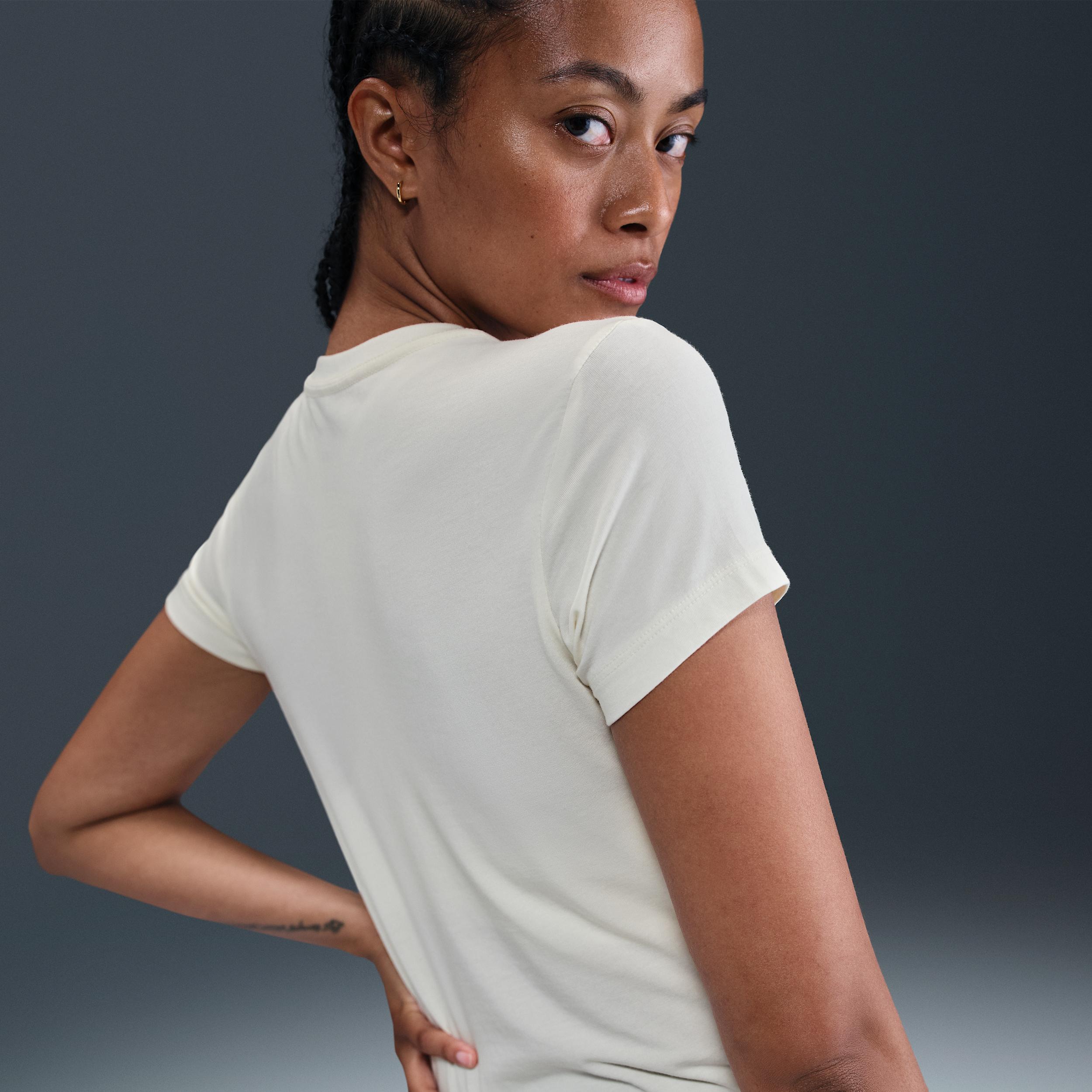 Made for casual comfort, this tight tee uses supersoft and stretchy jersey fabric. [] Product Details:48% modal/46% cotton/6% spandex. Machine wash. Imported. Style: HV4974; Color: Pale Ivory; Size: XL; Gender: Female; Age Group: Adult | Nike Sportswear Phoenix Women's Slim Short-Sleeve T-Shirt in Brown, Size: XL | HV4974-110