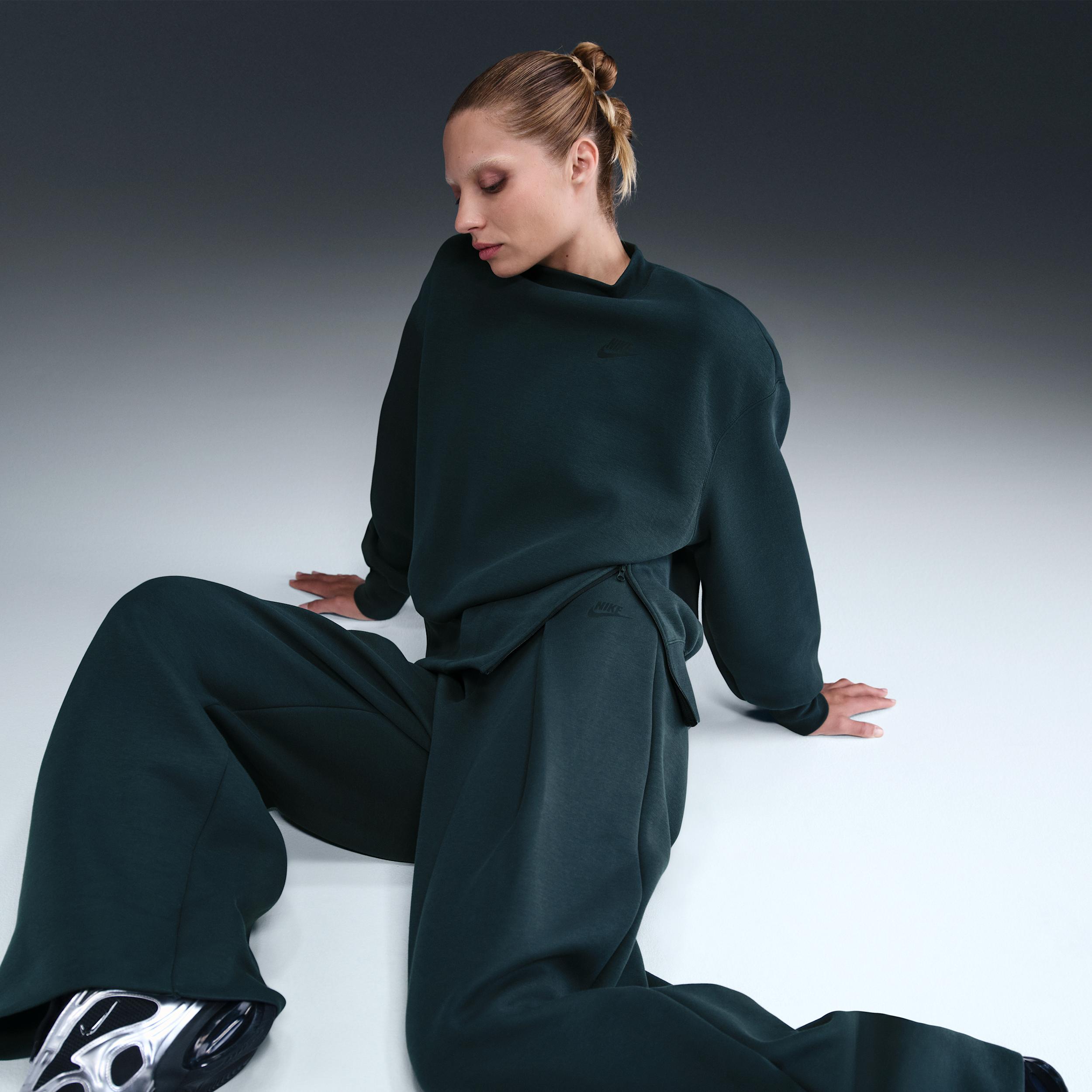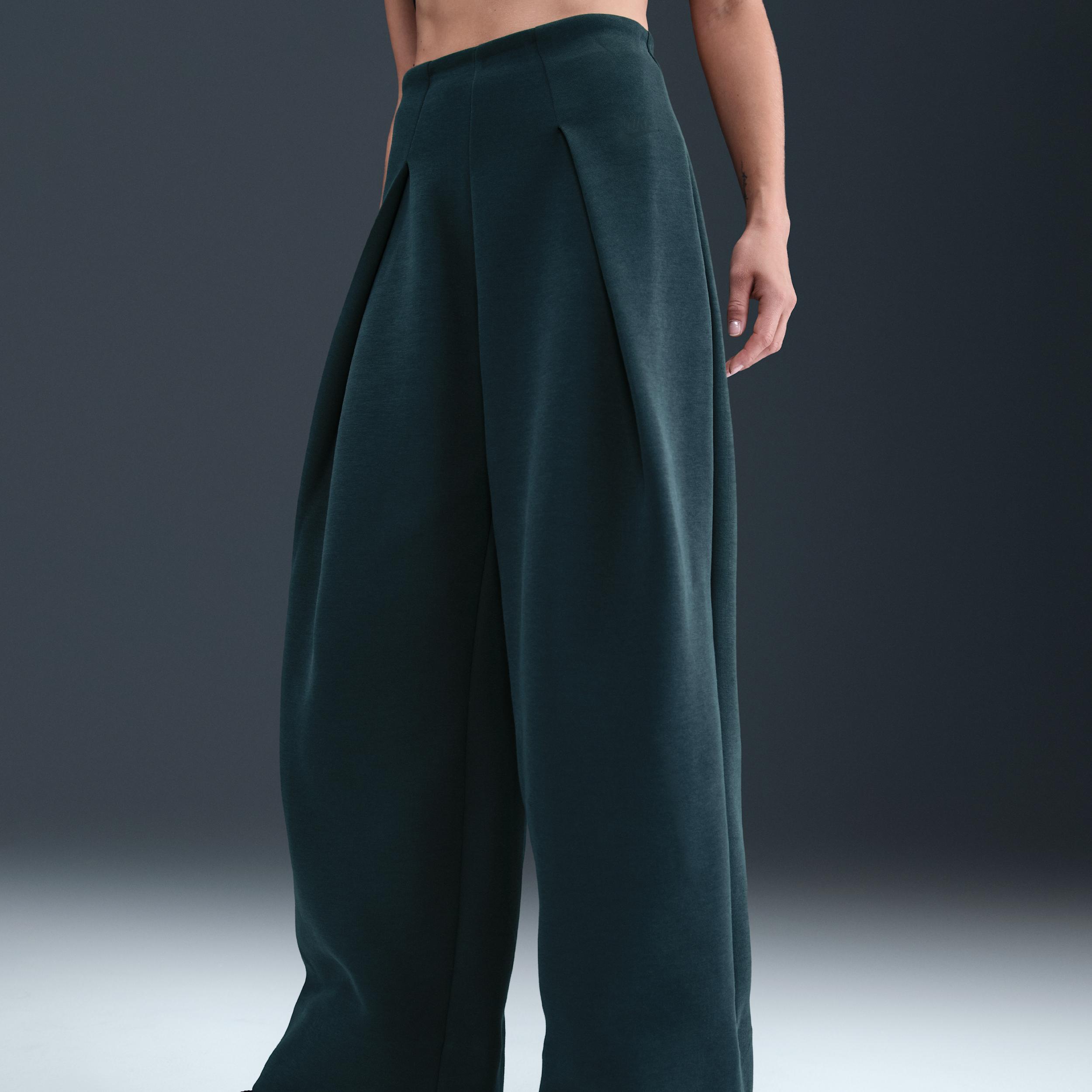 Made with premium, lightweight fleece that's smooth both inside and out, these high-waisted, pleated pants update an office staple. Benefits:Side-seam zipper keeps the front looking tailored and smooth. Ribbed inset at back of waist helps keep the fit feeling just right. [] Product Details:53% cotton/47% polyester. Printed Futura logo. Bonded hem. Bonded waistband. Machine wash. Imported. Style: FV8052; Color: Seaweed/Black; Size: M; Gender: Female; Age Group: Adult | Nike Sportswear Tech Fleece Women's High-Waisted Pleated Pants in Green, Size: Medium | FV8052-390