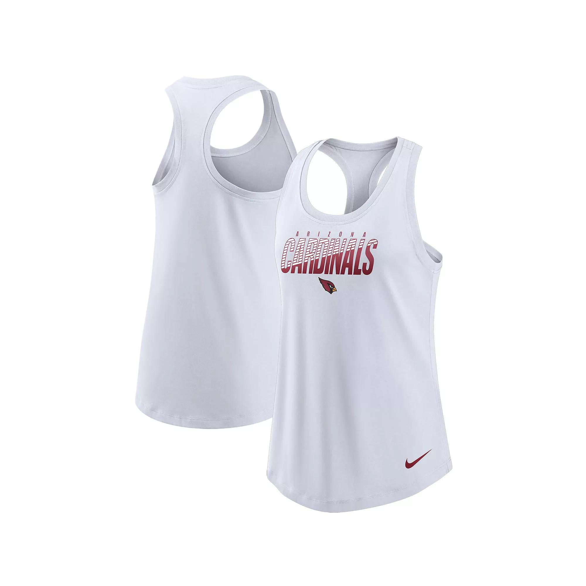 Support your favorite team in the NFL while keeping cool and looking great with this Arizona Cardinals Light Impact tank top from Nike. Its stellar design shows everyone which team rules the gridiron. The racerback design with Dri-FIT technology also fits comfortably against your shoulders while providing maximum breathability so you can keep on cheering for all four quarters of Arizona Cardinals action.Support your favorite team in the NFL while keeping cool and looking great with this Arizona Cardinals Light Impact tank top from Nike. Its stellar design shows everyone which team rules the gridiron. The racerback design with Dri-FIT technology also fits comfortably against your shoulders while providing maximum breathability so you can keep on cheering for all four quarters of Arizona Cardinals action.PRODUCT FEATURESMaterial: 57% Cotton/43% PolyesterDri-FIT technology wicks away moistureRounded hemScreen print graphicsScoop neckRacerbackMachine washOfficially licensedImportedBrand: Nike Size: XS. Color: White. Gender: female. Age Group: adult.