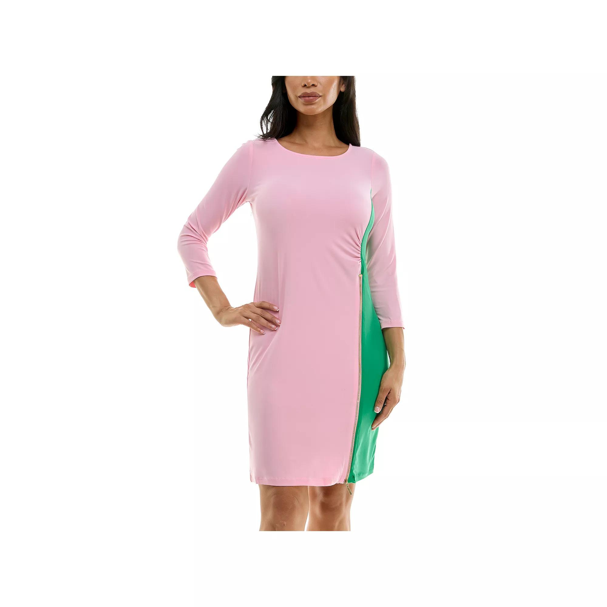 Add a touch of flare to your wardrobe with this women's Nina Leonard colorblock faux-wrap dress.Click on this WOMEN'S GUIDE to find the perfect fit and more!Add a touch of flare to your wardrobe with this women's Nina Leonard colorblock faux-wrap dress. Click on this WOMEN'S GUIDE to find the perfect fit and more!FEATURES Ruched waist and zipper detail Faux-wrap silhouette No closure - pullover styling 3/4-length sleeves Unlined ScoopneckFIT & SIZING 36-in. length from shoulder to hem Mini length hits at the thighFABRIC & CARE Polyester, spandex Machine wash Imported Size: Small. Color: Pink Green. Gender: female. Age Group: adult.