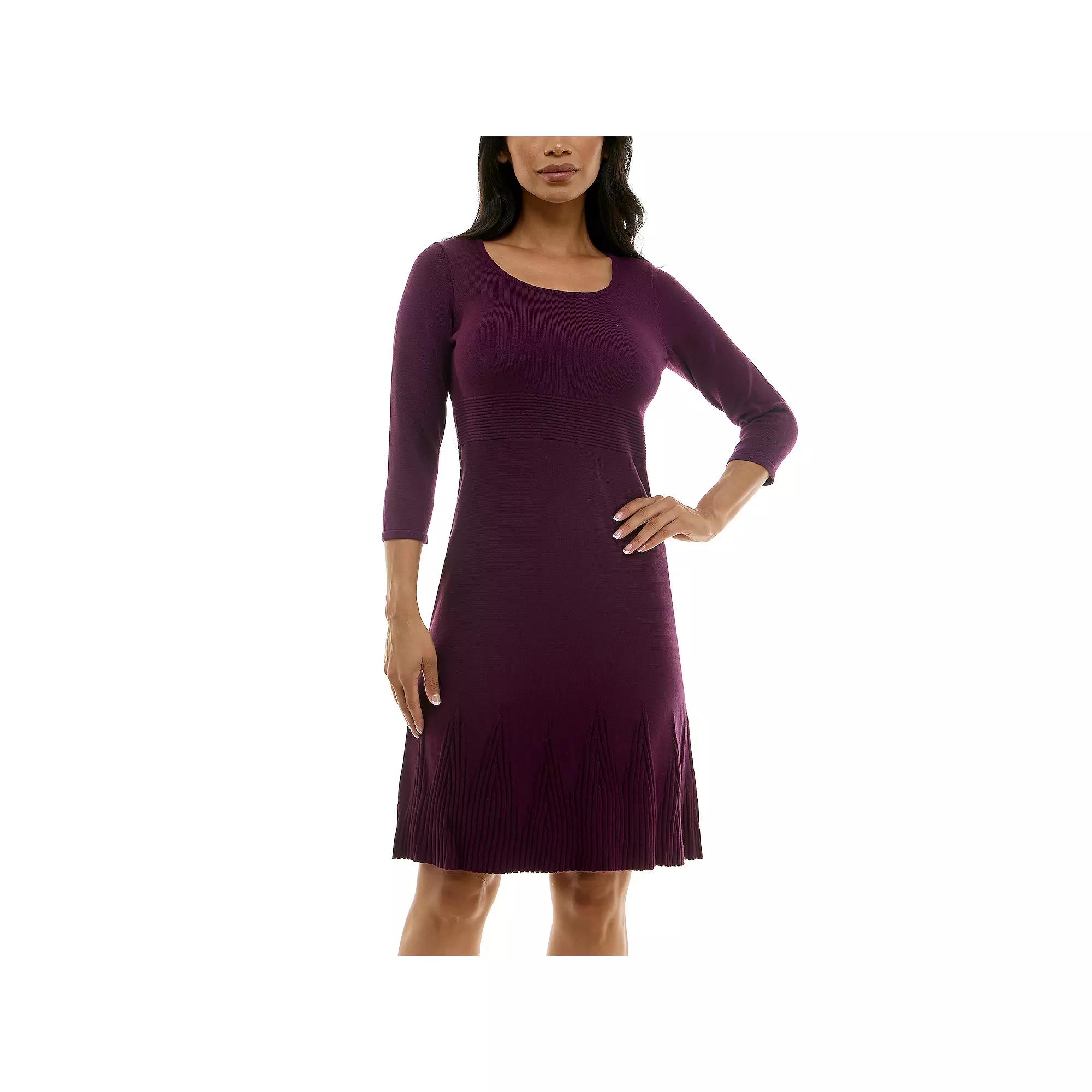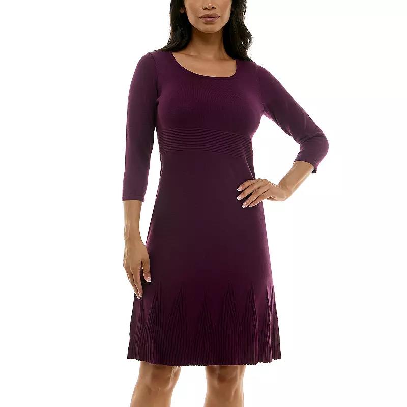 Upgrade your wardrobe with this Womens Nina Leonard Elbow Sleeve Fit-&-Flare Dress. Click on this WOMENS GUIDE to find the perfect fit and more! Upgrade your wardrobe with this Womens Nina Leonard Elbow Sleeve Fit-&-Flare Dress. Click on this WOMENS GUIDE to find the perfect fit and more! FEATURES Scoopneck Elbow sleeves Trapeze silhouette Soft fabric No closure - pullover styling Ribbed waistband & hemFIT & SIZING 40-in. length from shoulder to hem Mini length hits at the thighFABRIC & CARE Rayon, polyester Machine wash Imported Size: Small. Color: Black Plum. Gender: female. Age Group: adult.