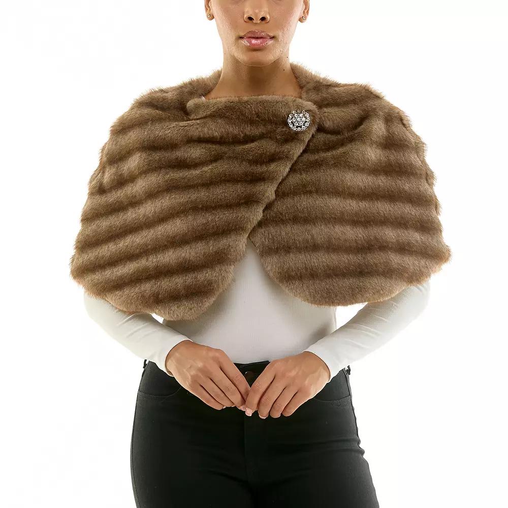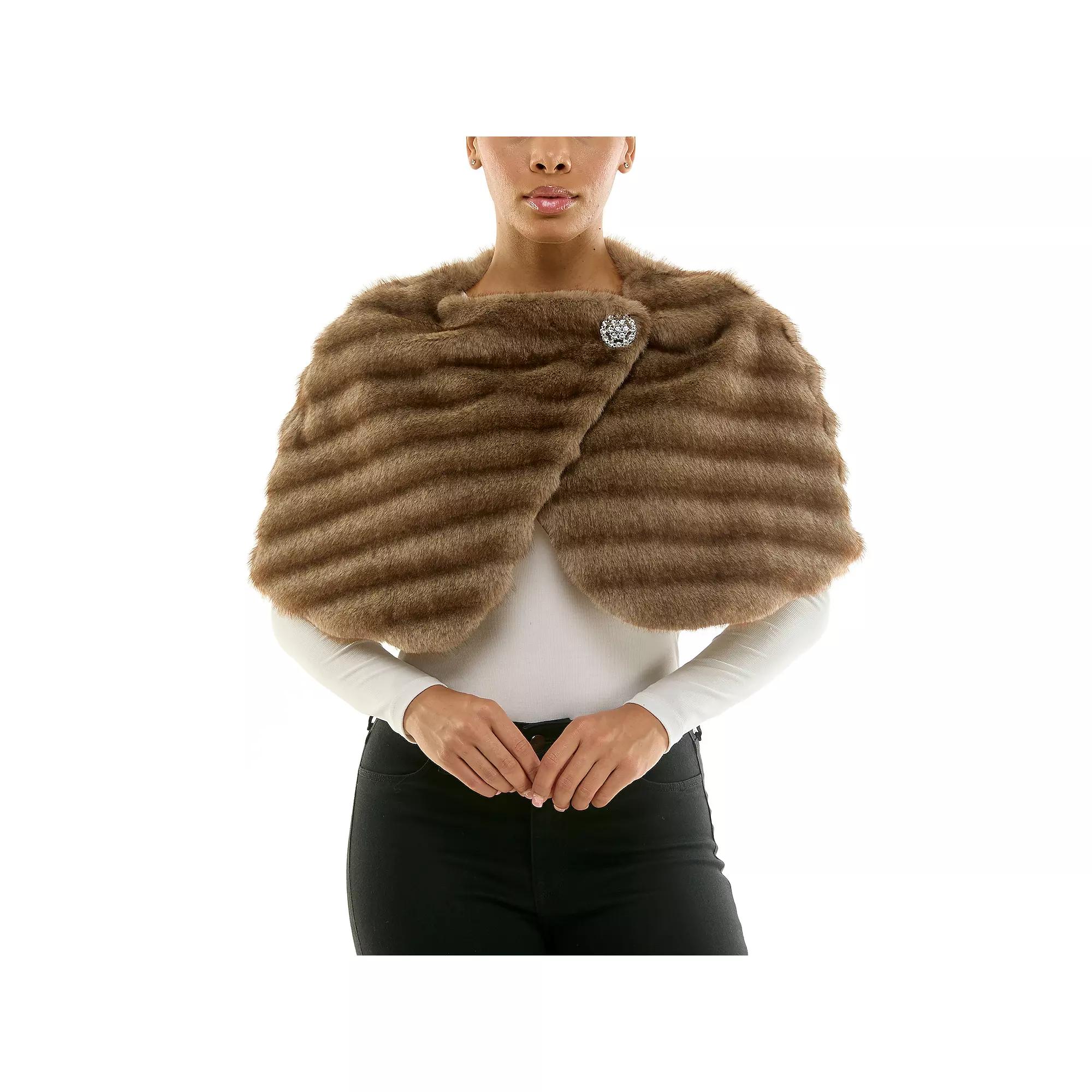Wrap yourself in the luxurious charm of this stylish caplet, featuring a ribbed fur design that feels as fabulous as it looks. The stunning rhinestone shank button adds a touch of sparkle, making it the perfect accessory for those moments when you want to shine brighter than your favorite dessert at a dinner party. Click on this WOMEN'S GUIDE to find the perfect fit and more! - https://www.kohls.com/feature/womens-fit-guide.jsp. FEATURES: Soft and fluffy feel, Ribbed fur design with rhinestone shank button. FIT & SIZE: True to size, 17-in. length from shoulder to hem. MATERIAL & CARE: Polyester, Fully lined, Product contains faux fur, Machine wash. DETAILS: Snap closure, Imported. Size: X Large. Color: Brown. Gender: female. Age Group: adult.