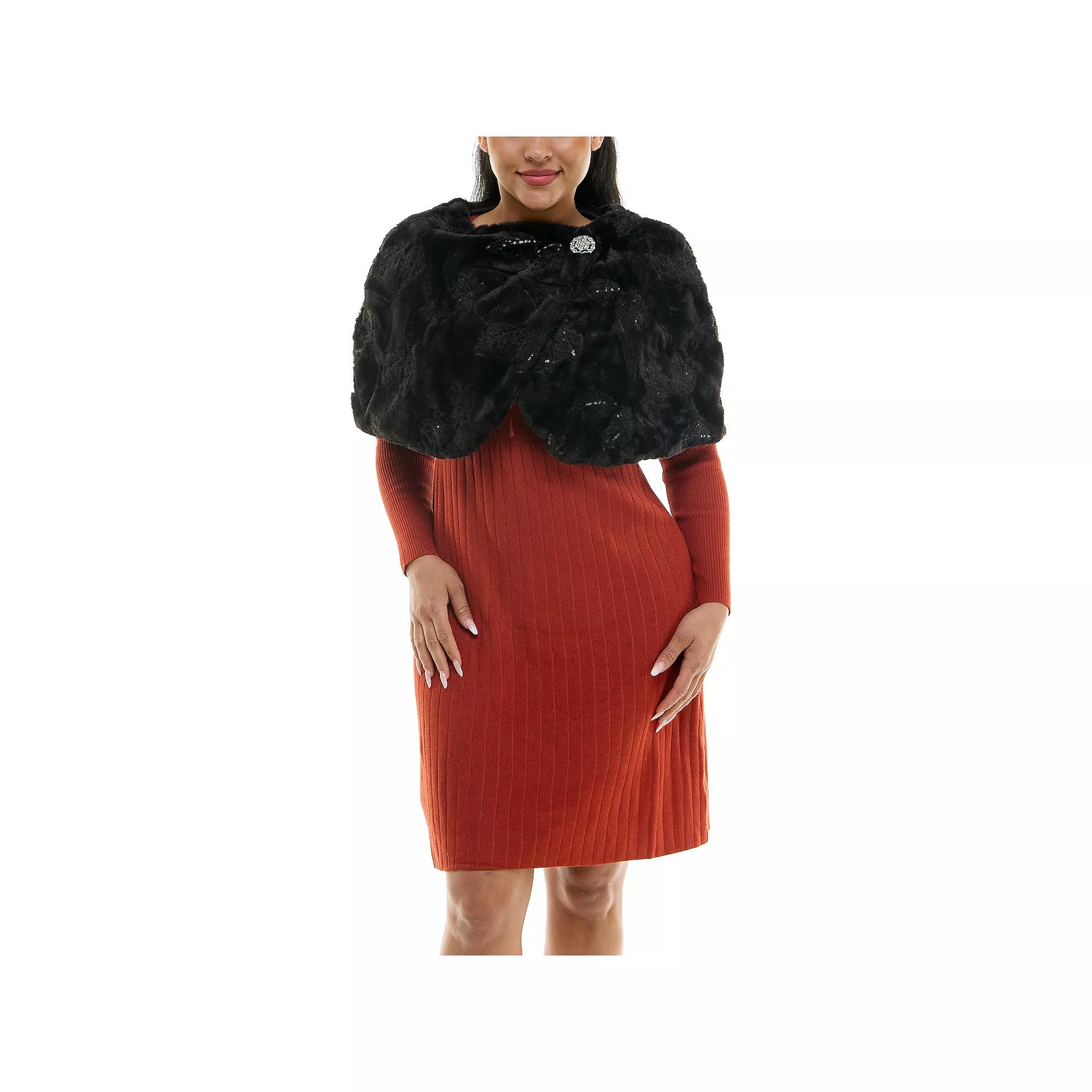 This women's faux-fur wrap-over stripe capelet from Nina Leonard is a perfect added layer to bring your look together in a fashionable way. Click on this WOMEN'S GUIDE to find the perfect fit and more! - https://www.kohls.com/feature/womens-fit-guide.jsp. FEATURES: 1-button front with crystal closure, Short sleeves, Soft fabric construction, Fully lined. FIT & SIZING: 16 3/4-in. length from shoulder to hem, True to size. FABRIC & CARE: Polyester, Lining: polyester, Machine wash delicate and tumble dry low, Imported. Size: Medium. Color: Black. Gender: female. Age Group: adult. Material: KNIT.