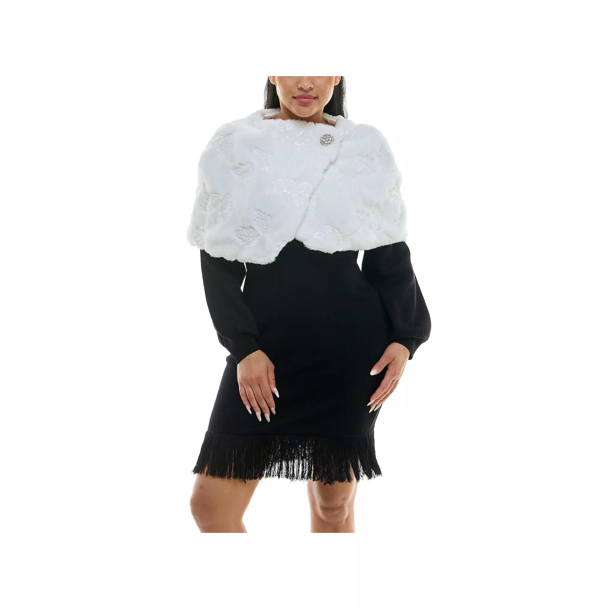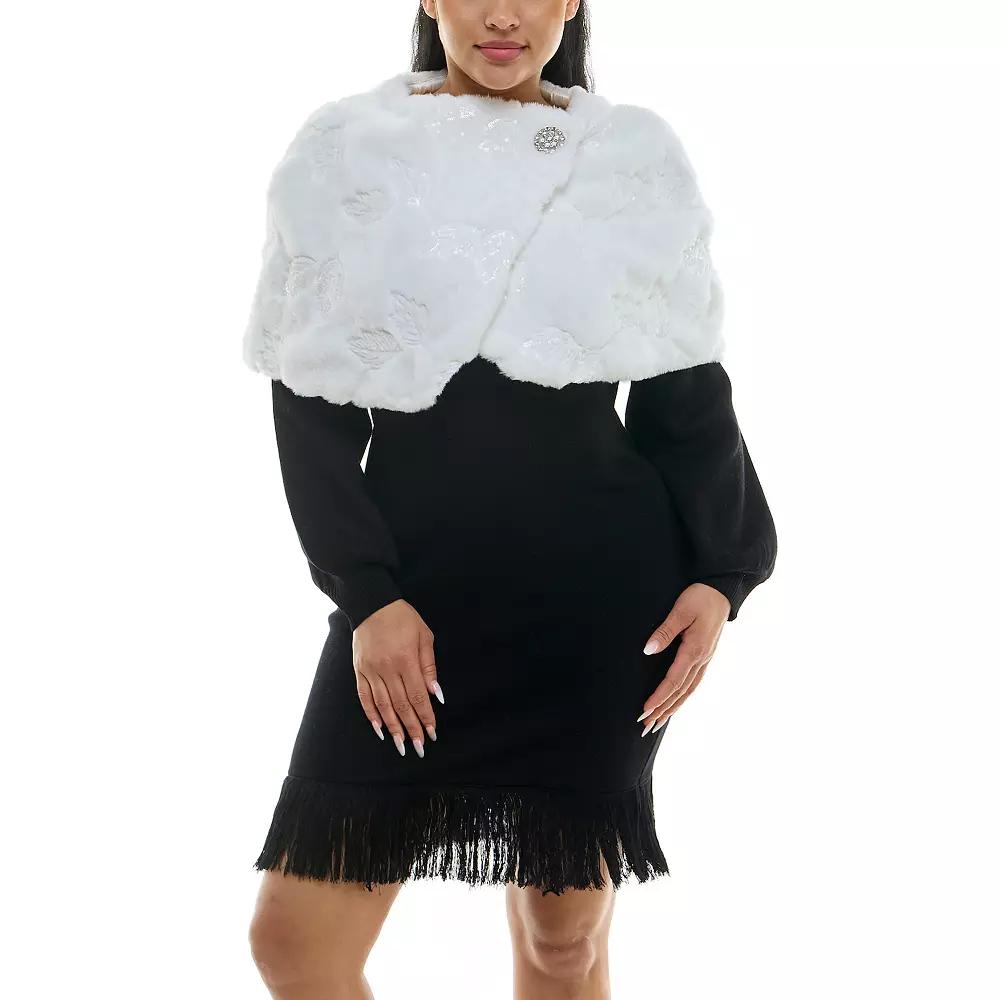 This womens faux-fur wrap-over stripe capelet from Nina Leonard is a perfect added layer to bring your look together in a fashionable way.Click on this WOMENS GUIDE to find the perfect fit and more! This womens faux-fur wrap-over stripe capelet from Nina Leonard is a perfect added layer to bring your look together in a fashionable way. Click on this WOMENS GUIDE to find the perfect fit and more! FEATURES 1-button front with crystal closure Short sleeves Soft fabric construction Fully linedFIT & SIZING 16 3/4-in. length from shoulder to hem True to sizeFABRIC & CARE Polyester Lining: polyester Machine wash delicate and tumble dry low Imported Size: Medium. Color: Black. Gender: female. Age Group: adult.
