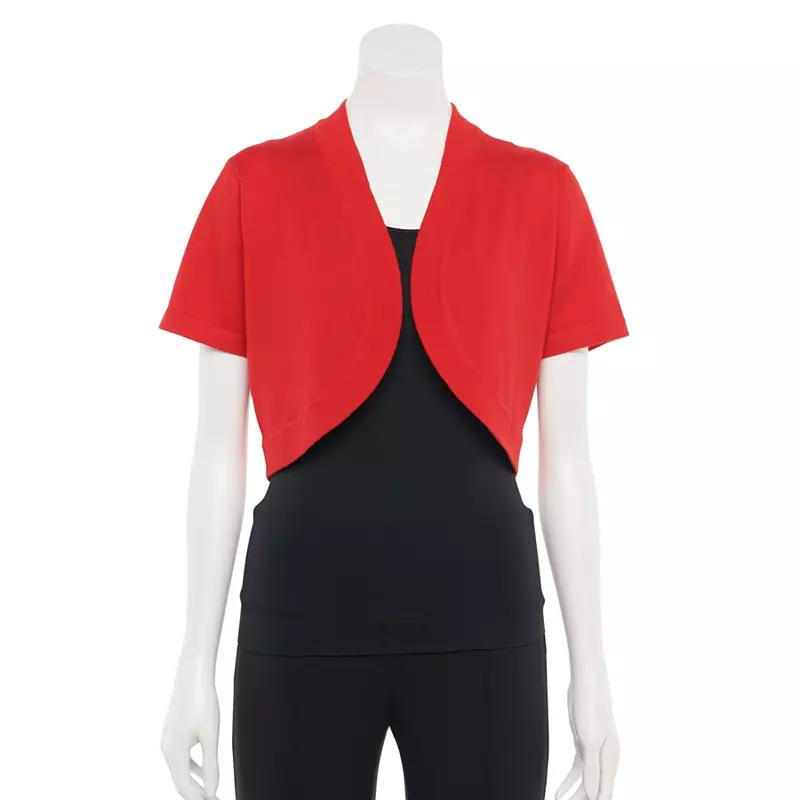 Top off any outfit with this womens Nina Leonard crop bolero.Click on this WOMENS GUIDE to find the perfect fit and more! Open front Short sleevesFIT & SIZING Cropped cutFABRIC & CARE Rayon, polyester Machine wash - Delicate Imported Size: Medium. Color: Red. Gender: female. Age Group: adult. Pattern: Solid.