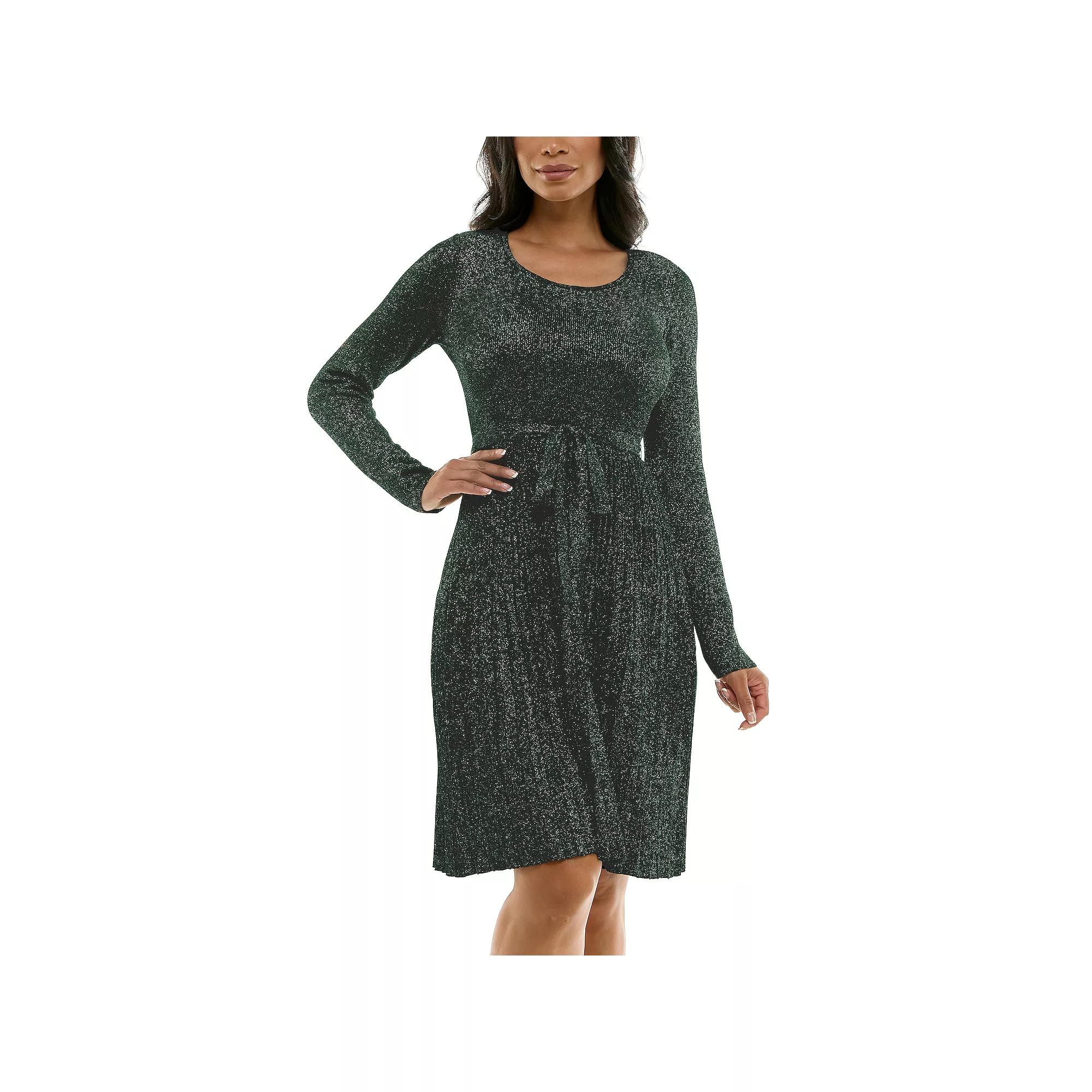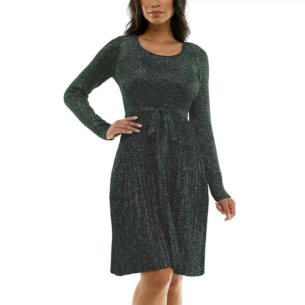 Effortlessly elevate your everyday look with this Women's Nina Leonard Pleat Glitter Knit Dress.Click on this WOMEN'S GUIDE to find the perfect fit and more! Effortlessly elevate your everyday look with this Women's Nina Leonard Pleat Glitter Knit Dress.Click on this WOMEN'S GUIDE to find the perfect fit and more! FEATURES Long sleeve round neck fit and flare pleat skirt glitter knit dress with self sash Sweaterdress styling No closure - pullover styling Long sleeves Coordinating sash Unlined CrewneckFIT & SIZING 39 1/2-in. length from shoulder to hem Midi length hits below the kneeFABRIC & CARE Rayon, polyester Machine wash delicate Imported Size: Small. Color: Rich Pine Black. Gender: female. Age Group: adult.