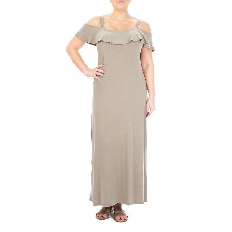 Add a trendy look to your summer wardrobe with this womens Nina Leonard cold-shoulder maxi dress. Modern printCold-shoulder designShort flutter sleevesWrinkle-resistant fabric blendUnlinedFIT & SIZING55-in. approximate length from shoulder to hemMaxi designPull-on designFABRIC & CAREPolyester, spandexMachine washImported Size: Small. Color: Brown. Gender: female. Age Group: adult.
