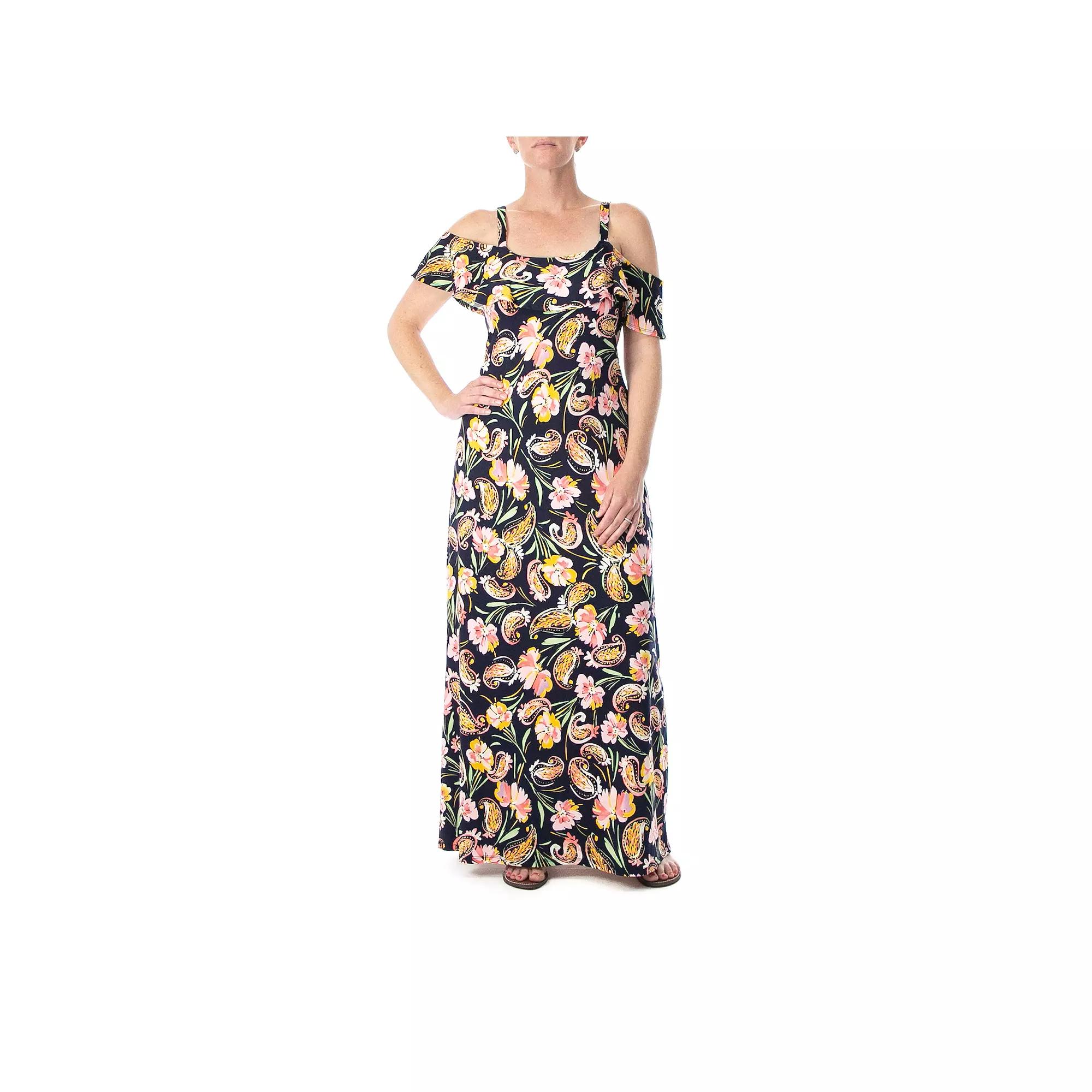 Add a trendy look to your summer wardrobe with this womens Nina Leonard cold-shoulder maxi dress. Click on this WOMENS GUIDE to find the perfect fit and more!Modern printCold-shoulder designShort flutter sleevesWrinkle-resistant fabric blendUnlinedFIT & SIZING55-in. approximate length from shoulder to hemMaxi designPull-on designFABRIC & CAREPolyester, spandexMachine washImported Size: Medium. Color: Navy. Gender: female. Age Group: adult. Pattern: Solid.