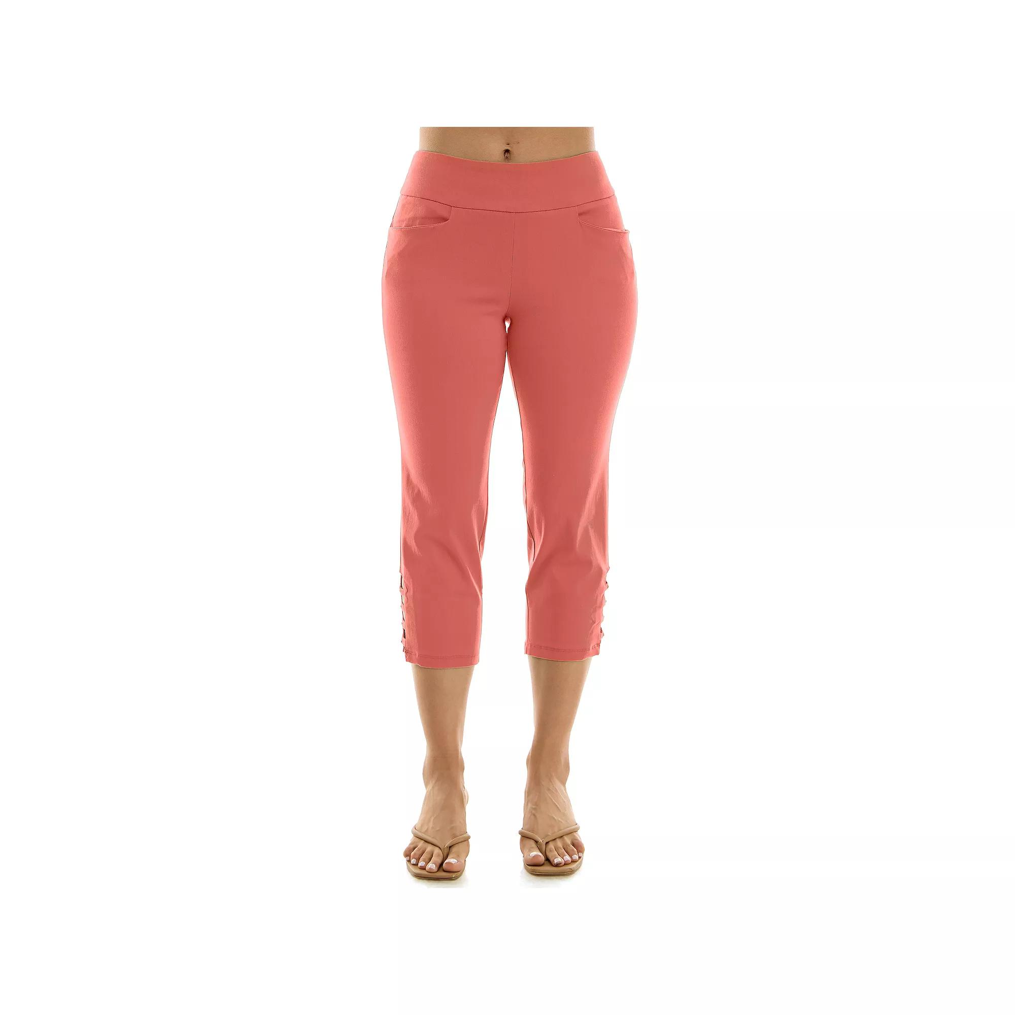 These Nina Leonard Pull-On Crop Pants are highly fashionable, with a bar detail and crystal studs at the hemline -- making for an effortlessly chic accent to any outfit.Click on this WOMEN'S GUIDE to find the perfect fit and more! FEATURES 2 pockets Pull-on UnlinedFIT & SIZING 22 1/2-in inseam Wide 14 1/2-in leg opening Midrise sits on the high hip Relaxed fit through the hip and thigh Elastic waistbandFABRIC & CARE Polyester, spandex Imported Size: X Large. Color: Guava. Gender: female. Age Group: adult.