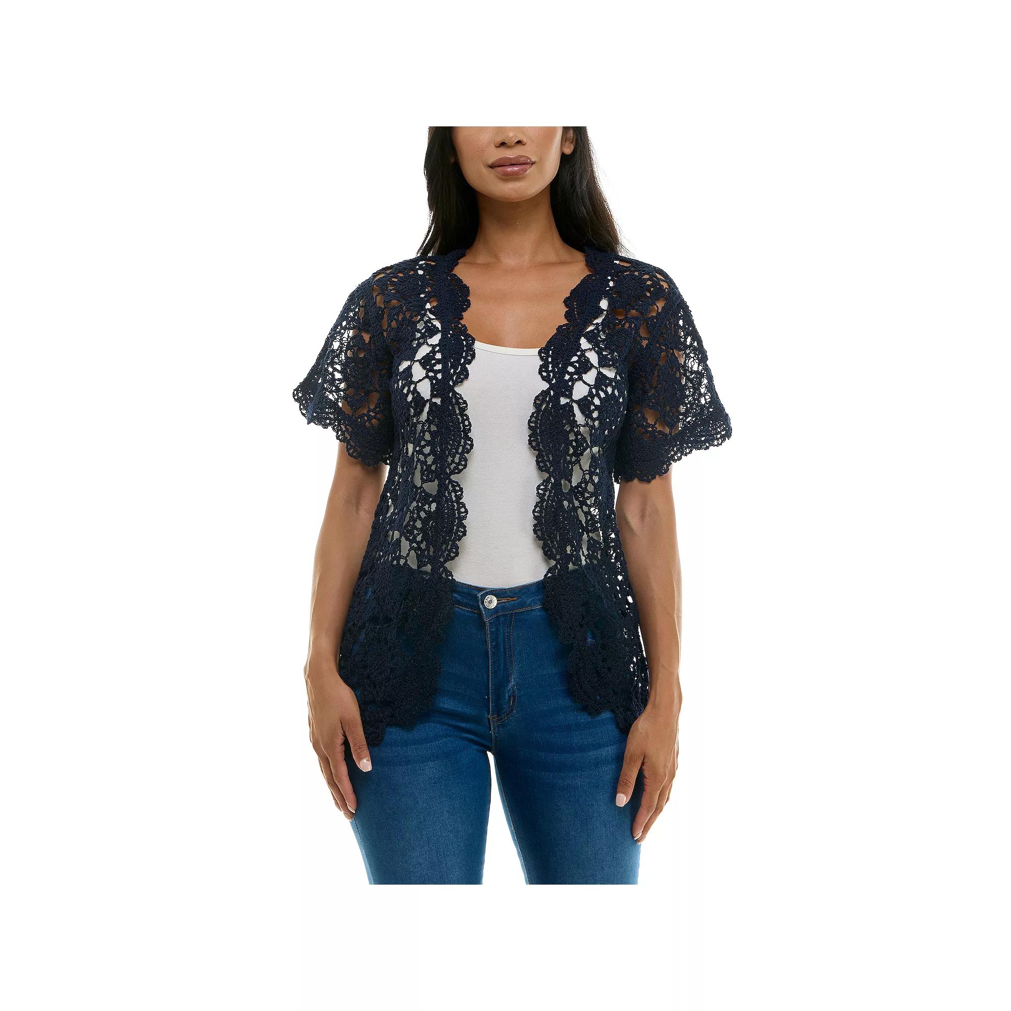 Youll love the fabulous style of this Womens Nina Leonard Crochet Cardigan.Click on this WOMENS GUIDE to find the perfect fit and more! Youll love the fabulous style of this Womens Nina Leonard Crochet Cardigan.Click on this WOMENS GUIDE to find the perfect fit and more! FEATURES No closure - open front Short sleeves Scallop edge UnlinedFIT & SIZING 26 1/2-in. length from shoulder to hemFABRIC & CARE Polyester Machine wash Imported Size: Medium. Color: Navy. Gender: female. Age Group: adult.