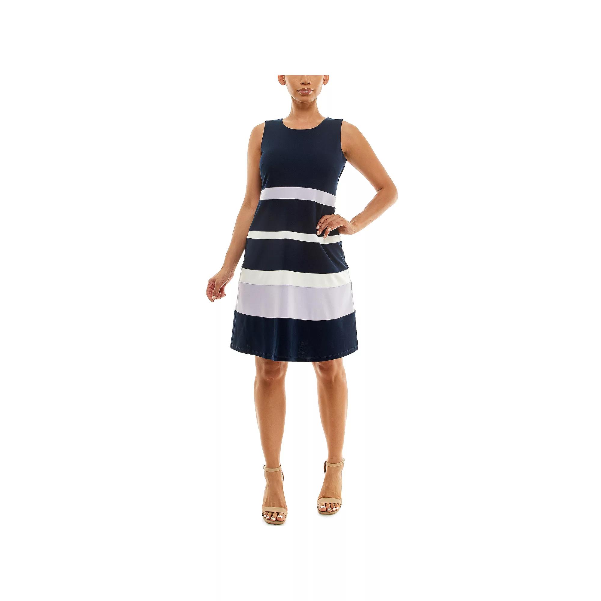 Feminine and flattering, this womens dress from Nina Leonard is a lovely choice for any occasion. Feminine and flattering, this womens dress from Nina Leonard is a lovely choice for any occasion.Click on this WOMENS GUIDE to find the perfect fit and more! Back zipper Colorblocked Sleeveless JewelneckFIT & SIZING 38 3/4-in. length Fit & flare silhouetteFABRIC & CARE Polyester, spandex Machine wash - Delicate Imported Size: X Large. Color: Dark Blue. Gender: female. Age Group: adult.