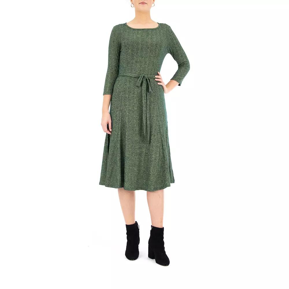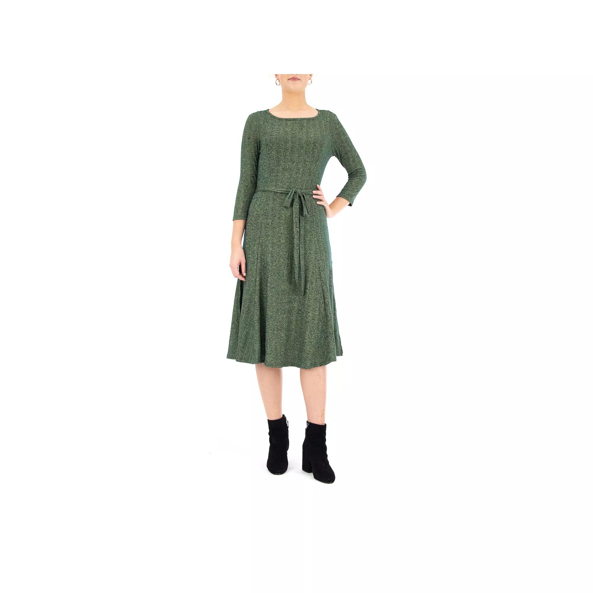 Lurex details add a sparkling touch to this womens Nina Leonard midi dress. Lurex details add a sparkling touch to this womens Nina Leonard midi dress.Click on this WOMENS GUIDE to find the perfect fit and more! Lurex details add a touch of sparkle Scoopneck 3/4-length sleeves Side-tie sash UnlinedFIT & SIZING 46-in. approximate length from shoulder to hem Midi cutFABRIC & CARE Polyester, metallic, spandex Machine wash - Delicate Imported Size: Large. Color: Dark Green. Gender: female. Age Group: adult.