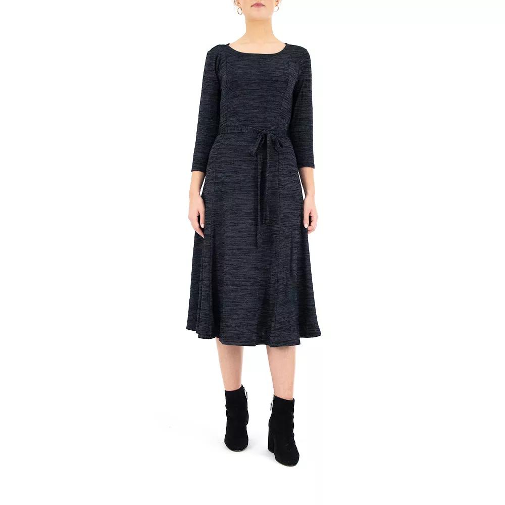 Upgrade your wardrobe with this womens Nina Leonard midi dress. Upgrade your wardrobe with this womens Nina Leonard midi dress. Scoopneck 3/4-length sleeves Side-tie sash UnlinedFIT & SIZING 46-in. approximate length from shoulder to hem Midi cutFABRIC & CARE Polyester, rayon, spandex Machine wash - Delicate Imported Size: Small. Color: Dark Blue. Gender: female. Age Group: adult.