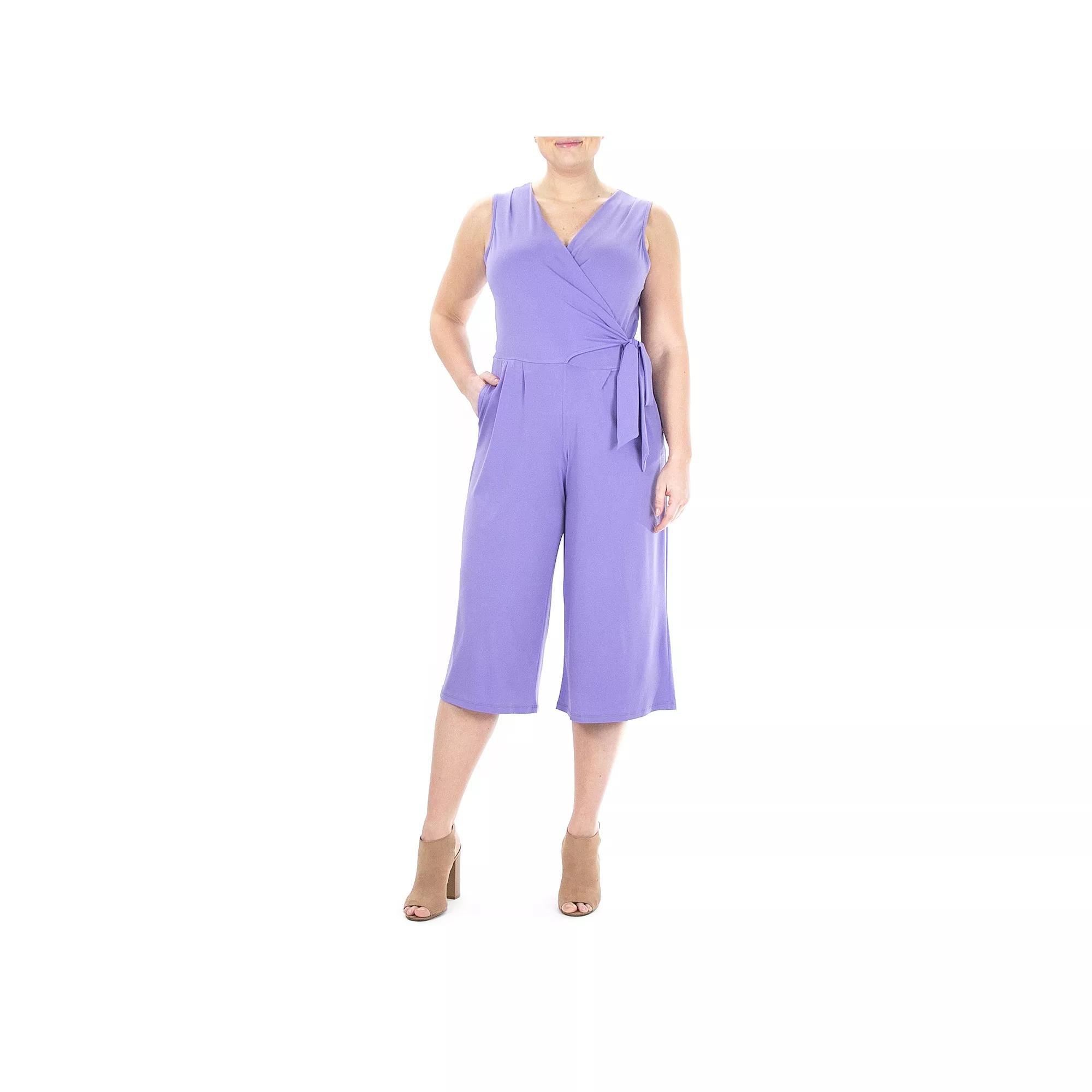 A cropped leg jumpsuit is finished off with a wrap tie waist for a minimalistic and elegant ensemble. - Surplice neck- Sleeveless- Self-tie at waist- Side slash pockets- Stretch knit construction- Wide leg- Cropped- Approx. 49 length, 22 inseam (size M)- ImportedAvailable in:- Solid color (BLACK)- Anchor print (NAVY) Models stats for sizing:. Height: 510. Bust: 34. Waist: 24. Hips: 34 Model is wearing size S. Machine wash 95% polyester, 5% spandex