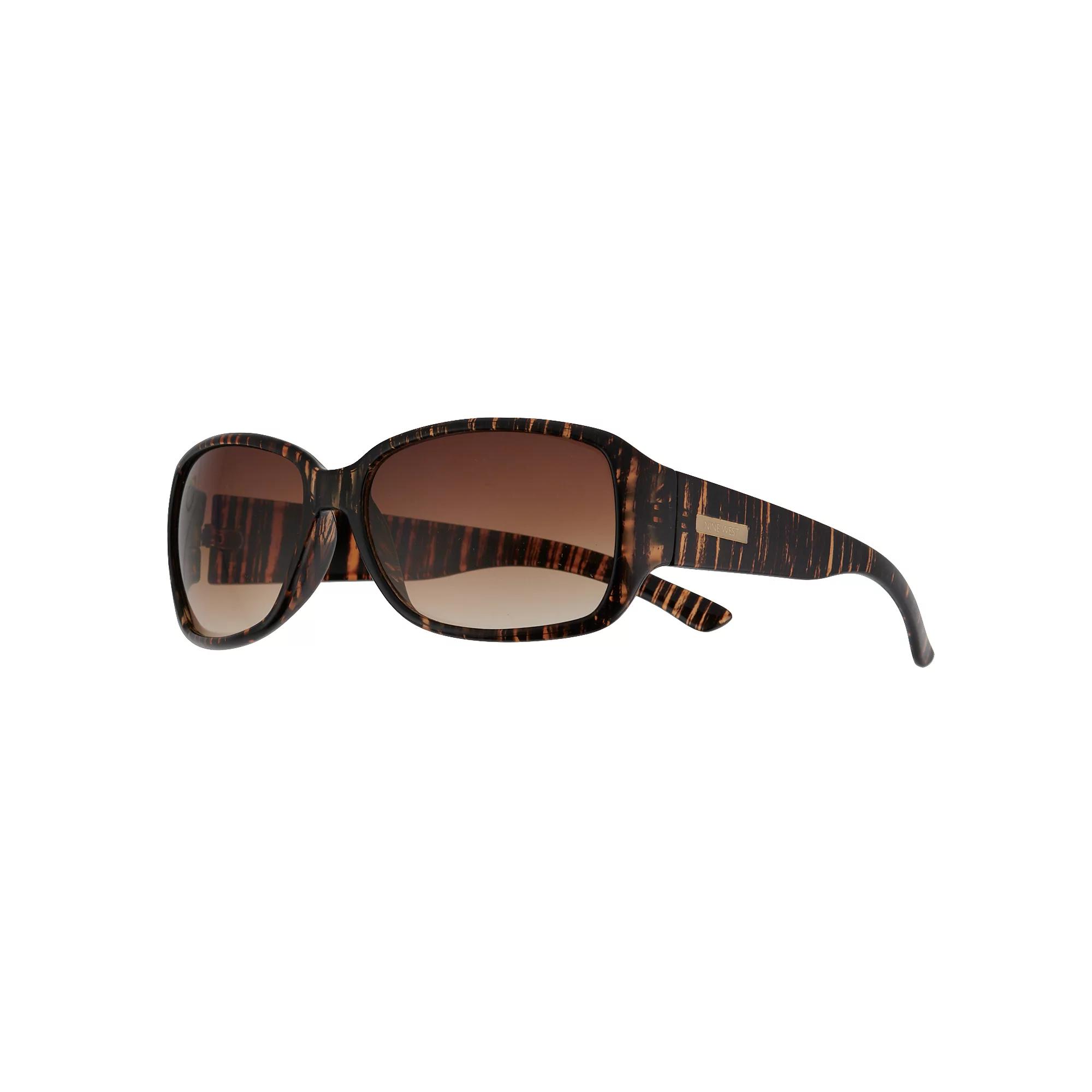 These women's brown striated plastic rectangle sunglasses from Nine West are the perfect accessory for anyone with a sense of style. 50% recycled polycarbonate, 50% polycarbonate Frame material: plastic Frame color: brown Standard hinges Lens material: polycarbonate Lens color: brown Lens treatment: gradient ImportedSUSTAINABILITY FEATURES Global Recycled Standard Certified Contains recycled materials WARNING: This product can expose you to chemicals including nickel which is known to the State of California to cause cancer and bisphenol A which is known to the State of California to cause birth defects or other reproductive harm. For more information go to: www.P65Warnings.ca.gov FIT DETAILS How do I find my frame size? Eye/bridge/temple measurements: 58mm/17mm/122mm Silhouette: rectangle Size: One Size. Color: Lt Brown. Gender: female. Age Group: adult.